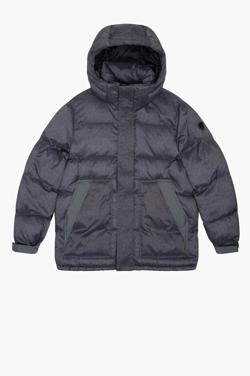 Go from snow-capped mountains to the city in the Poly Grain Puffer Jacket. The generously padded layer has a hood, high neck and side pockets.