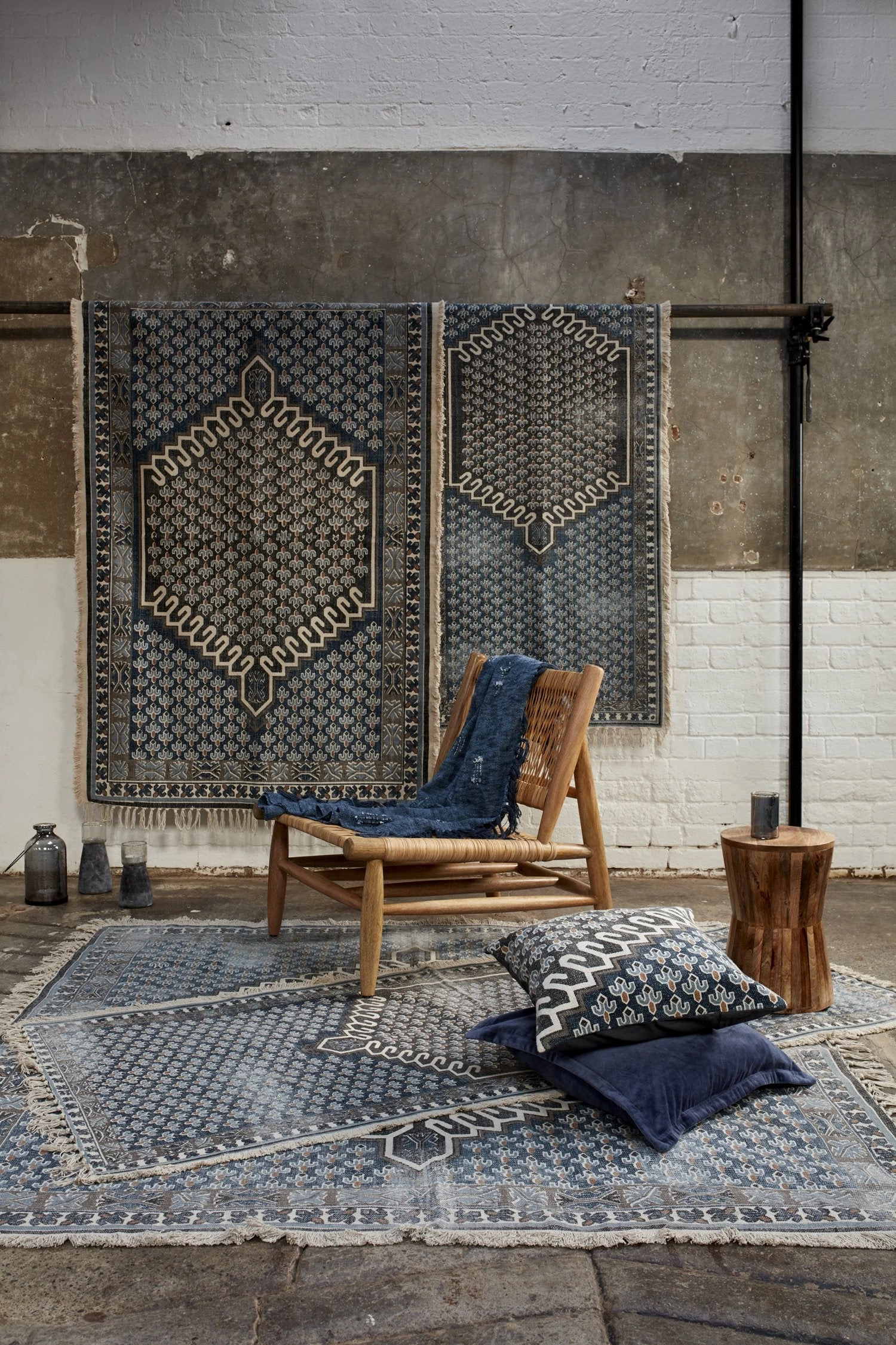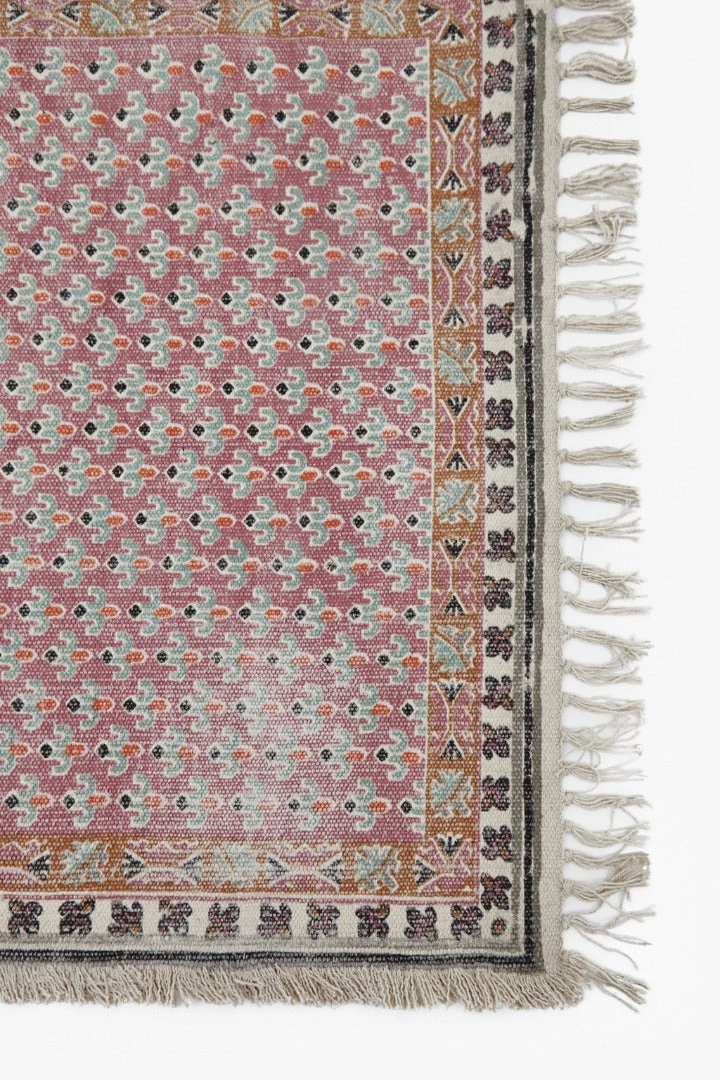- Screen-printed dhurrie-style rug