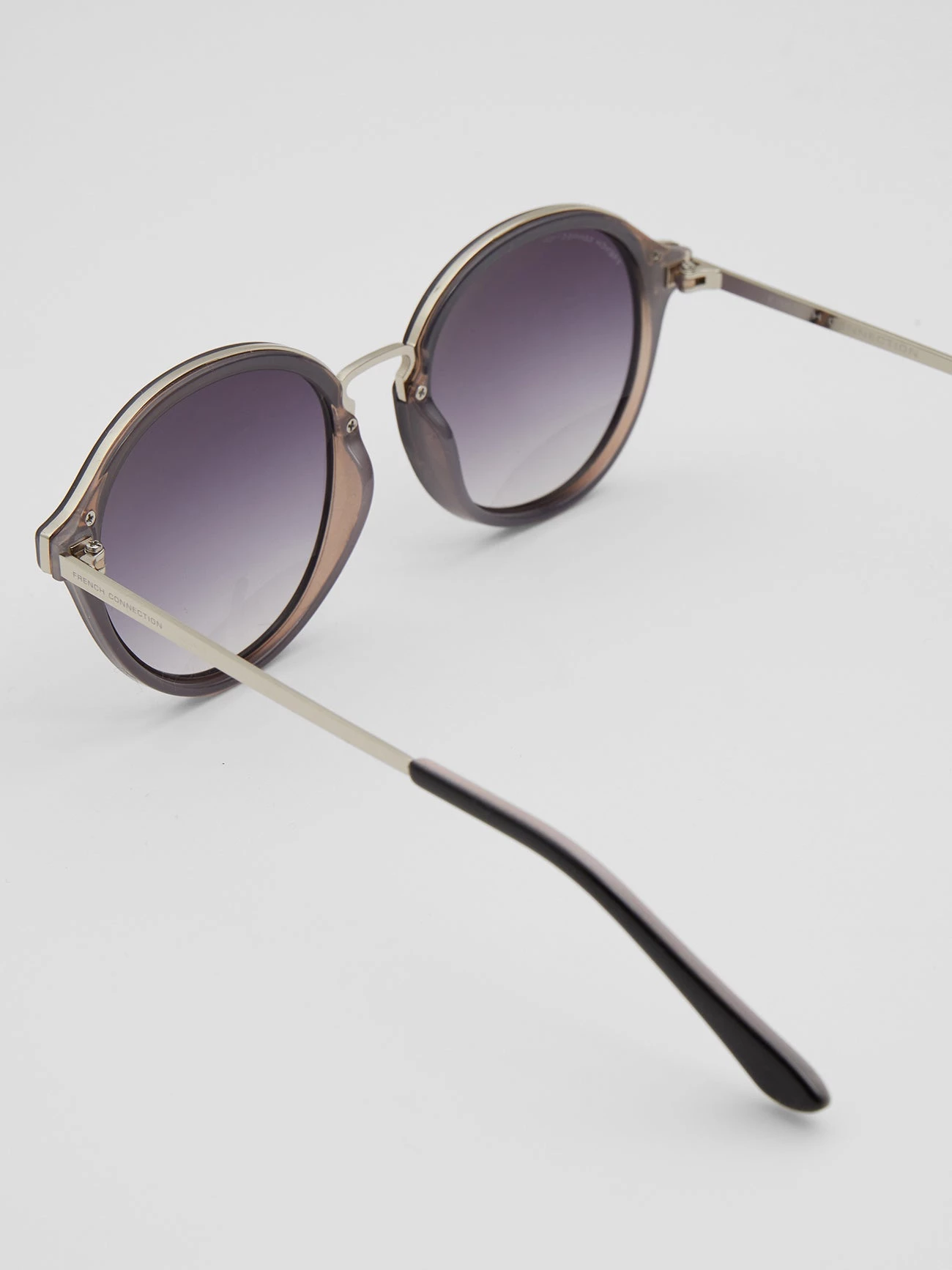 Add some prep to your step this summer with the Preppy Metal Inlay Round Sunglasses. The round frames add a chic contrast to the metal arms, which are authentically engraved with the French Connection logo.