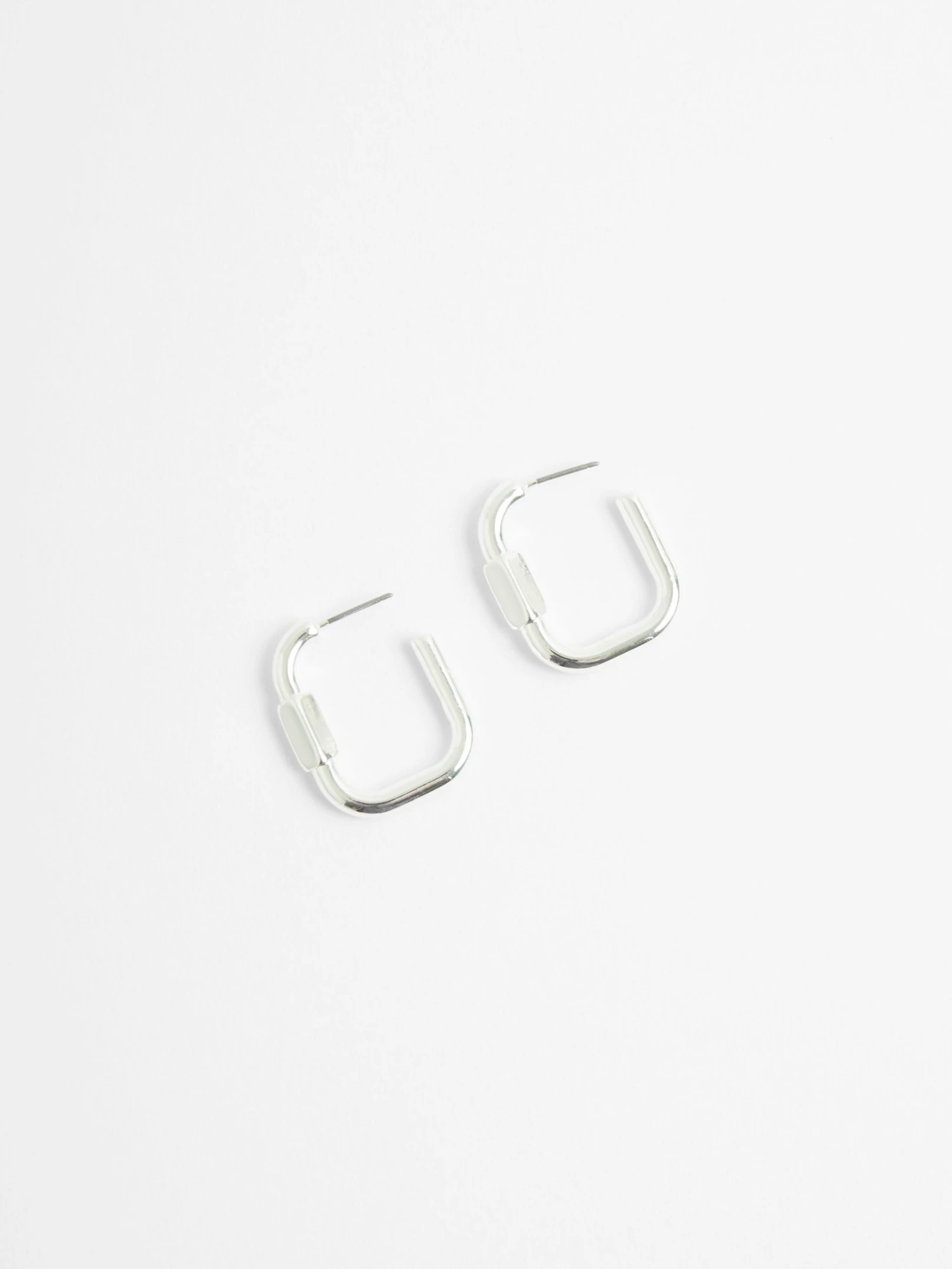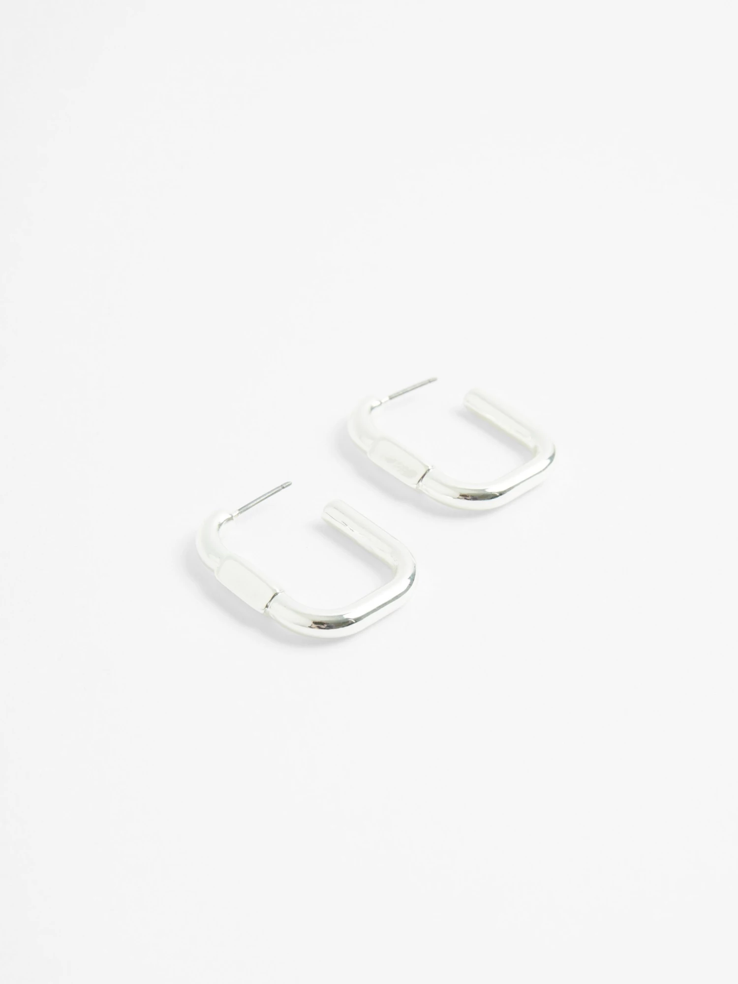 Geometric shapes and sparkling texture meet in the Rectangle Hoop Earrings. The square-shaped hoops present a refreshing spin on your accessories game.