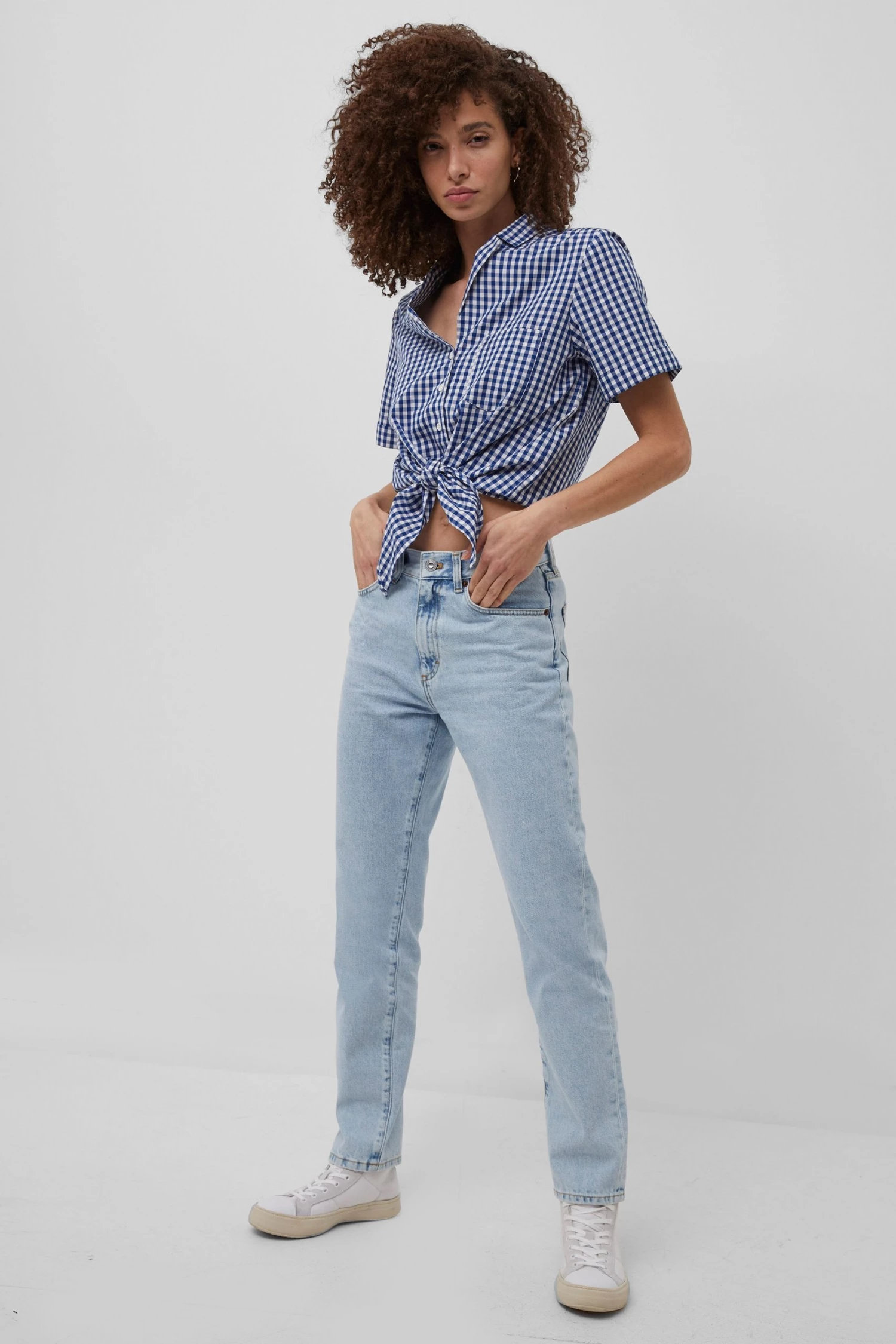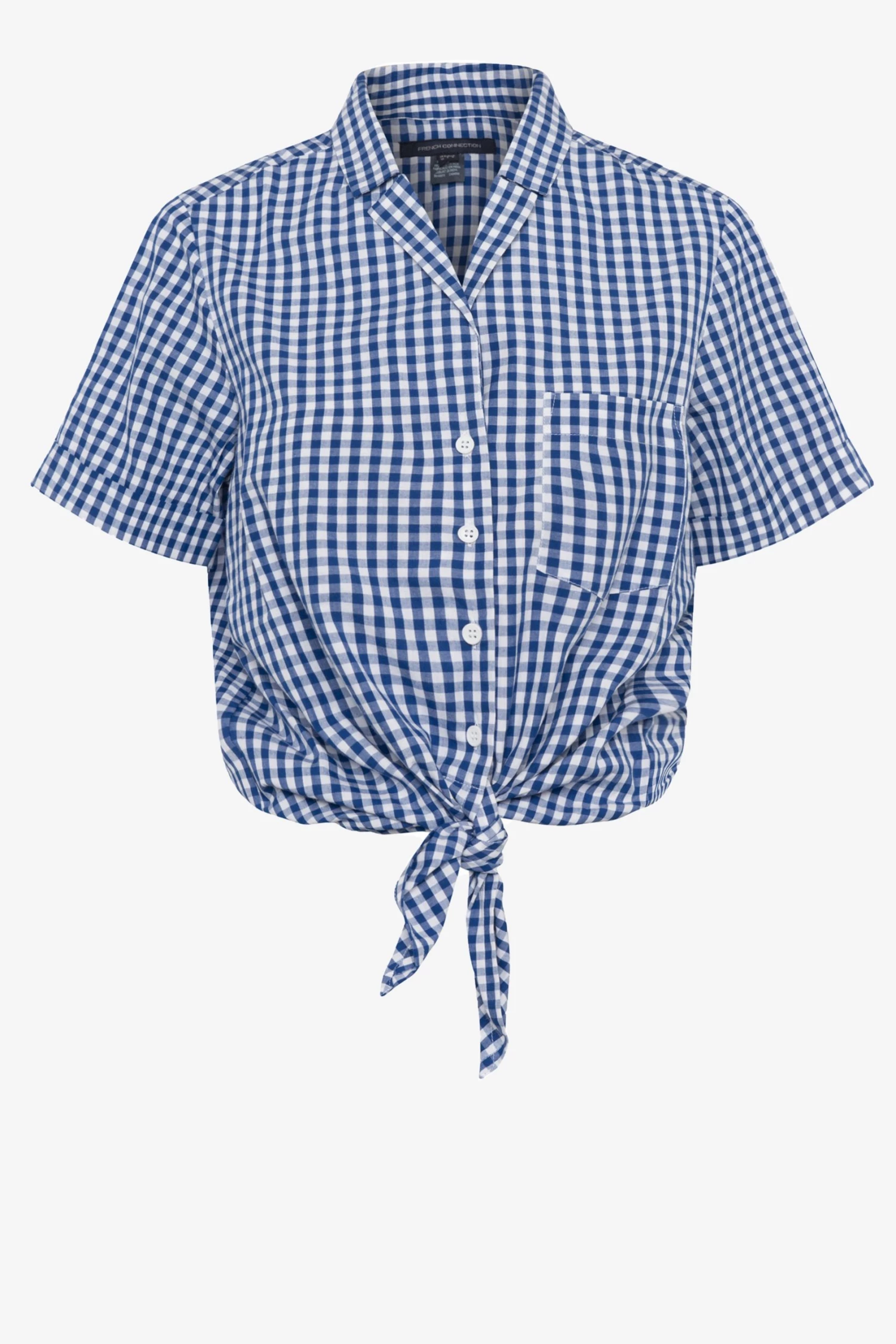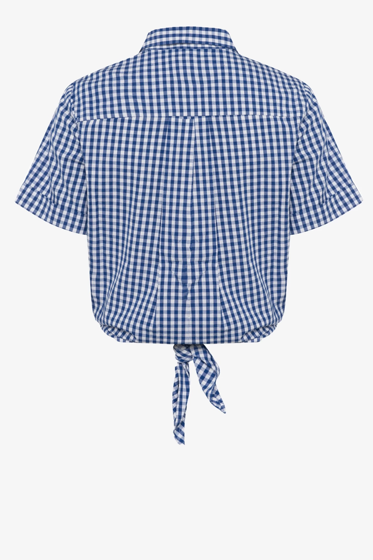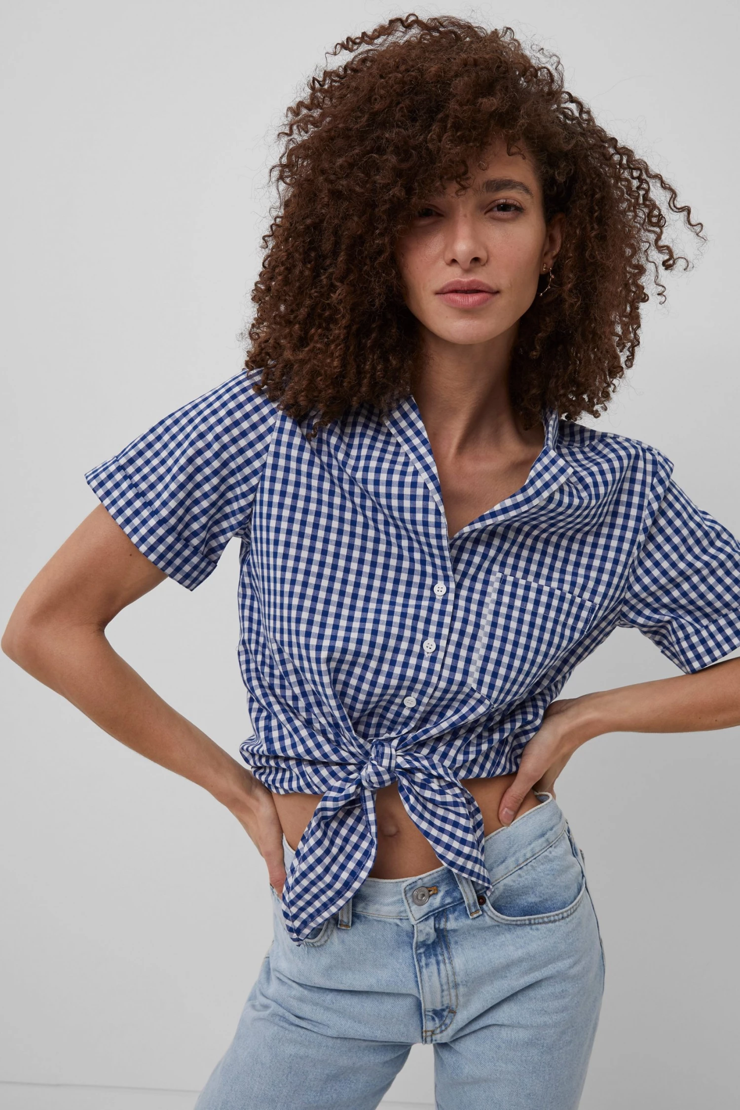 Go full gingham with the Reta Check Shirt. The playful piece is designed with a point collar, button-down front and cropped length finished with a tie detail.