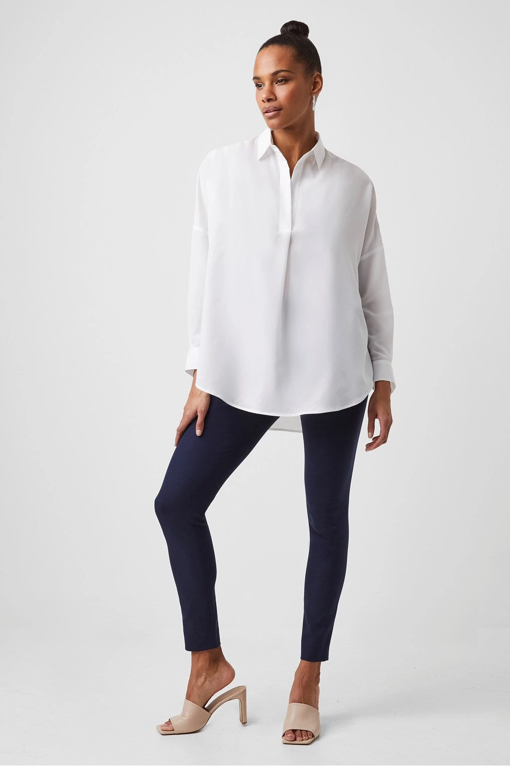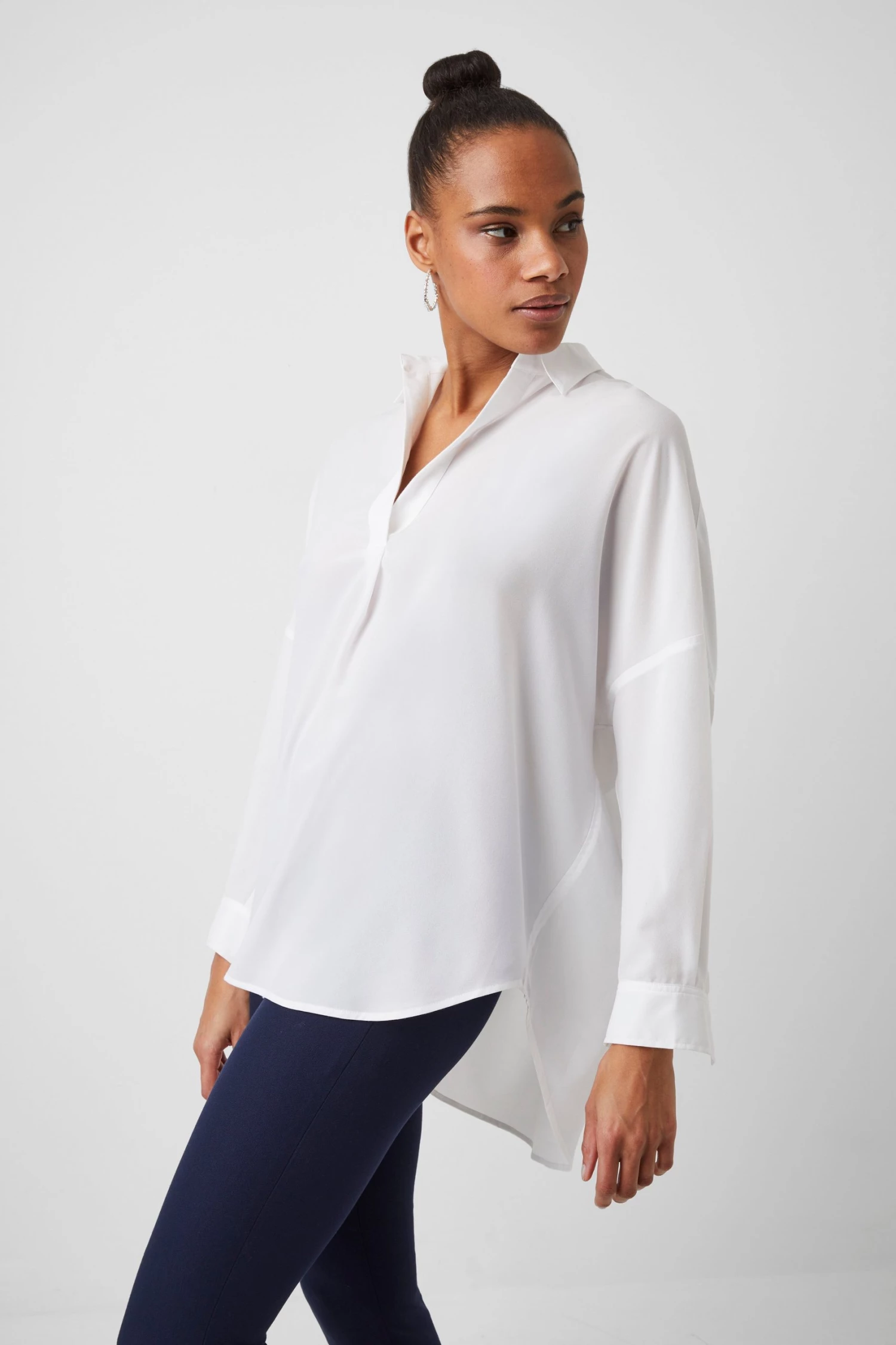 Our best-selling pop over shirt has been given a new season update with a lightweight crepe feel fabric. The loose-fitting slip on shirt is given a draped, loose look, complementing the casual silhouette. Pair the long-sleeved shirt with everything from culottes to favourite denim for a year-round essential.