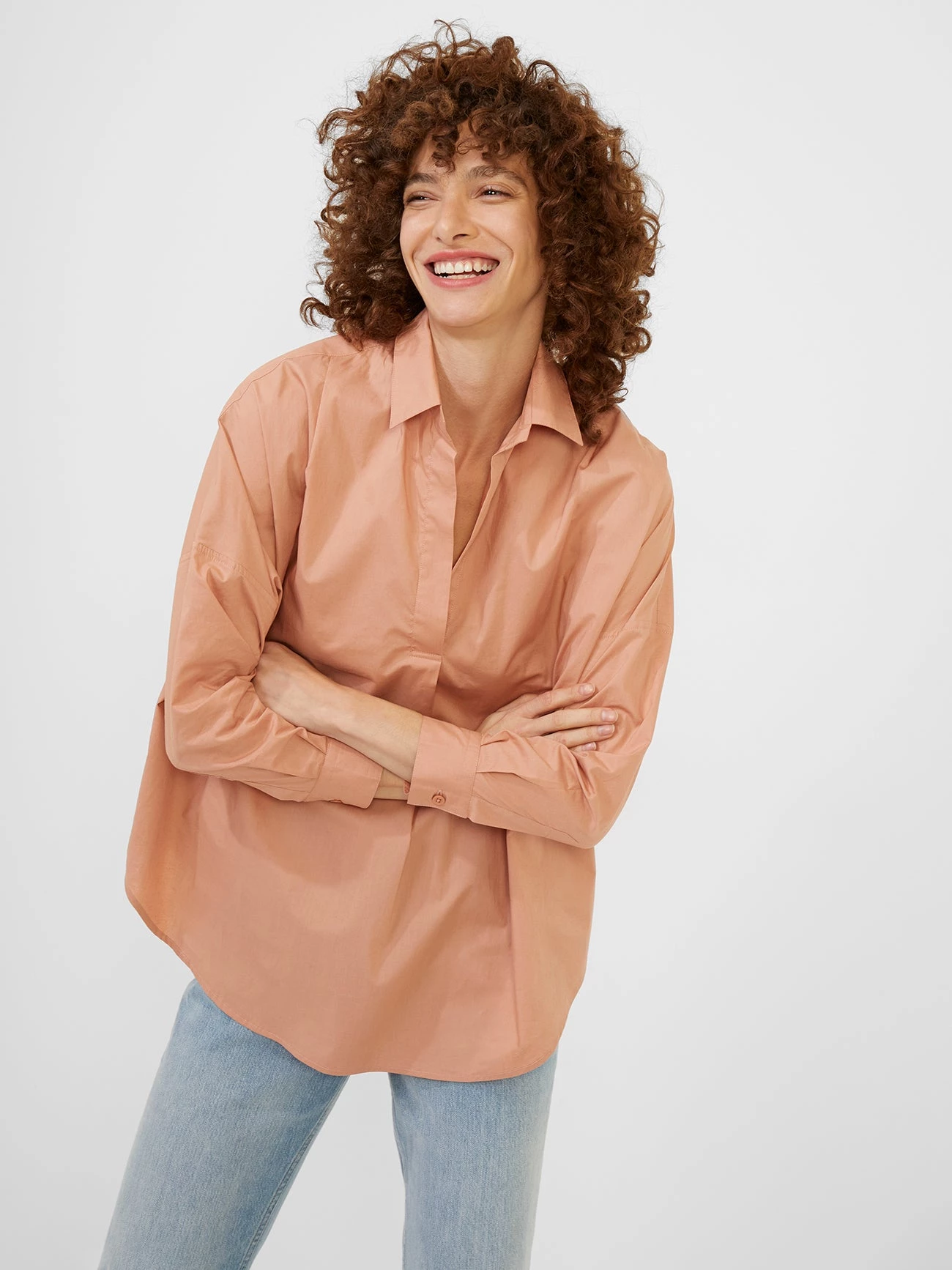 Our best-selling Rhodes Poplin Shirt embodies effortless everyday style. Its oversized shape features a relaxed collar, pleat back detailing and long sleeves.