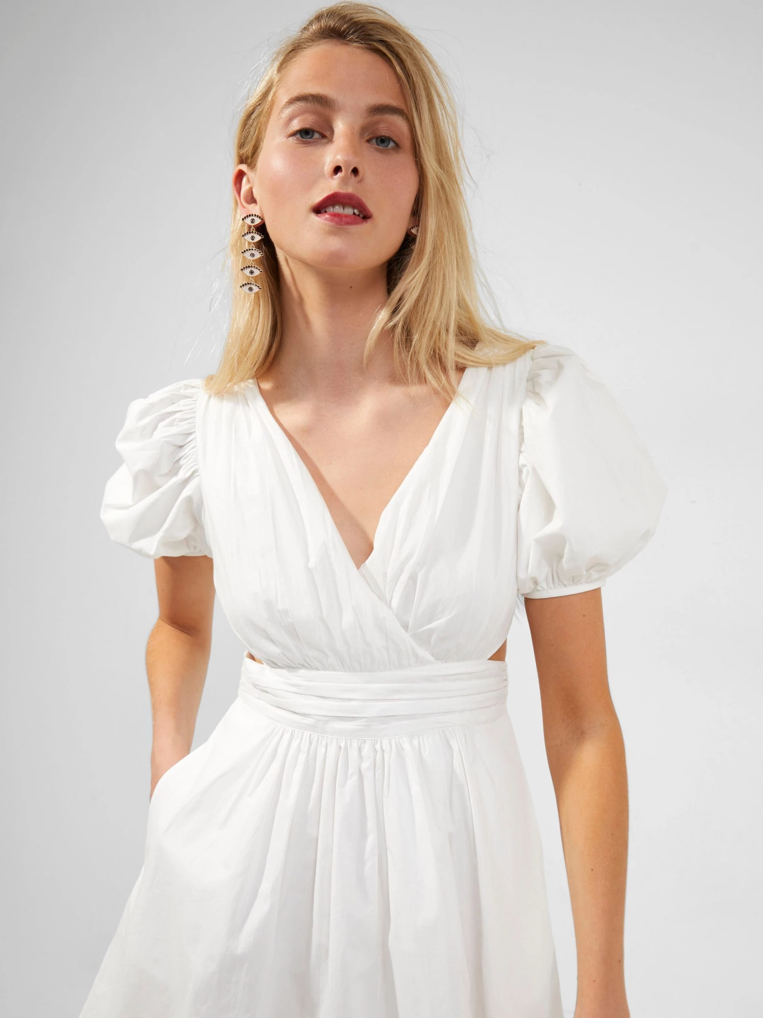 Our favourite silhouette is back. The Rhodes Poplin V-Neck Mini Dress is crafted from crisp cotton and has puffed-up sleeves, cut-outs and V-neckline.