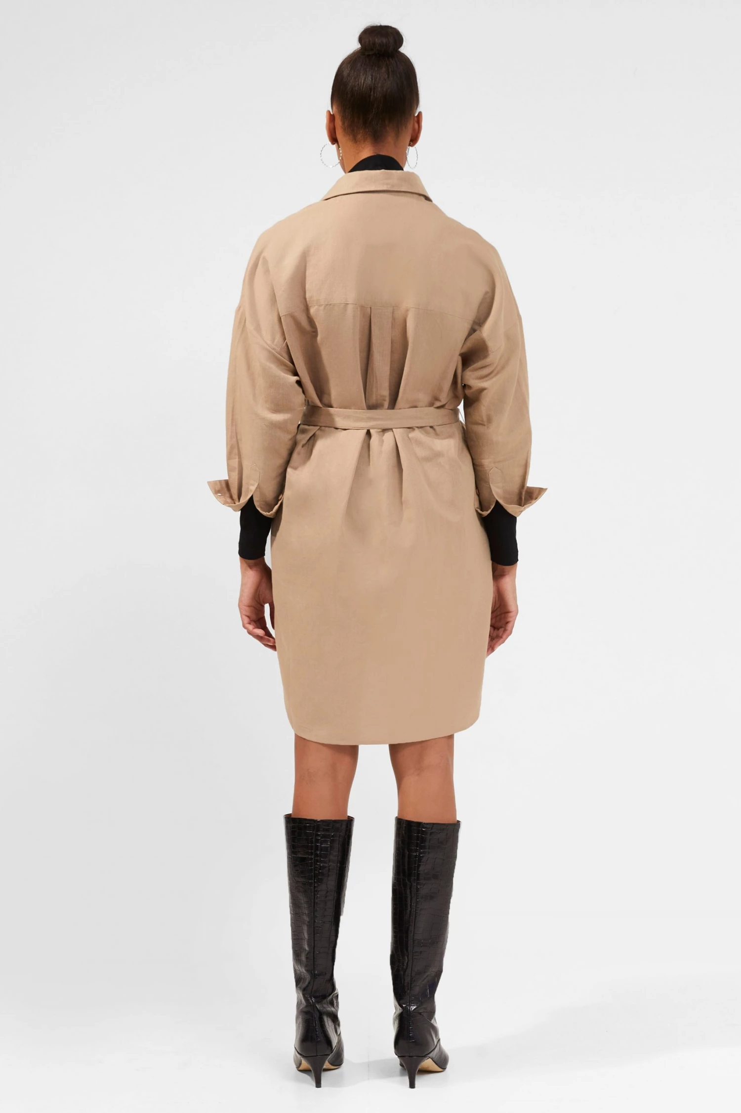 The Rhodes Shirt Dress offers a casual approach to workwear. The form-skimming silhouette has a relaxed shirt dress shape, with a point collar and V-neckline.
