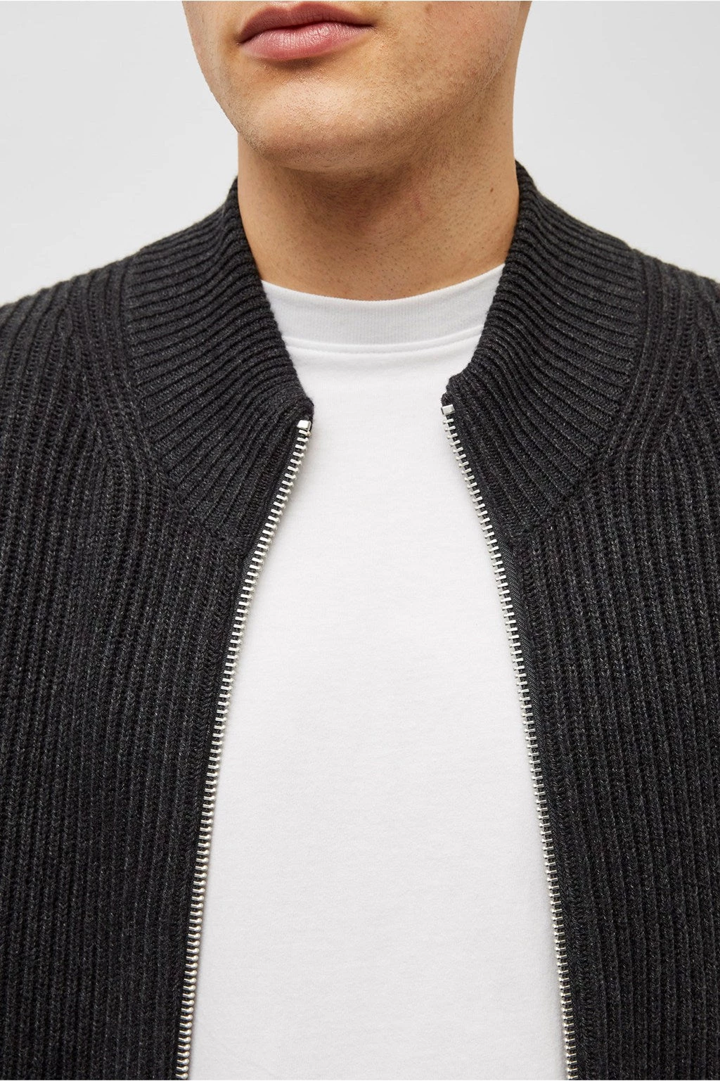 That jacket-knitwear hybrid your everyday wardrobe needs, the Rib-Knit Zip-Through Bomber Jacket has a knitted texture and zip-through fastening, finished with soft-touch fabric.