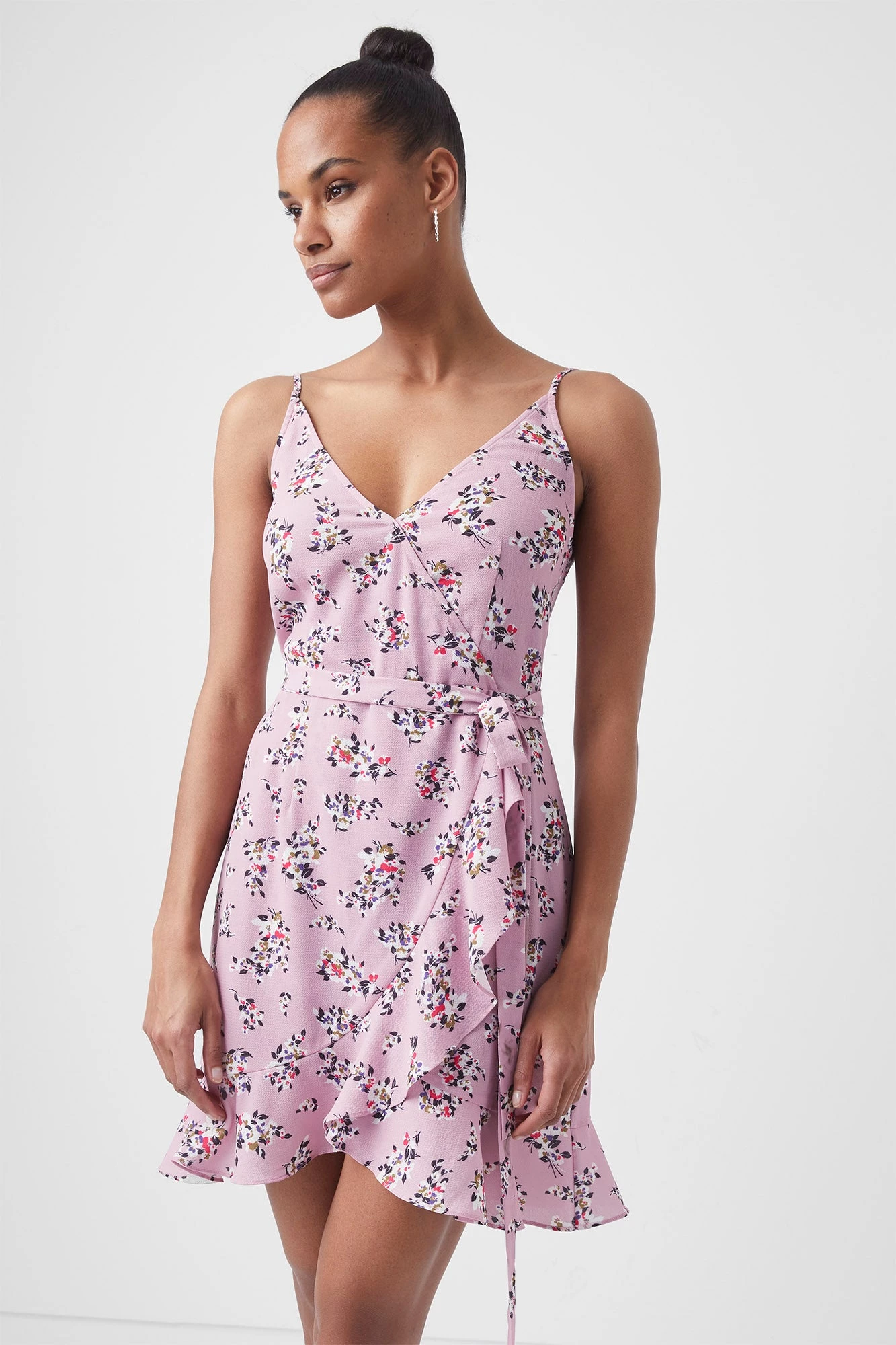 Freshly picked for you. The River Daisy Verona Cami Dress is printed with flowers atop its crepe fabric and finished with a belt and floaty hem.