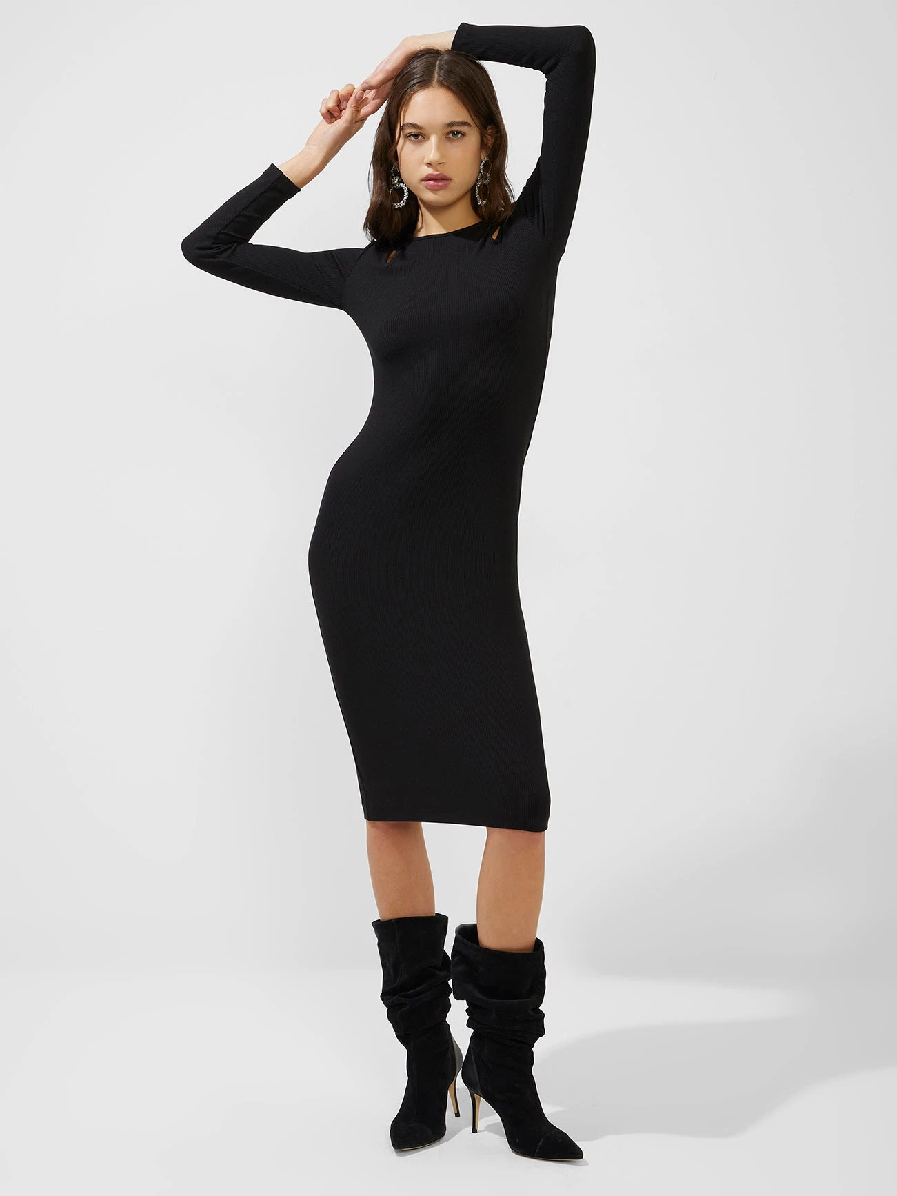 Cut-outs are having a moment right now so update your LBD collection with the Safi Ribbed Jersey Midi dress. It features a form fitting silhouette, cut-out detailing and a midi length.