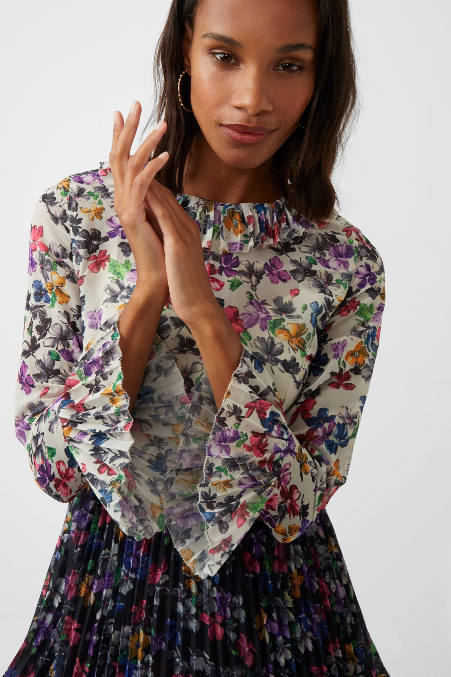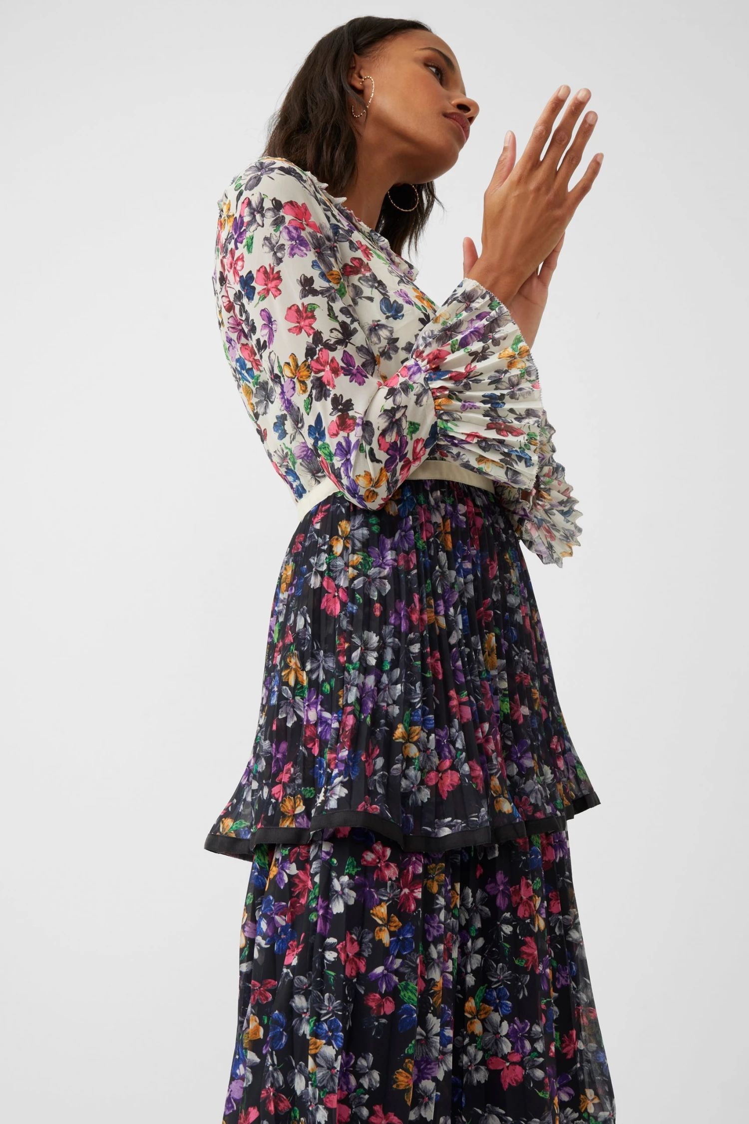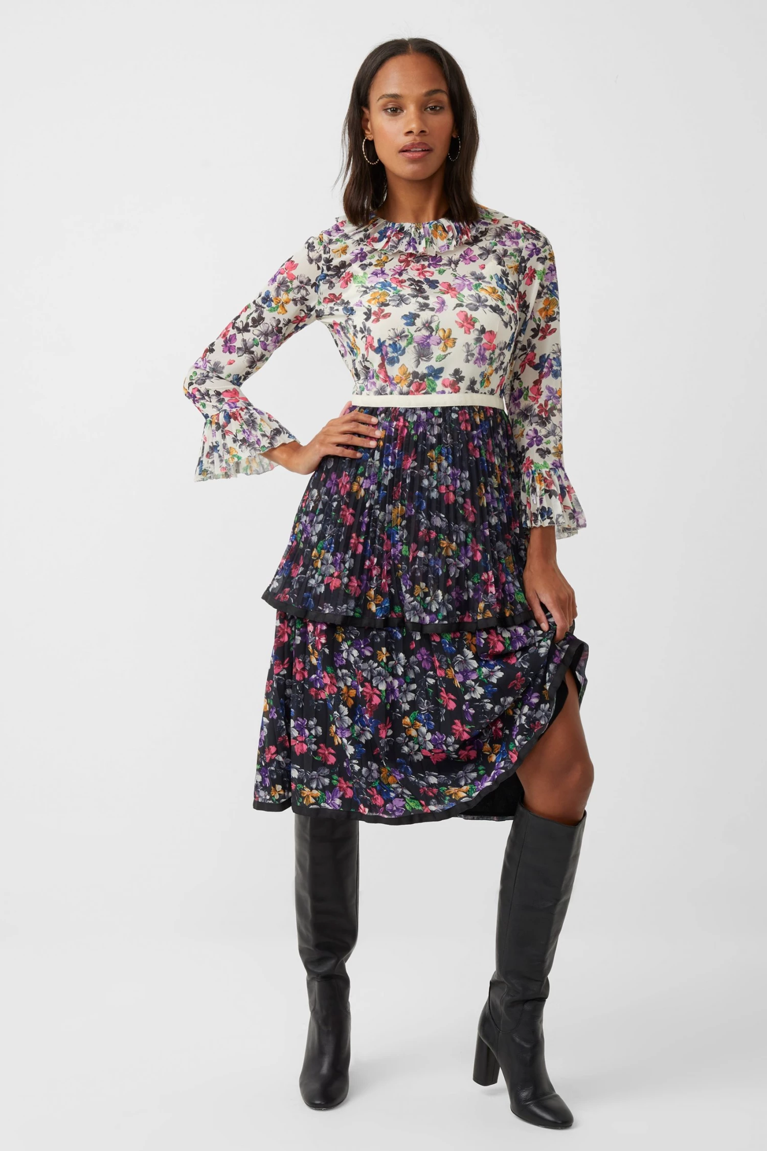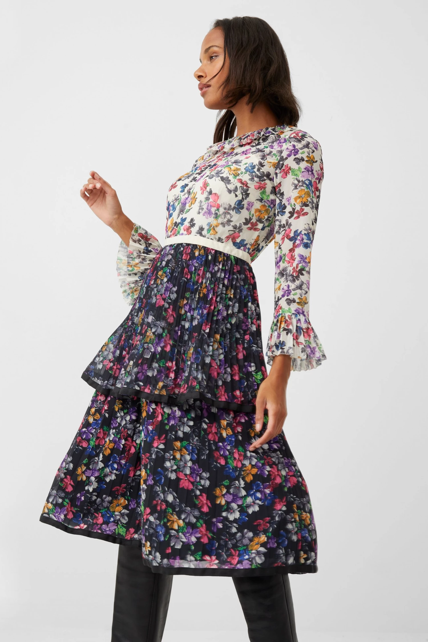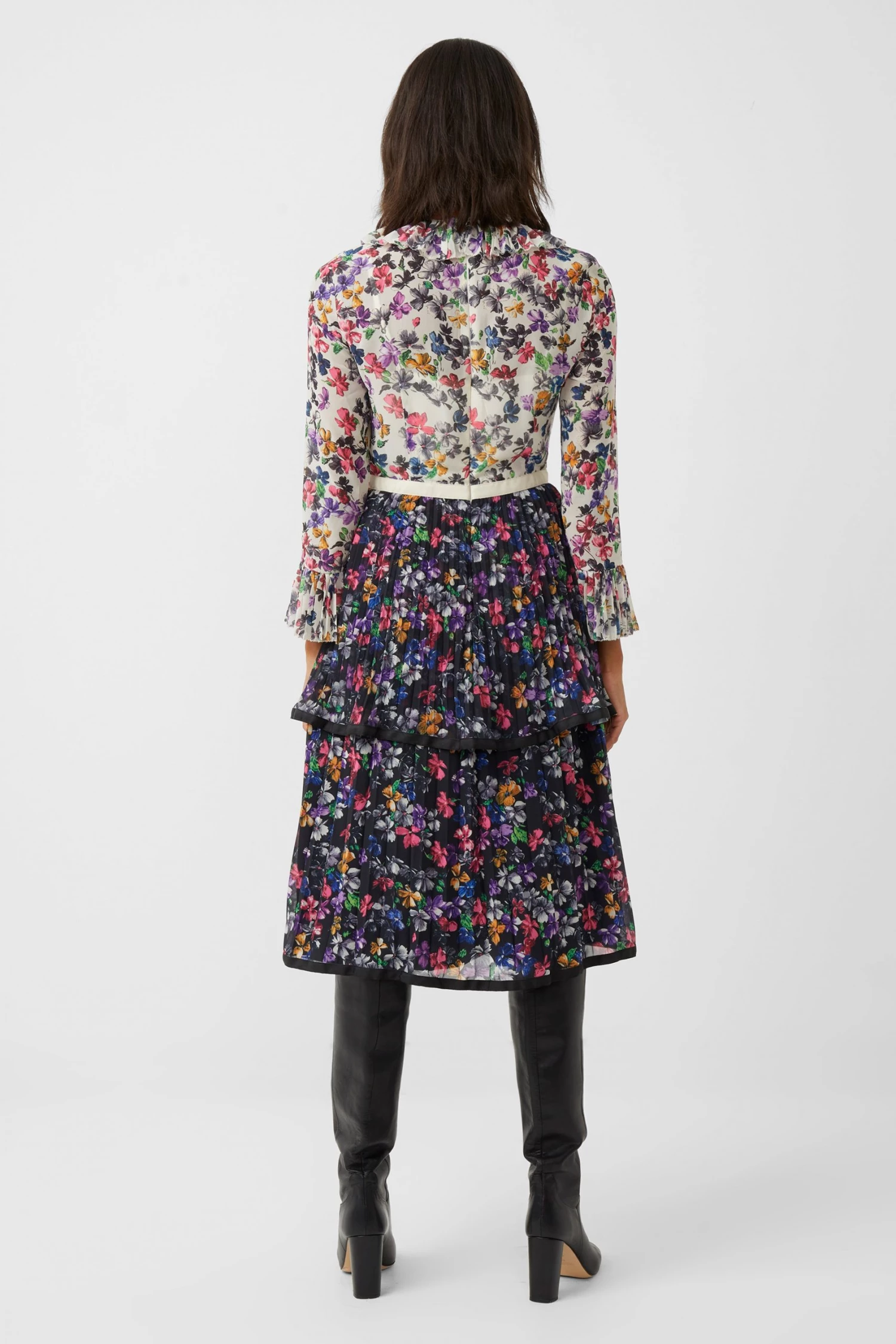 That’s what we call a good mix! The Allianna Mix Tiered Dress has a two-tone design to the upper and skirt, with flowers and pleated fabric.