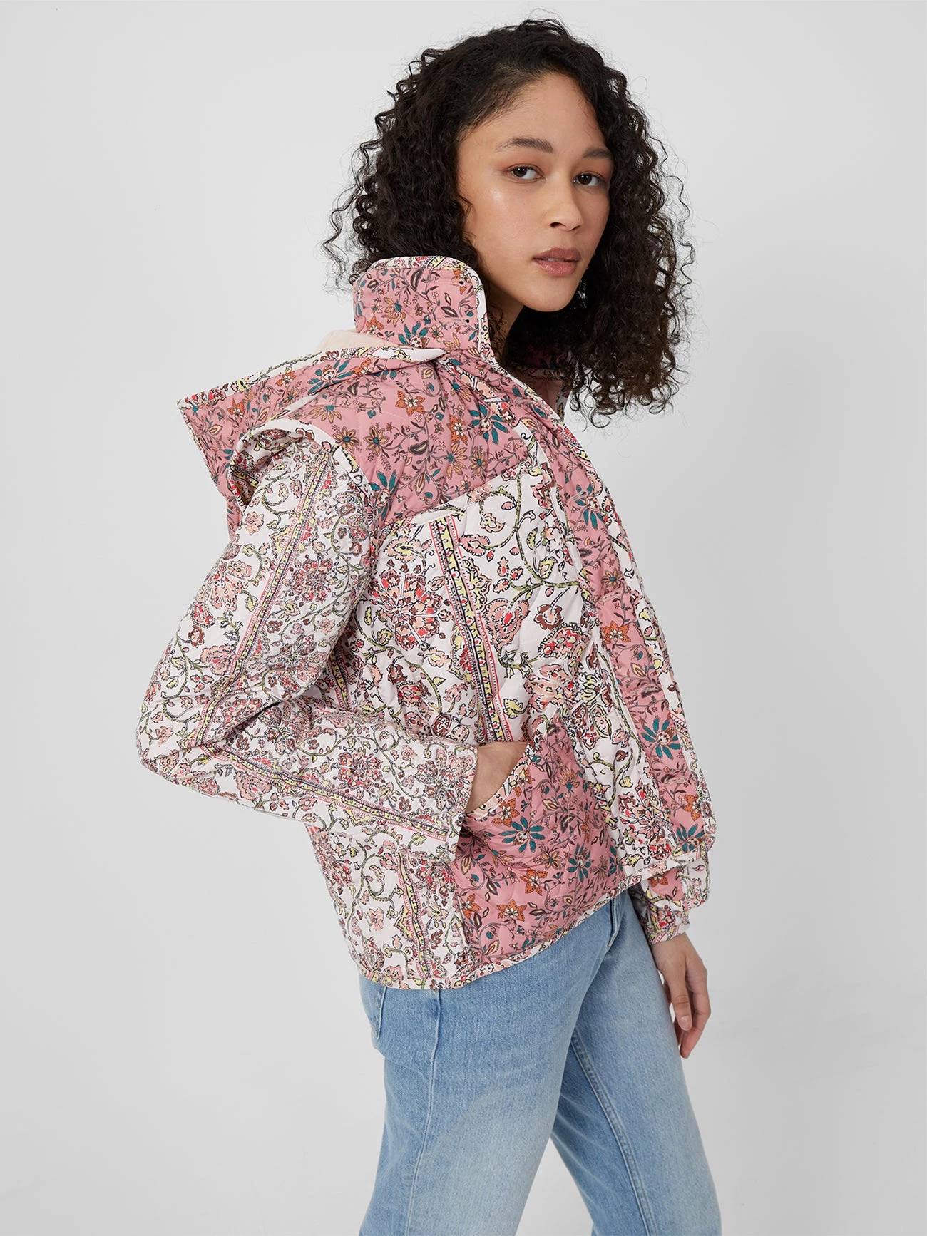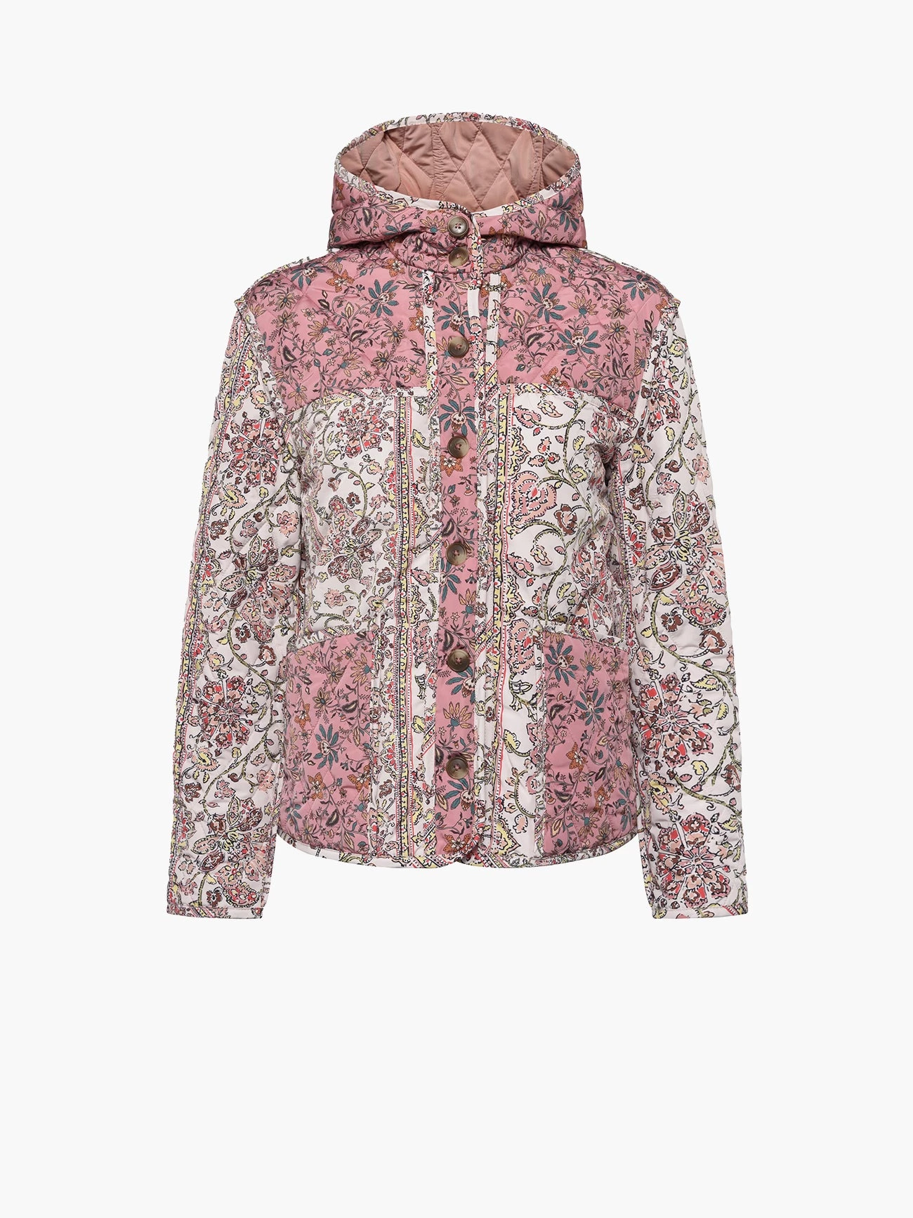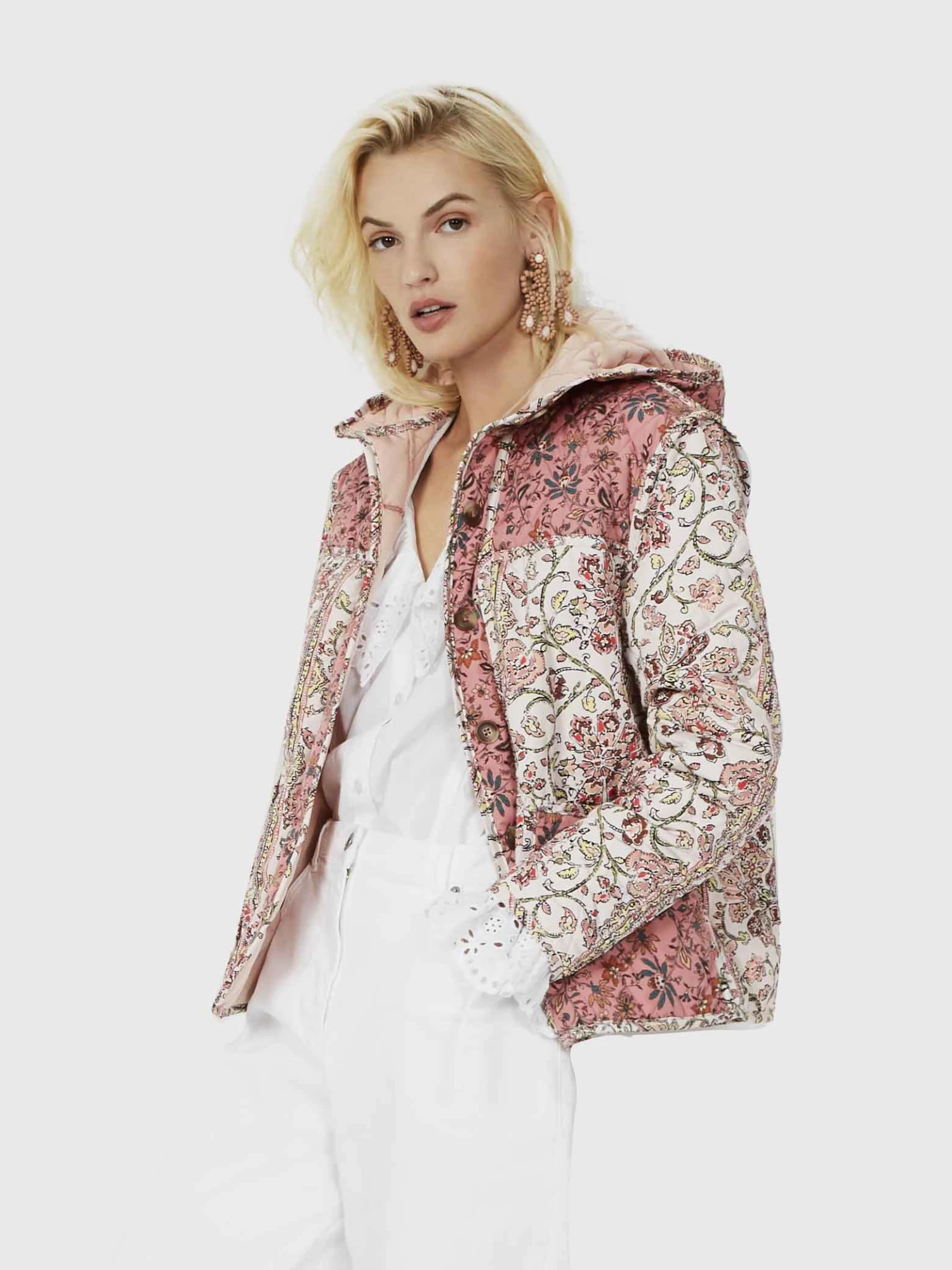 You’re going to have so much fun with our Aya Nylon Jacket. The quilted layer is awash with a paisley print and has a hood and button fastening.