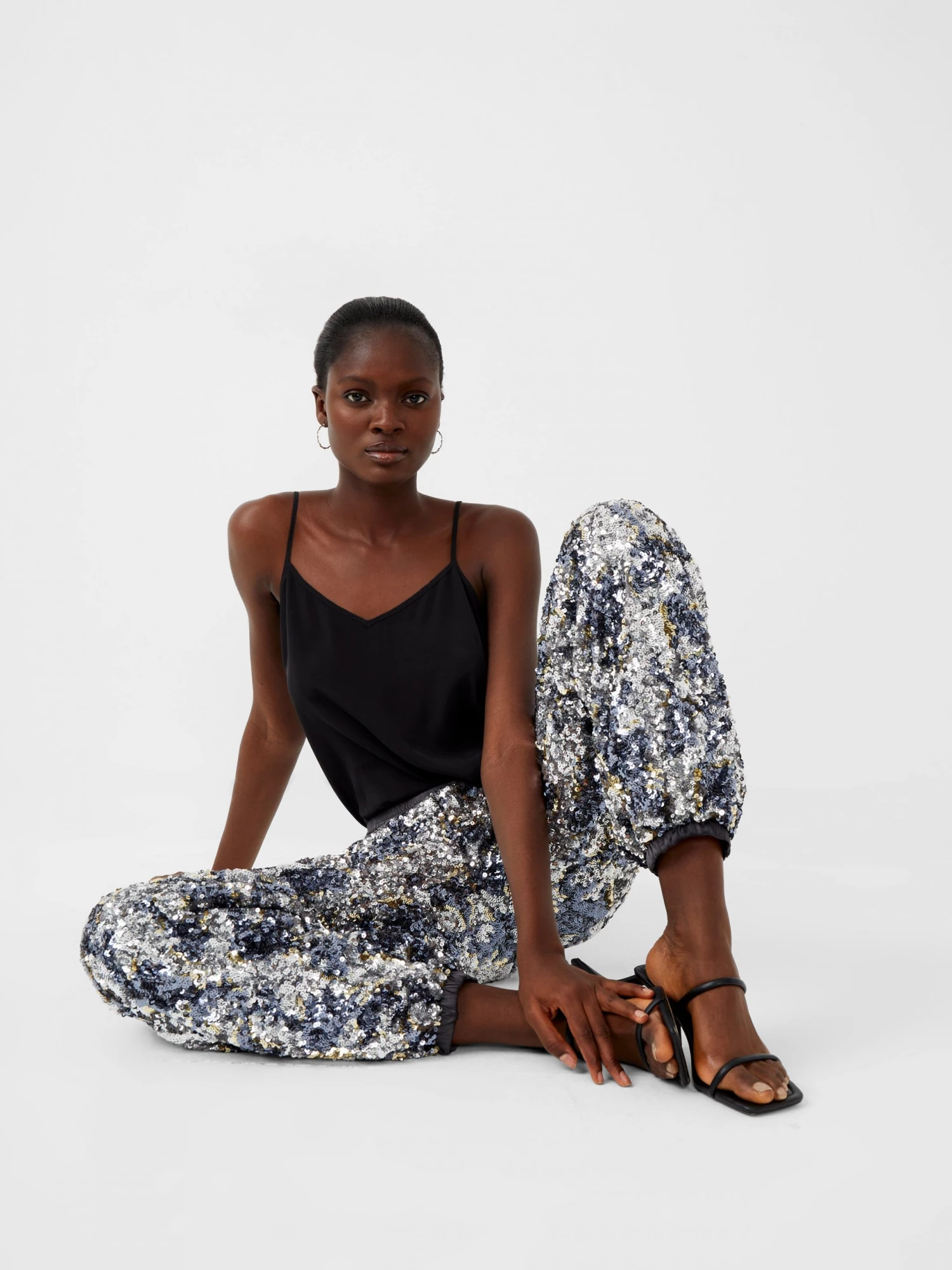 Want to feel like a superstar even if just lounging on the sofa? Leave it to our Binalo Sequin Joggers featuring an embellished trim.
