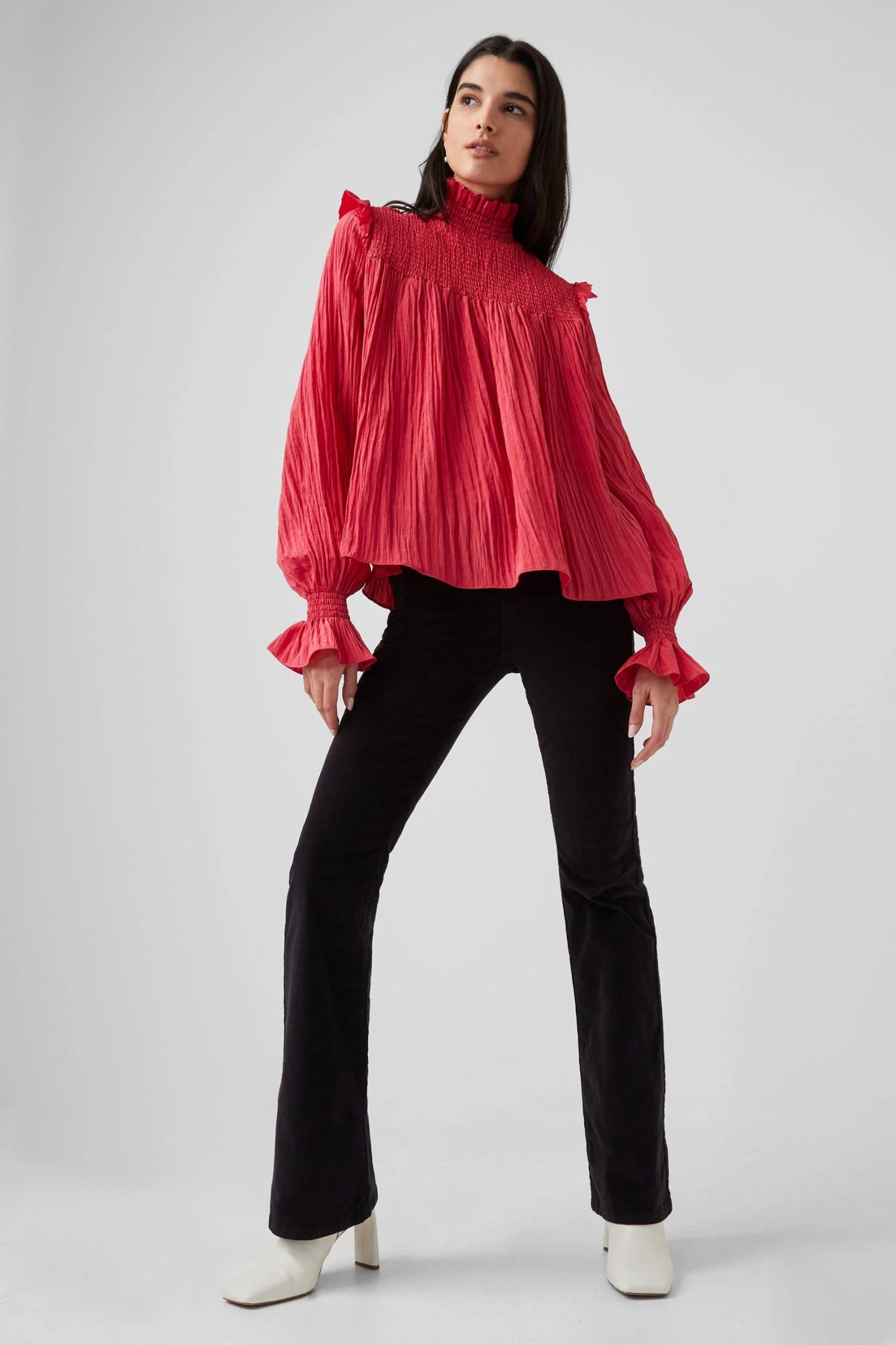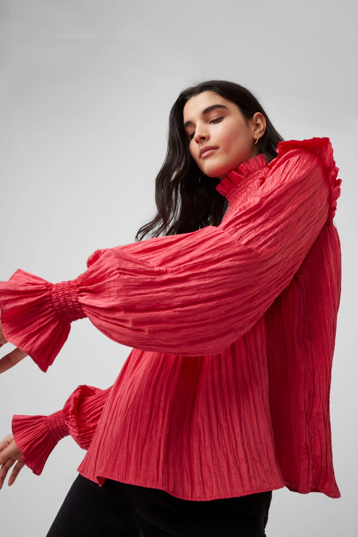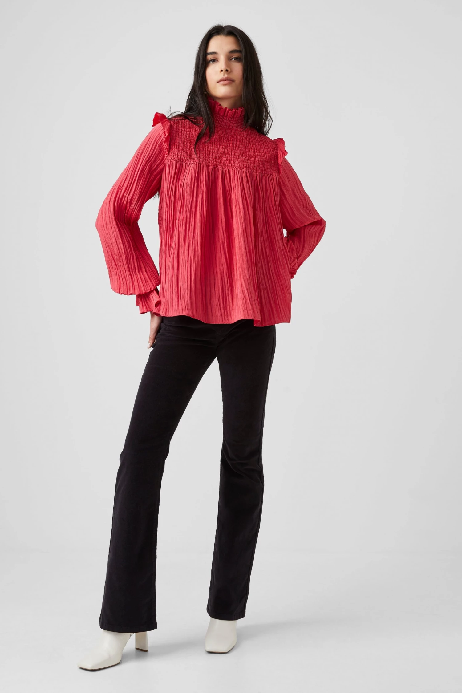 Channel the ever-essential prairie girl look with the Boza Crinkle Smocked Top. In a crisp, crinkle-effect fabric, it’s decorated with ruffled accents and a smocked panel.