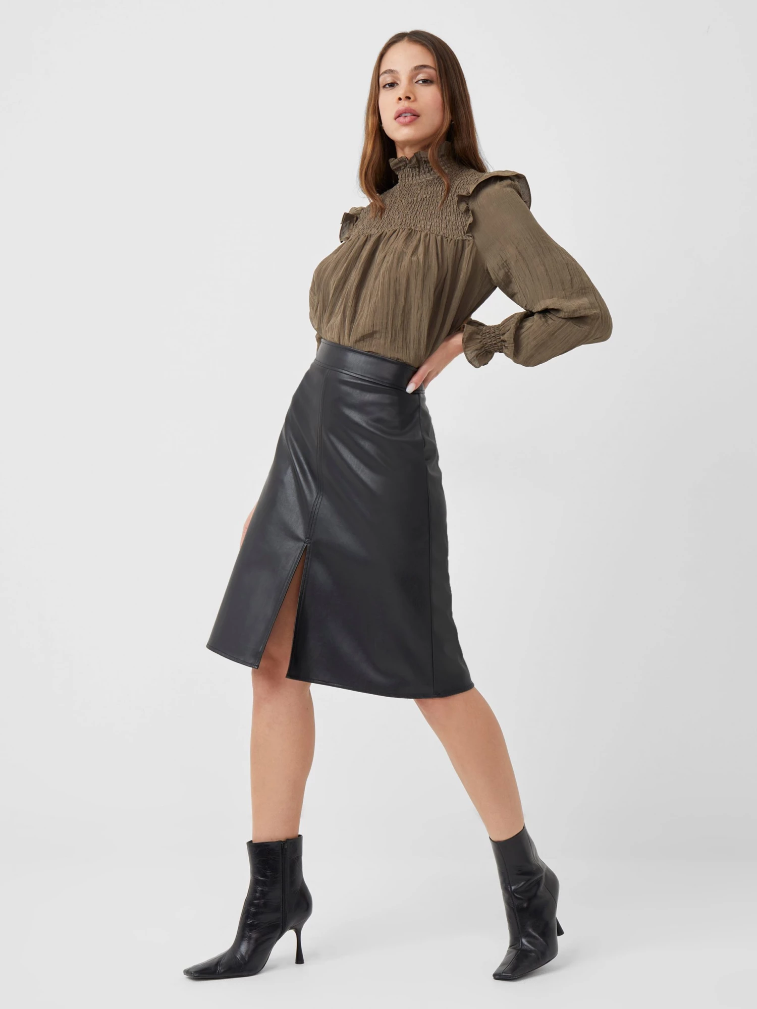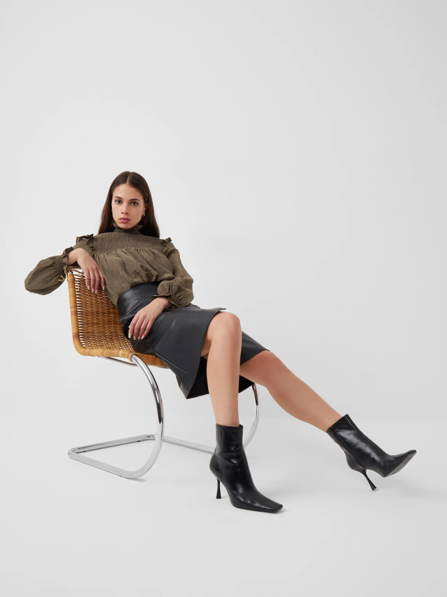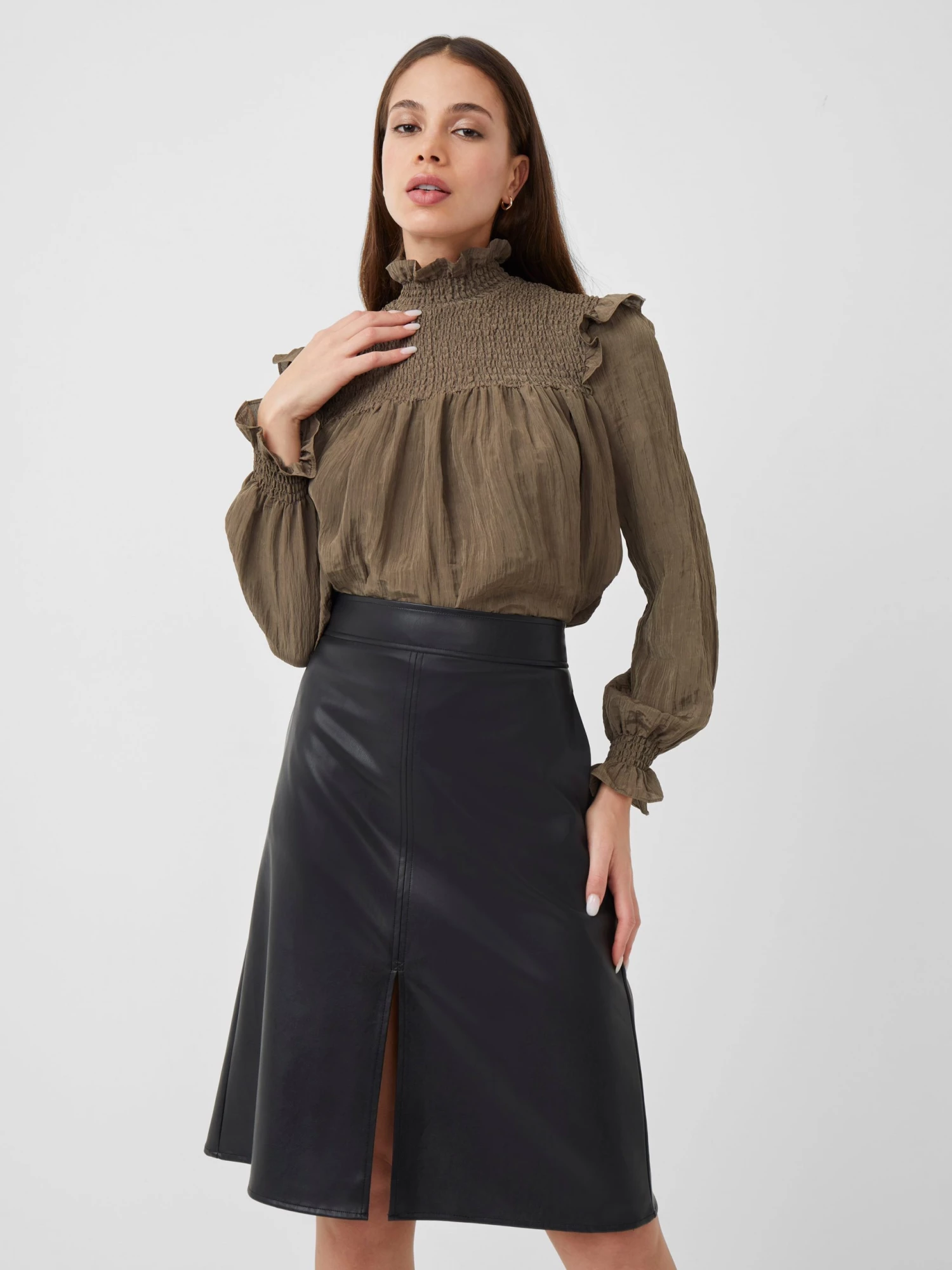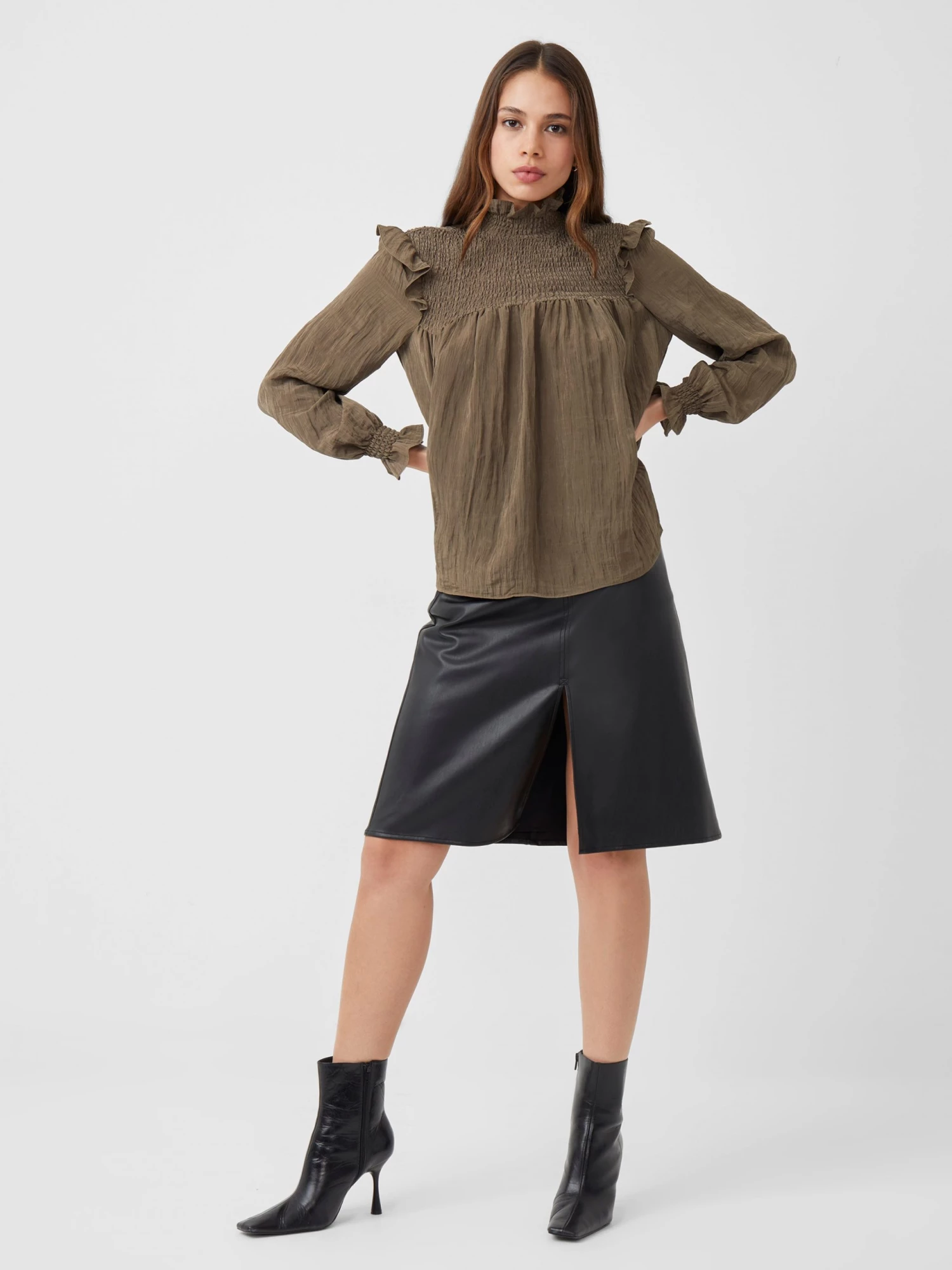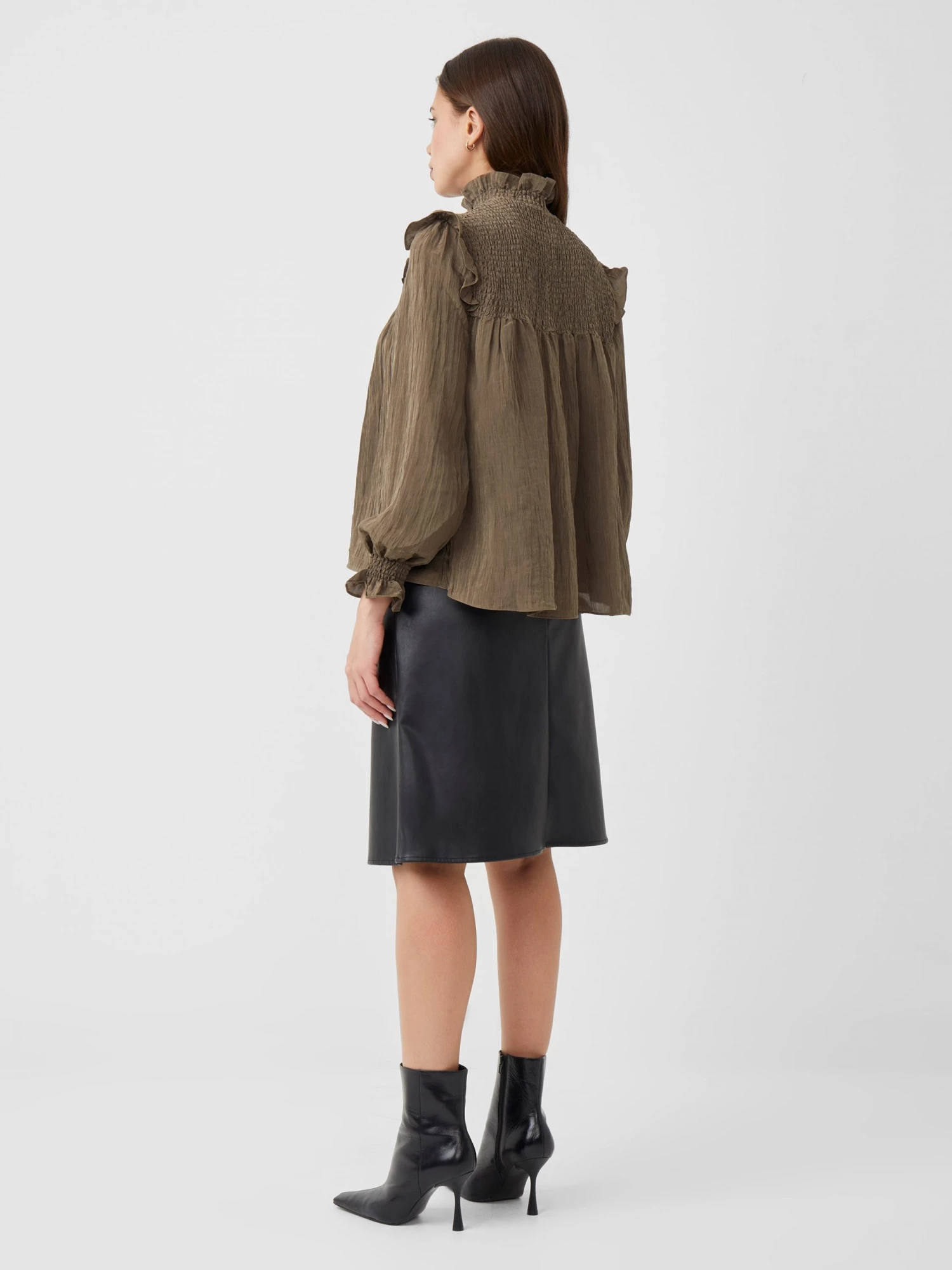 Channel the ever-essential prairie girl look with the Boza Crinkle Smocked Top. In a crisp, crinkle-effect fabric, it’s decorated with ruffled accents and a smocked panel.