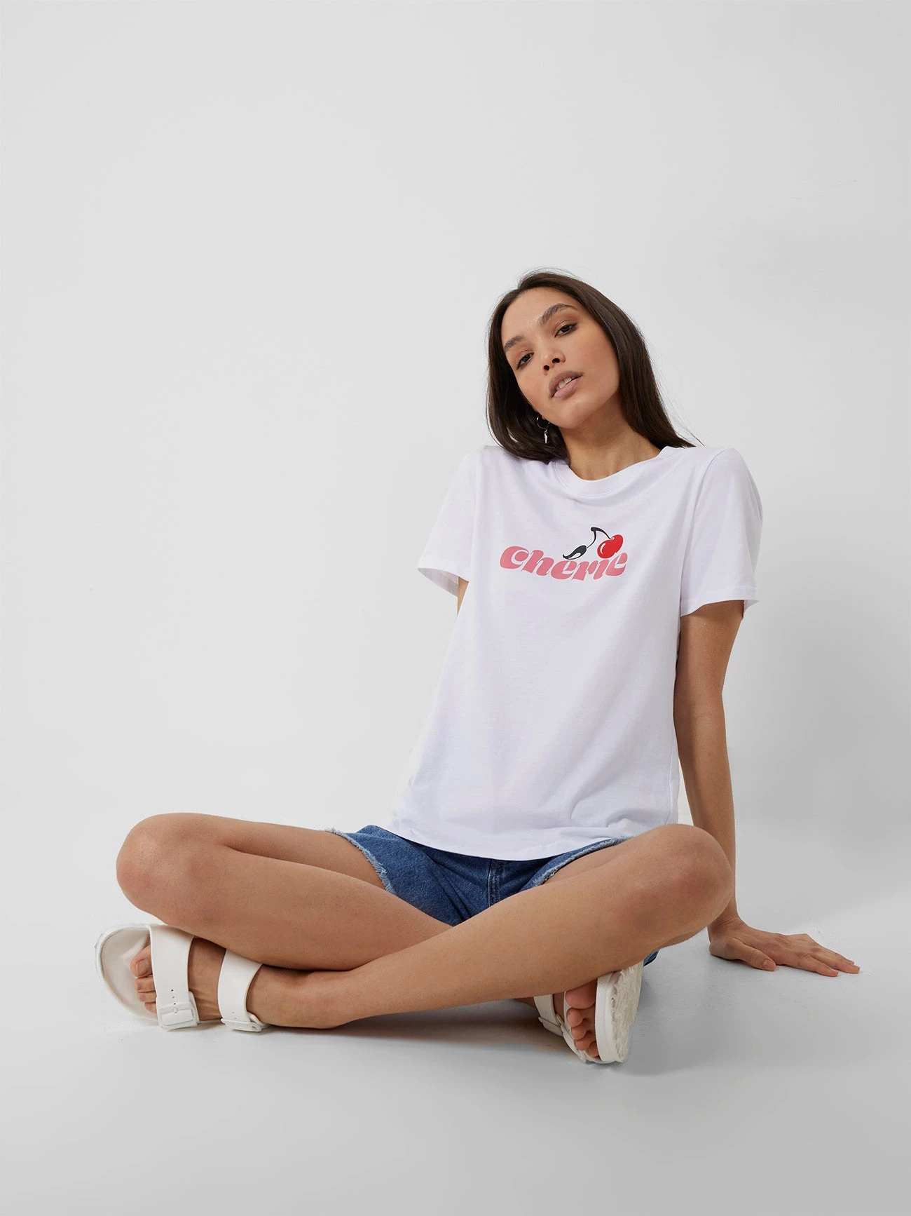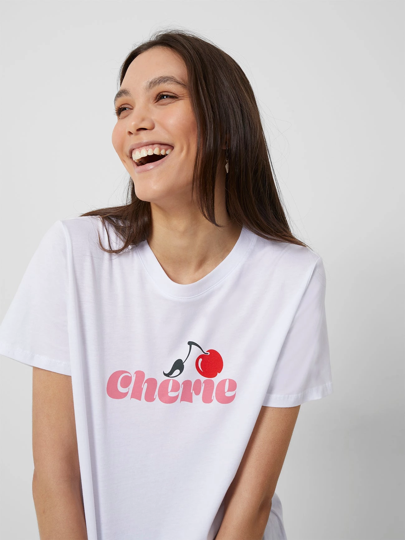Parlez-vous français? With our Cherie Graphic Boyfit T-Shirt, you can master French casual elegance thanks to its graphic cherry print.