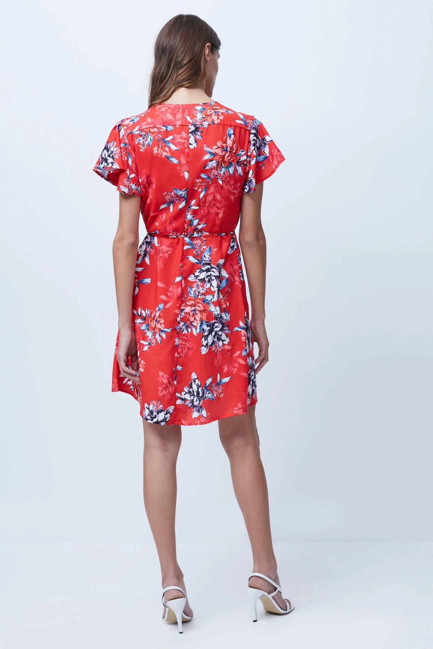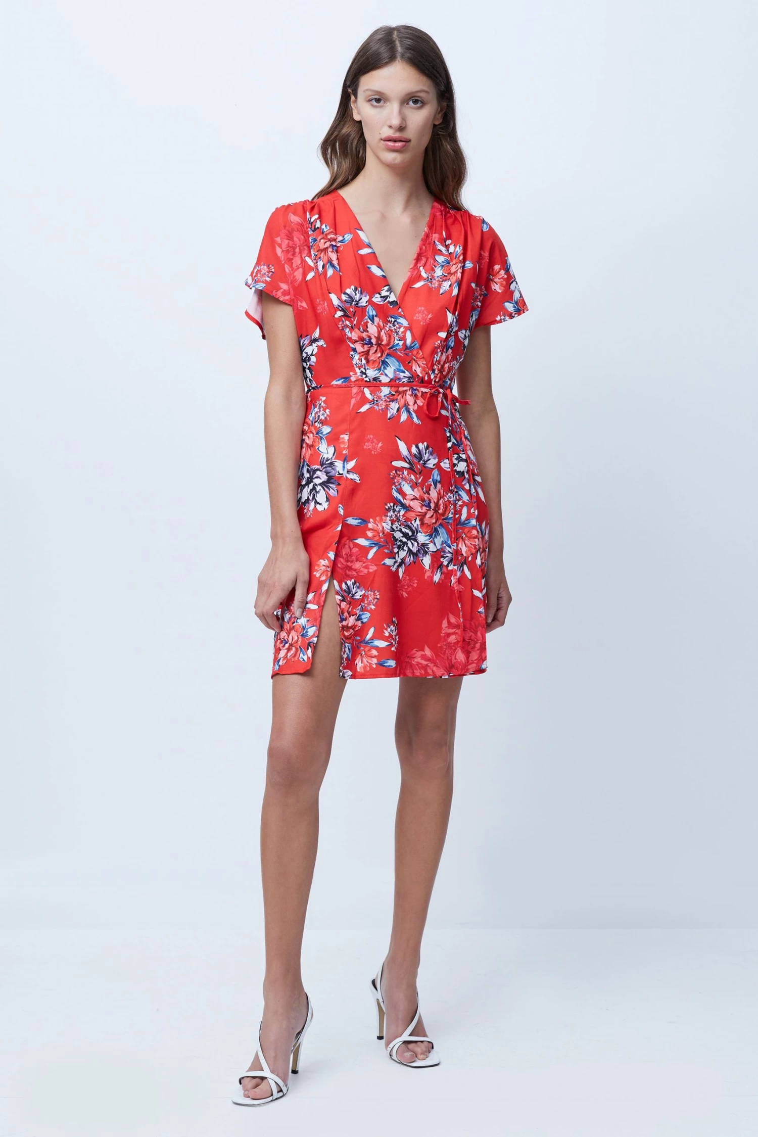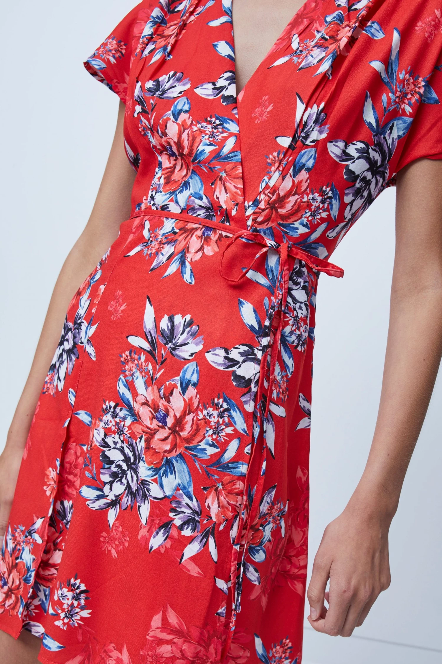 Step into summer in style with the Coletta dress. Created in a lightweight crepe fabrication, the floral dress elegantly skims the body, instantly creating a flattering shape. Featuring a v neckline, feminine faux wrap detail, waist cinching belt and short sleeves, the Coletta dress is the perfect piece for warm weather occasions. Simply switch your footwear from heels to trainers for a more casual aesthetic.