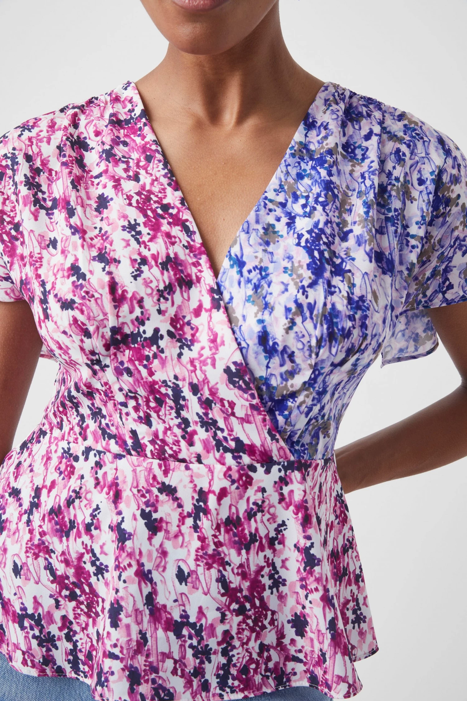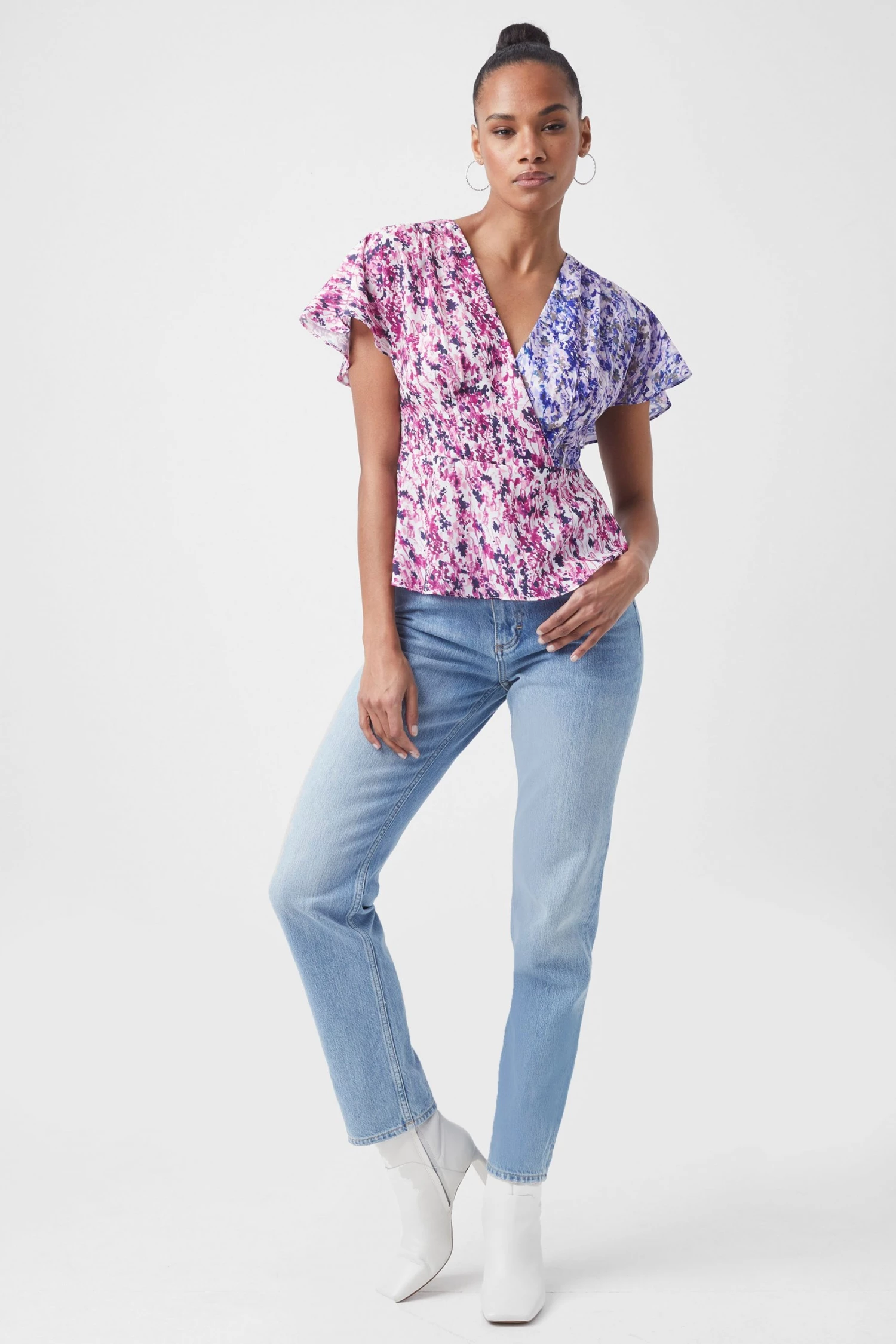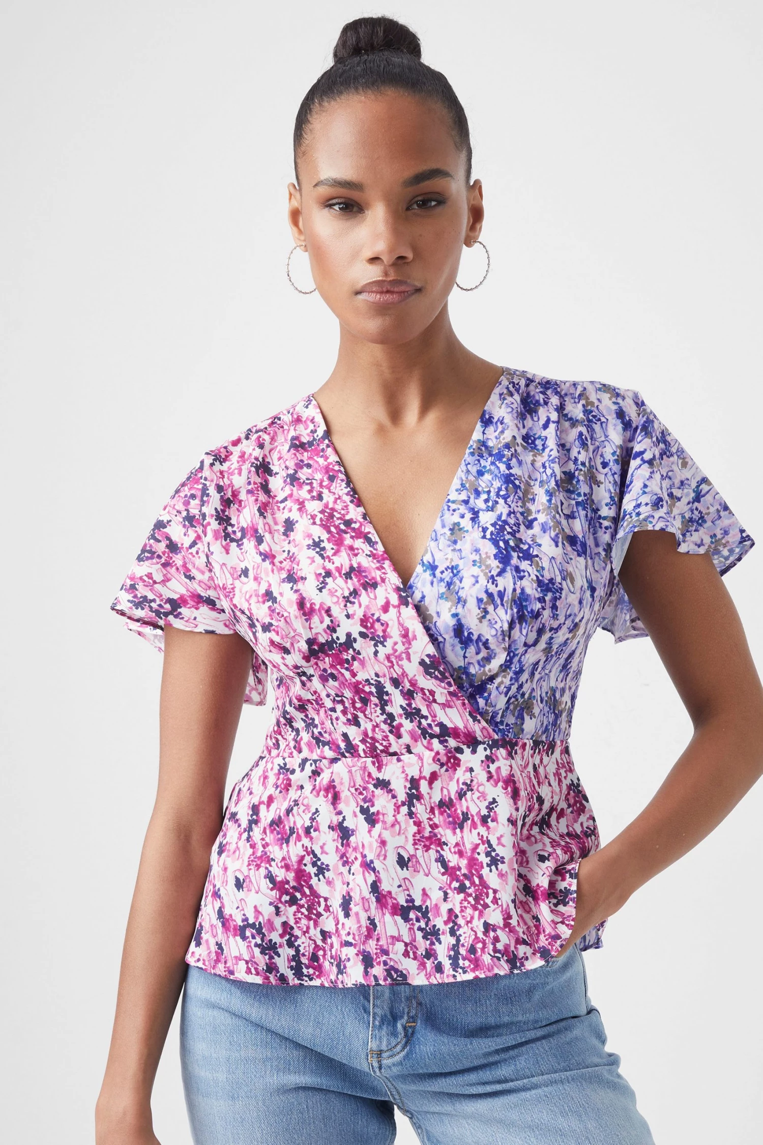 Lose yourself in the blooming fields of the Courtney Crepe V Neck Top. The breezy style is designed with ruffled sleeves and a V-neckline.