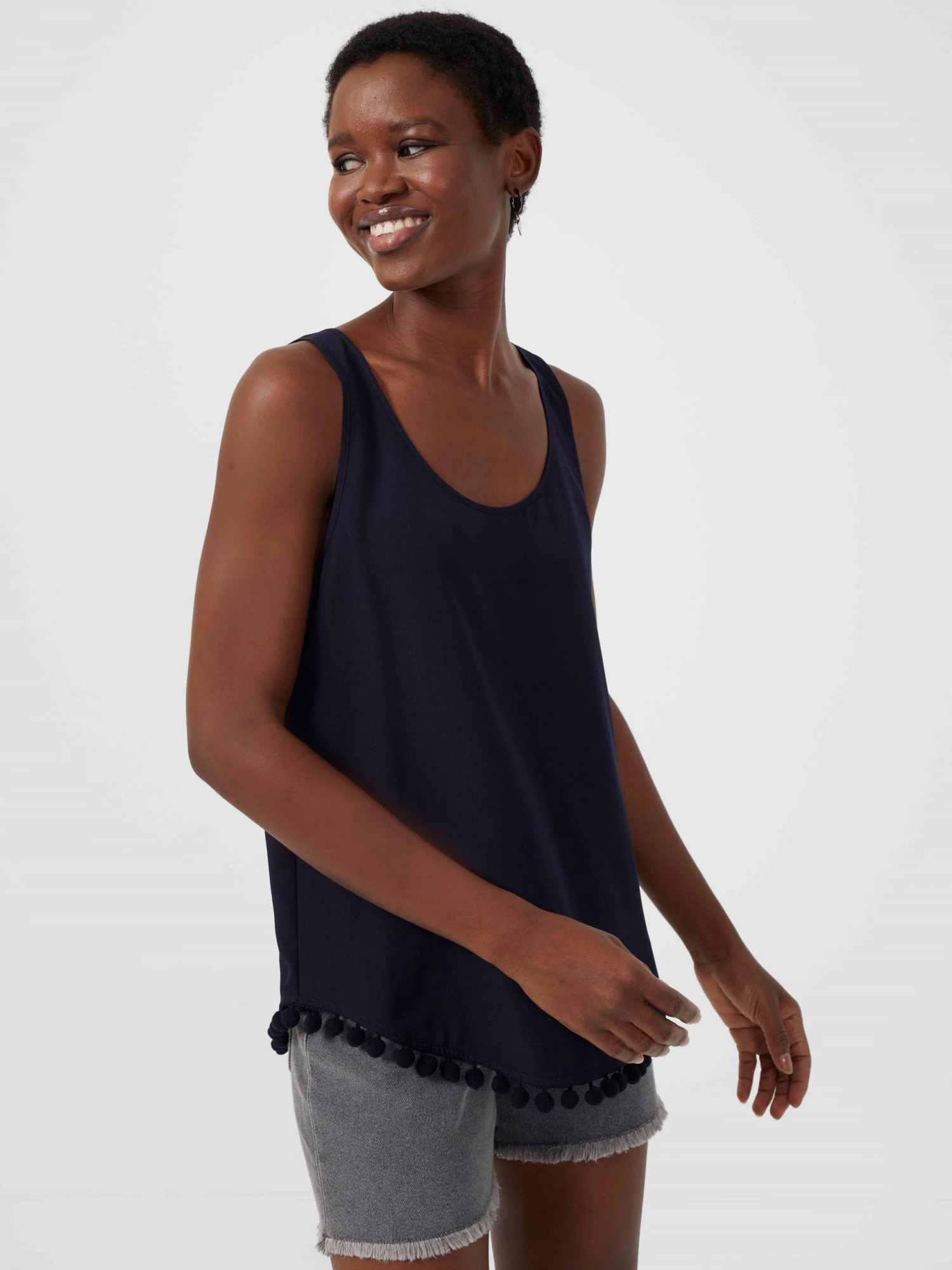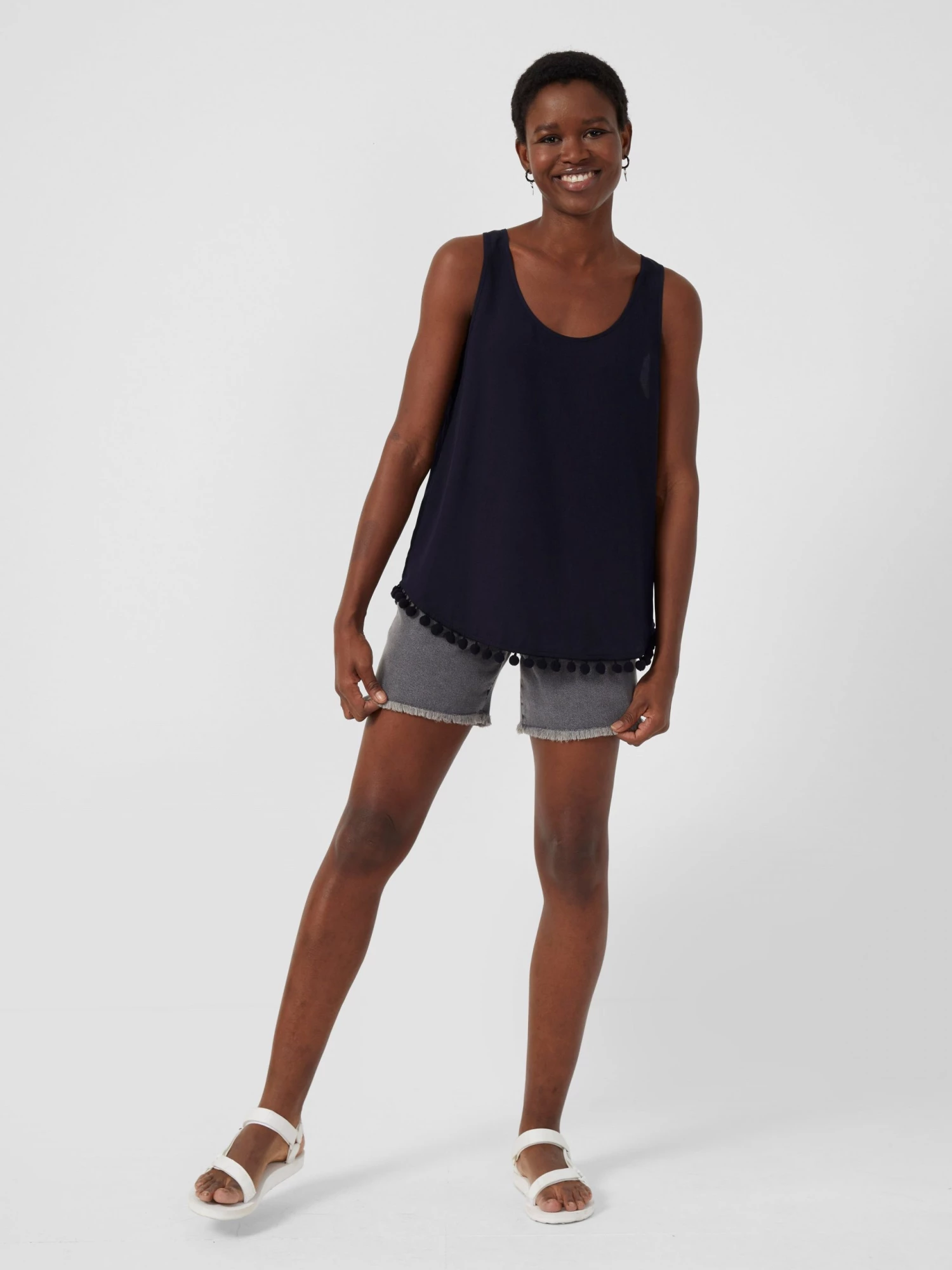 Are you ready to talk fringing? Our Pom Pom Vest Top is designed with a round neckline, classic fit and miniature pom poms lining the hem.