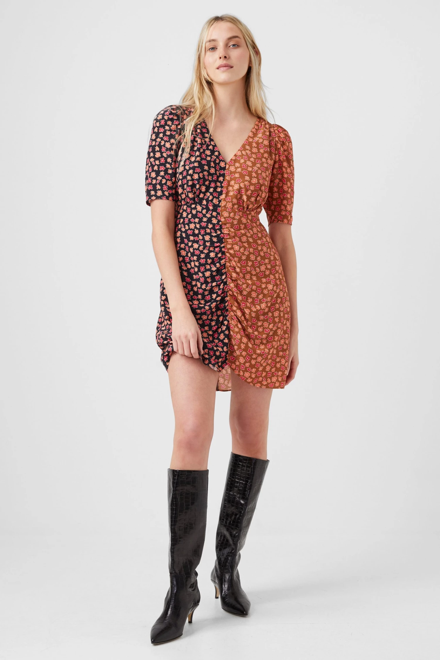 Your new crush – the Daisy Crush Mix Drape Dress. Featuring a two-tone design and floral print with ruching at the front, perfect for the weekends.