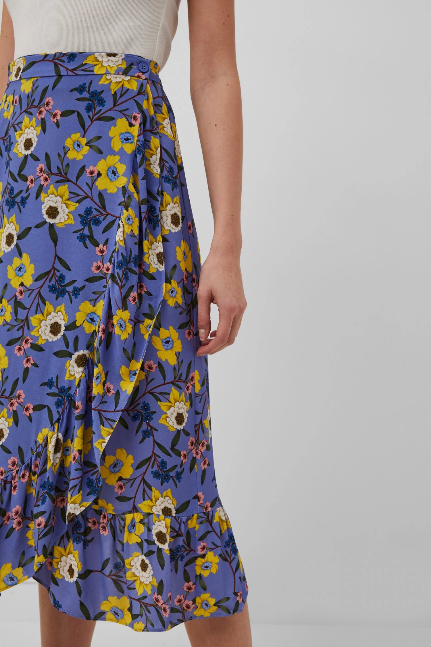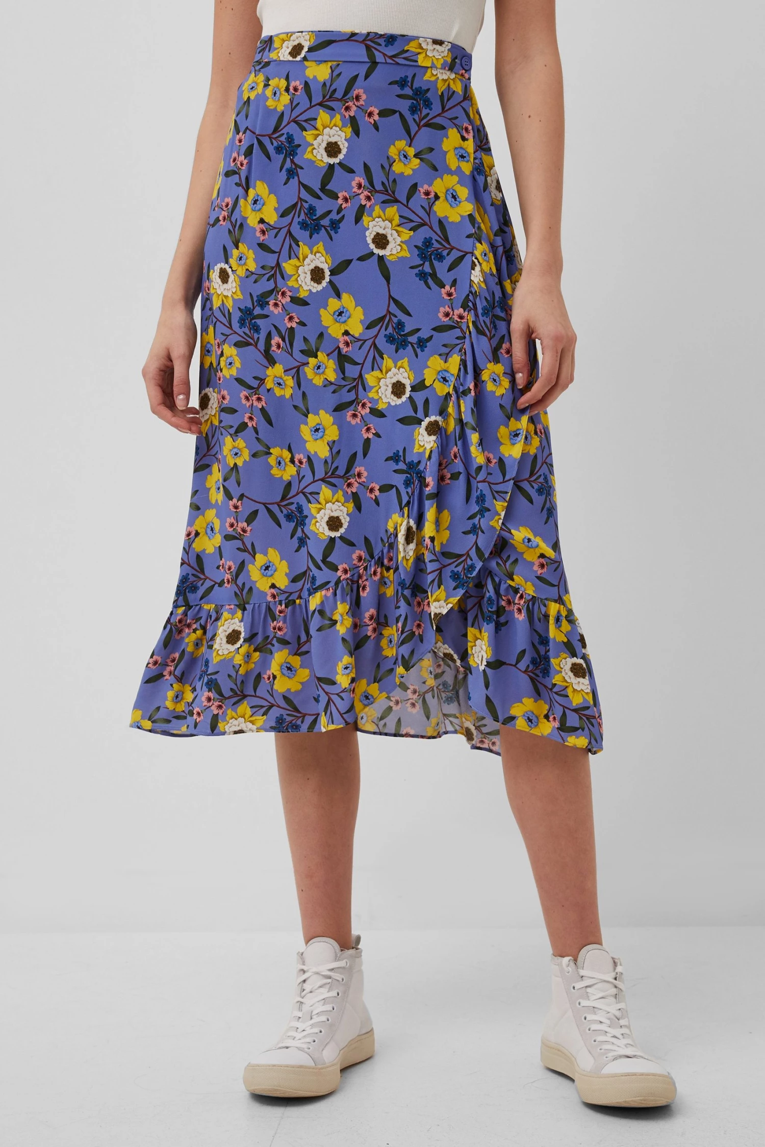 The Eloise Skirt is the perfect thing to refresh your wardrobe for spring. Designed with a vibrant floral print, high waist, feminine wrap cut and ruffled detailing.