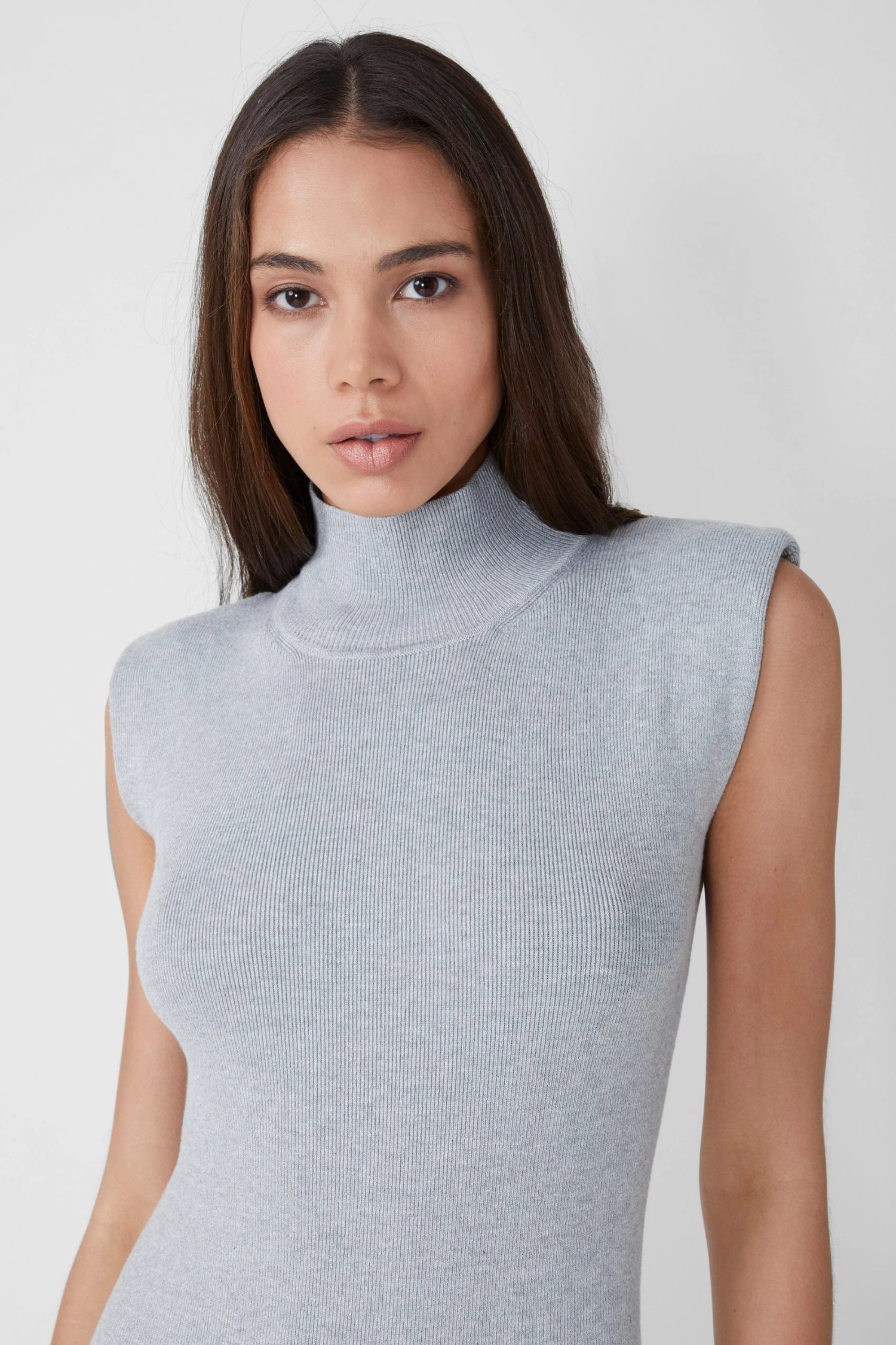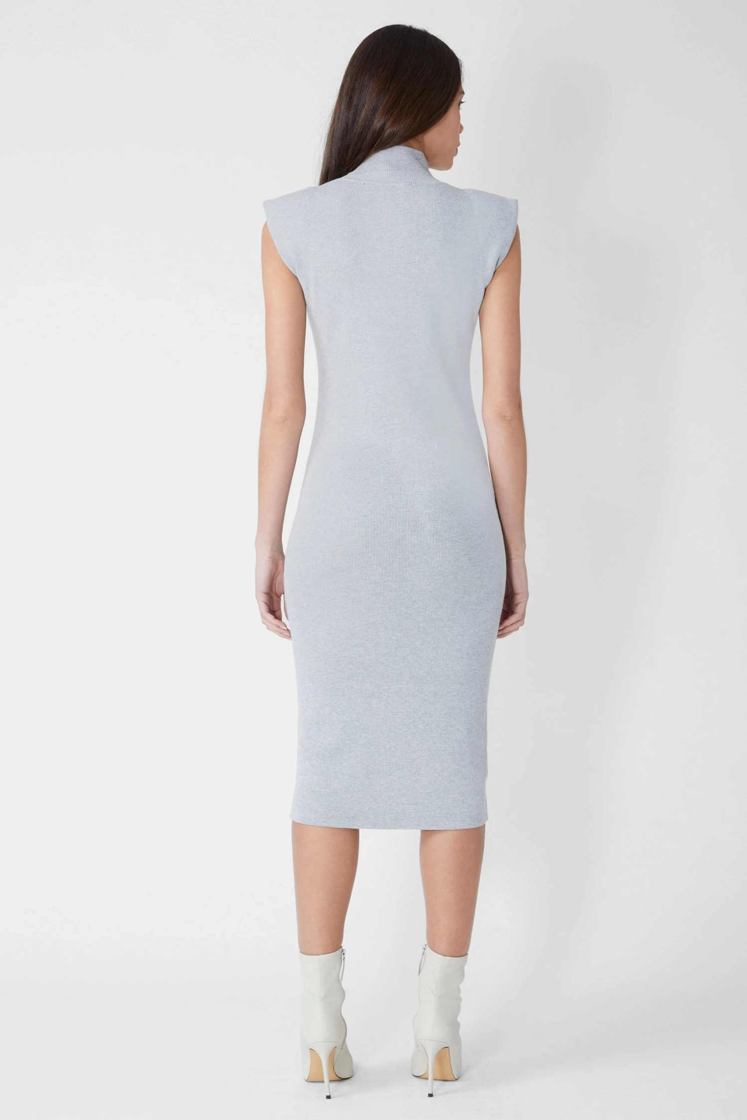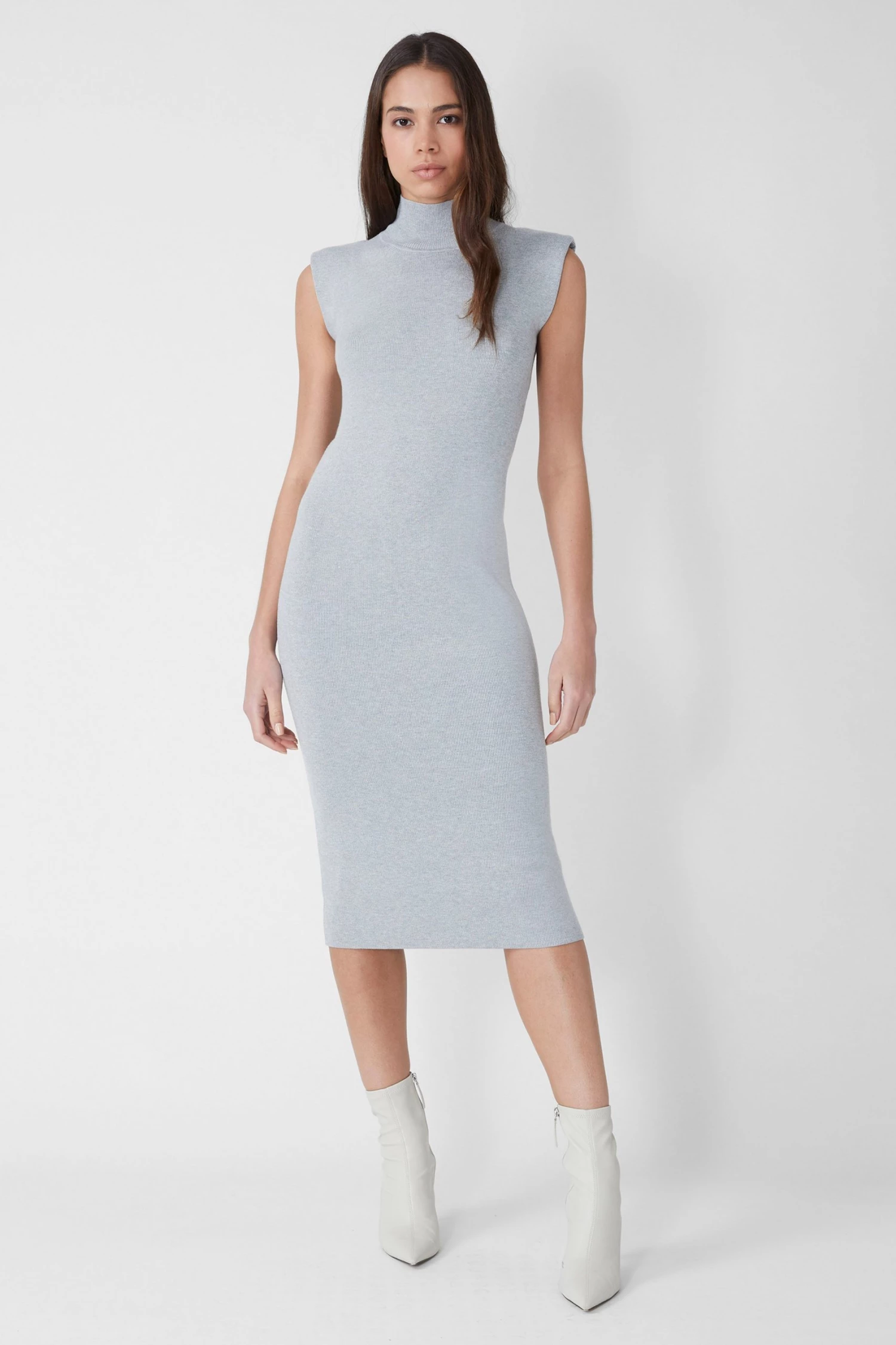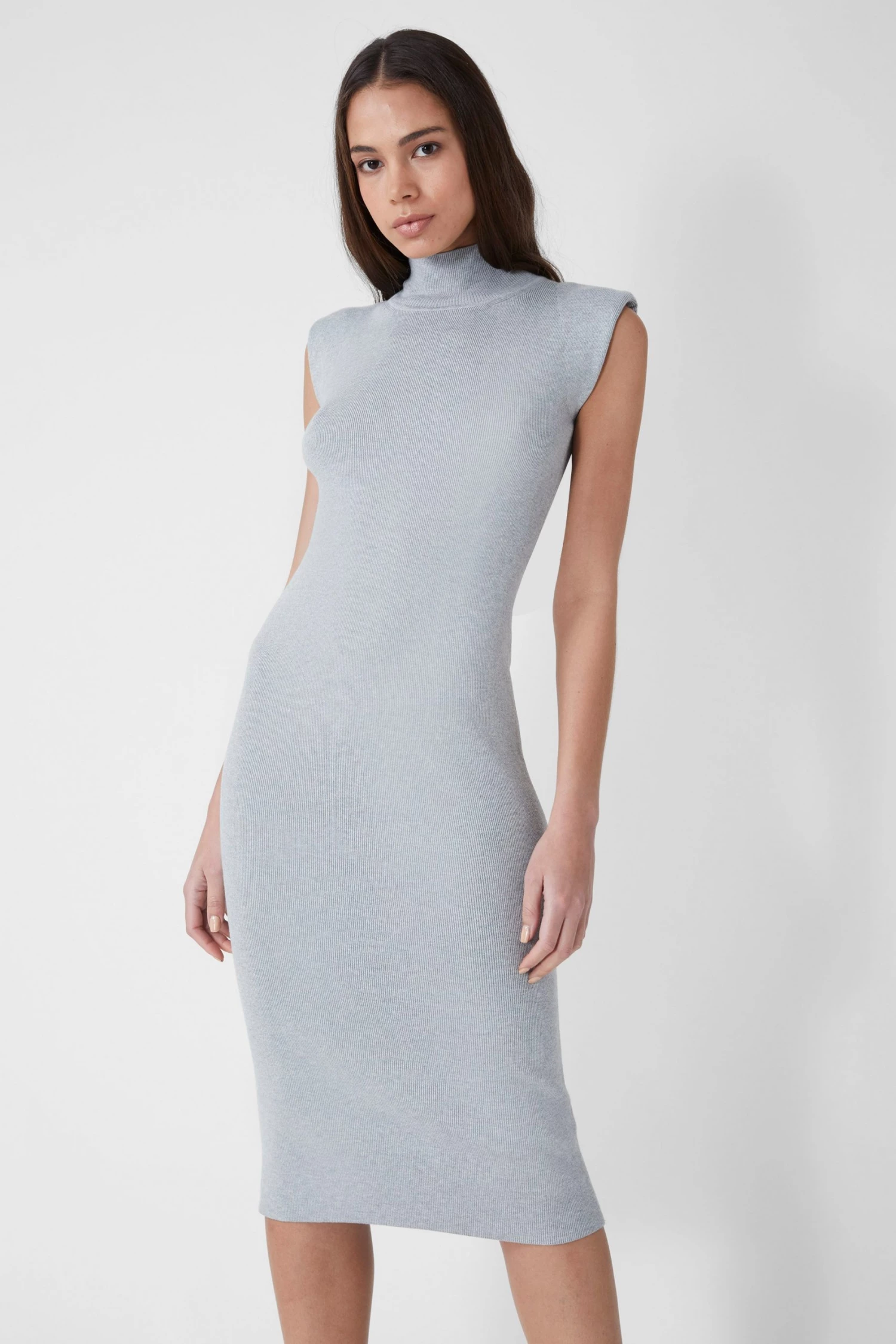 Proving the power in unashamed simplicity, the Fitted Shoulder Pad Midi Dress is designed with a bodycon silhouette, padded shoulders and a high neckline.