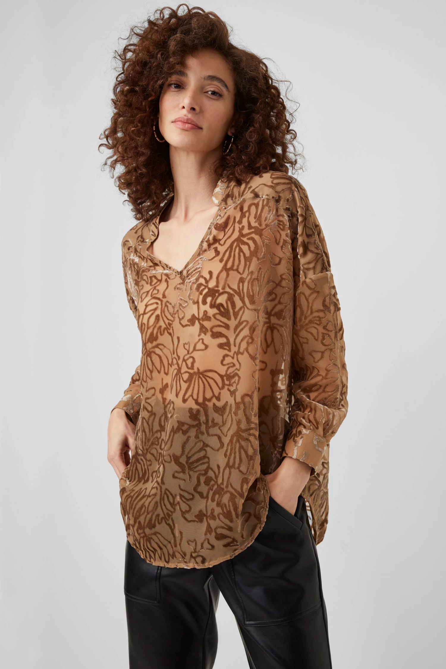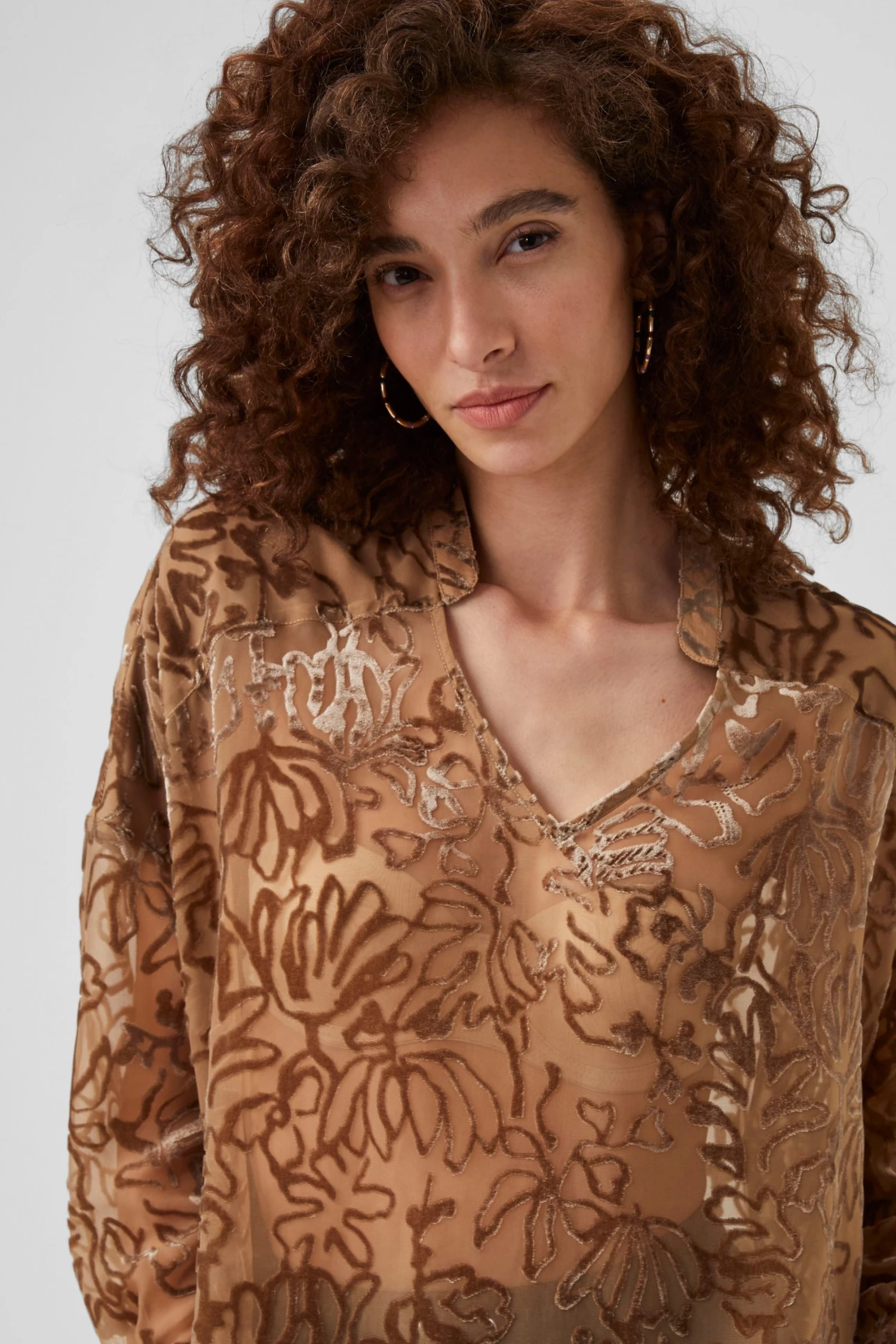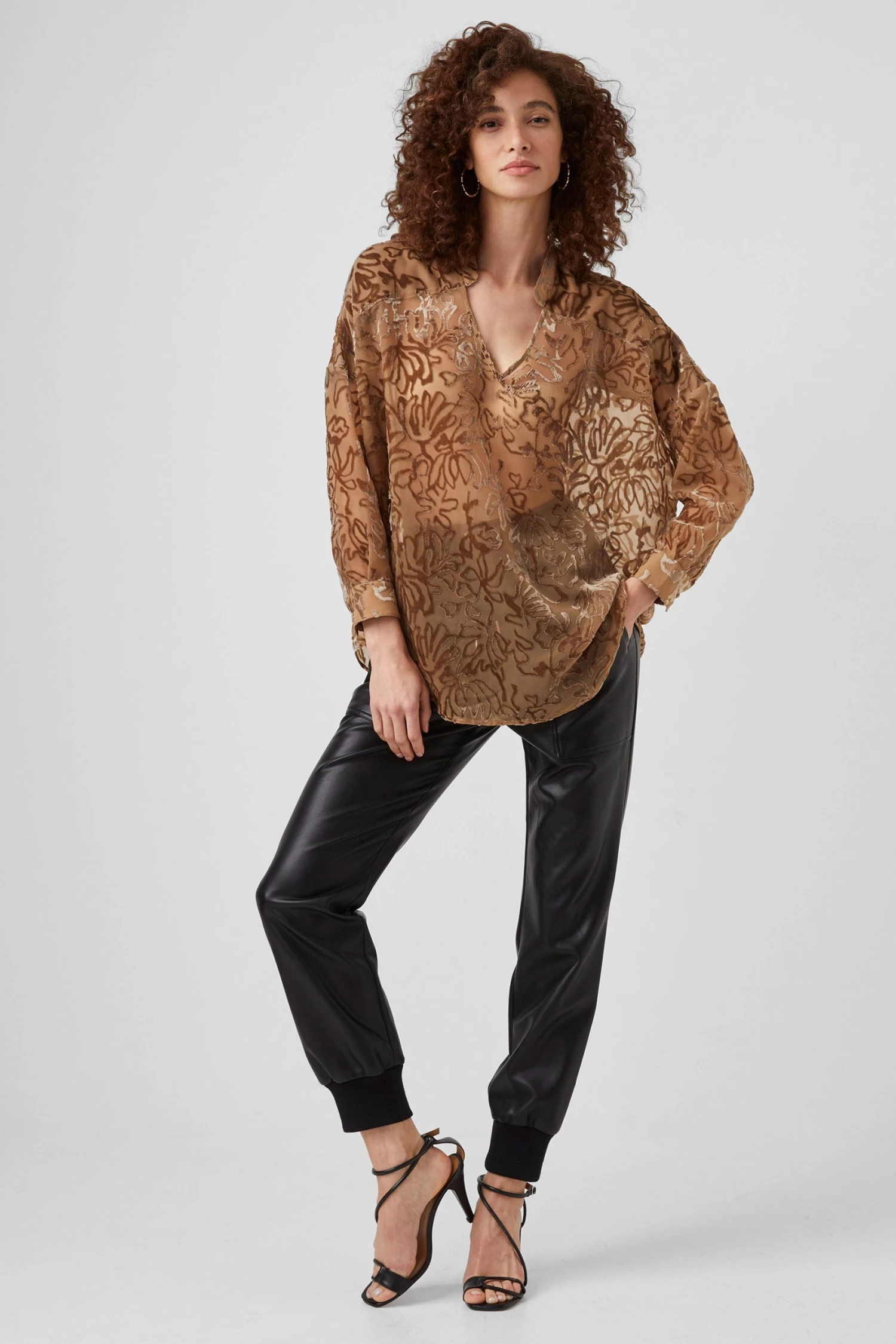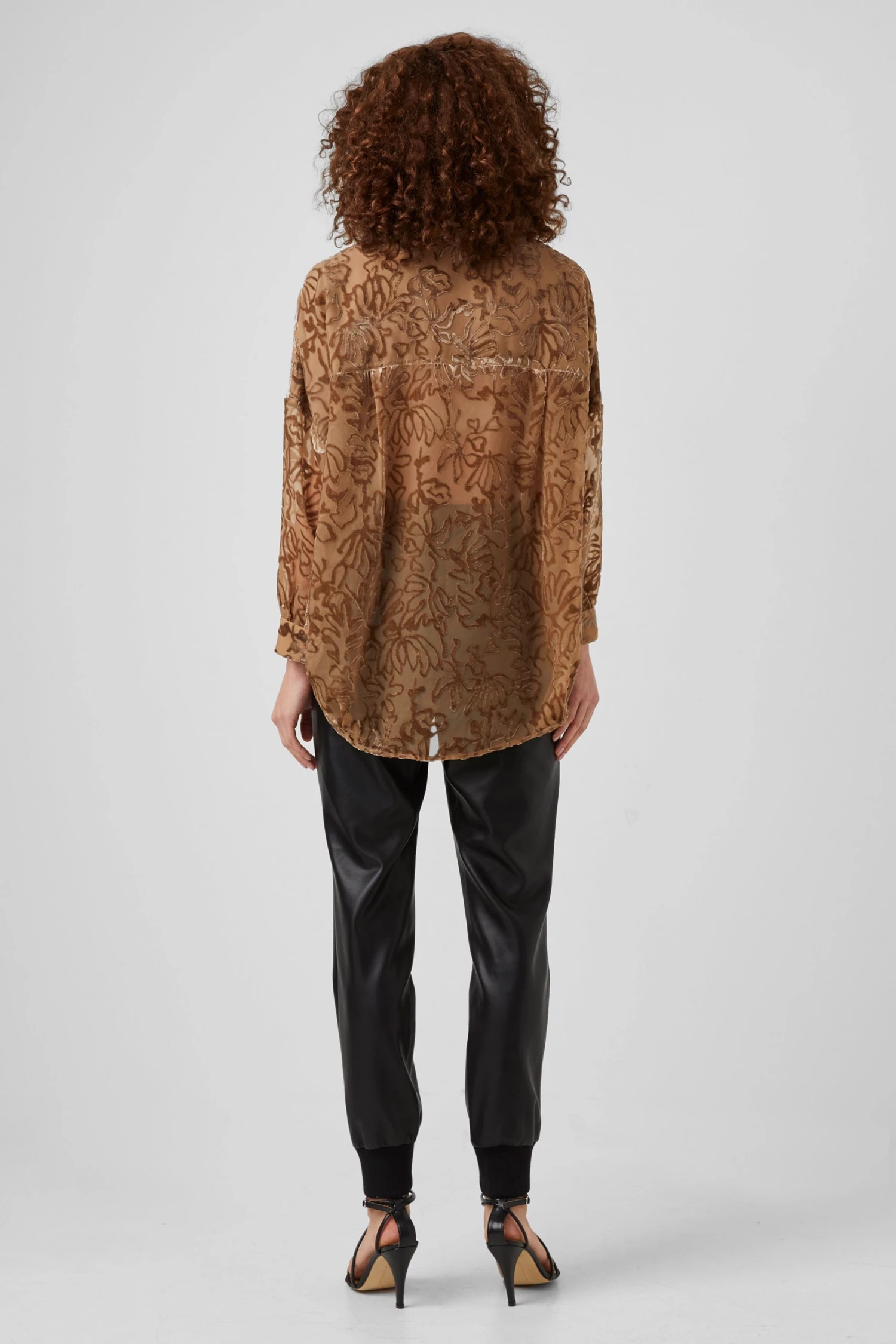 Perfect for the after-dark territory, the Gemna Devoré Pop Over Top fuses a casual silhouette with elegant floral embroidery atop a semi-sheer backdrop.