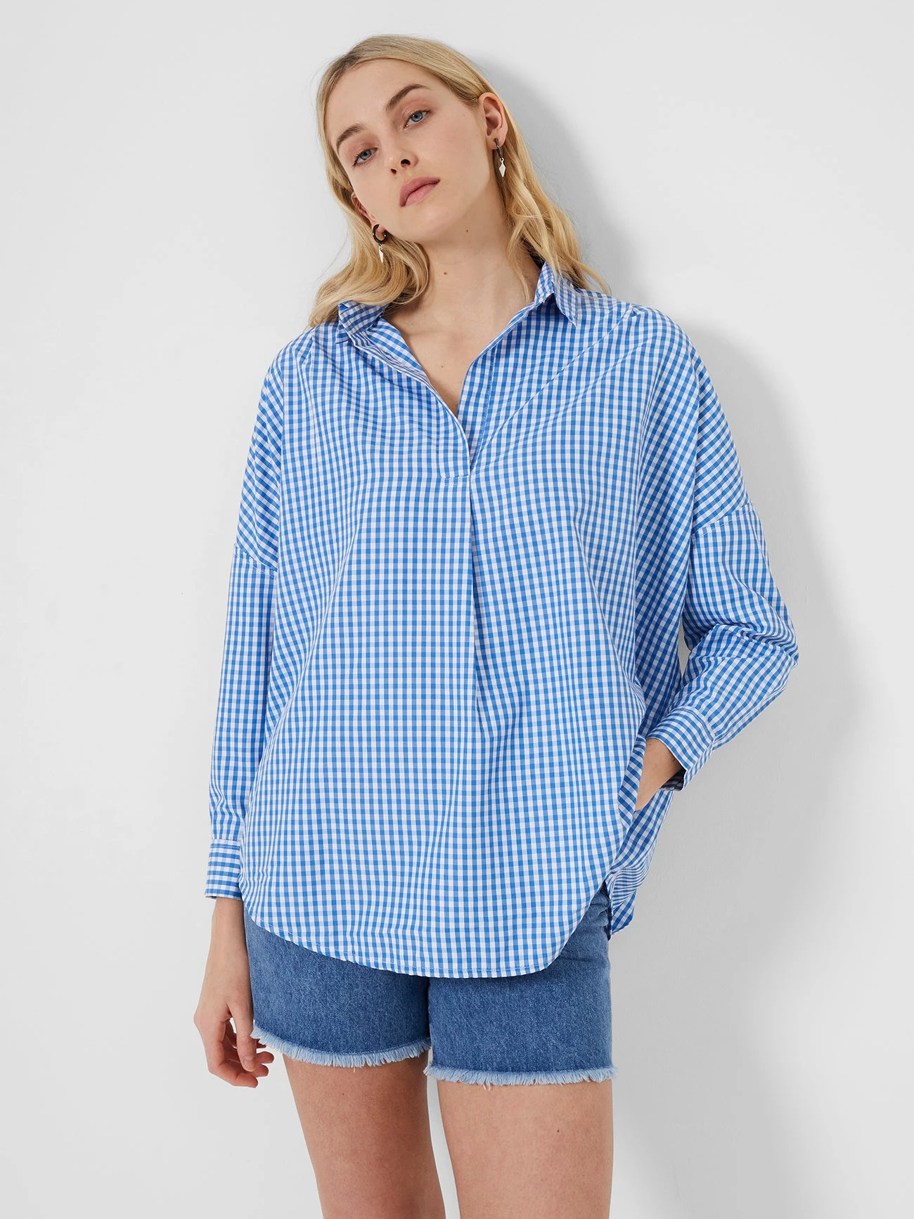 An easy pattern in an easy fit, the Gingham Side Split Popover Shirt makes casual style effortless. The much-loved print takes on the relaxed pop-over silhouette, with an open collar, split sides and long sleeves with buttoned cuffs.