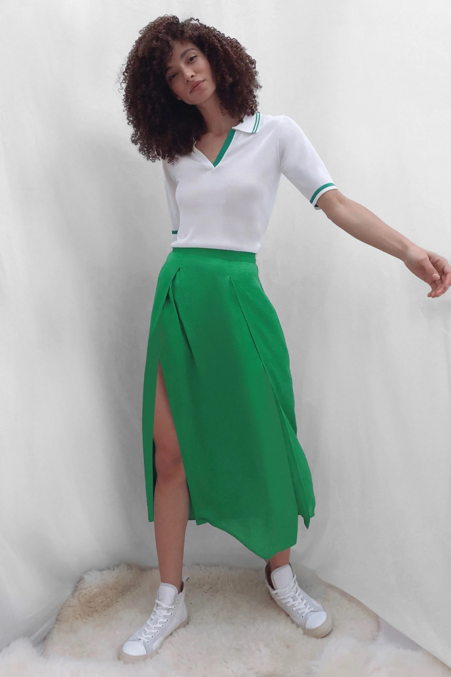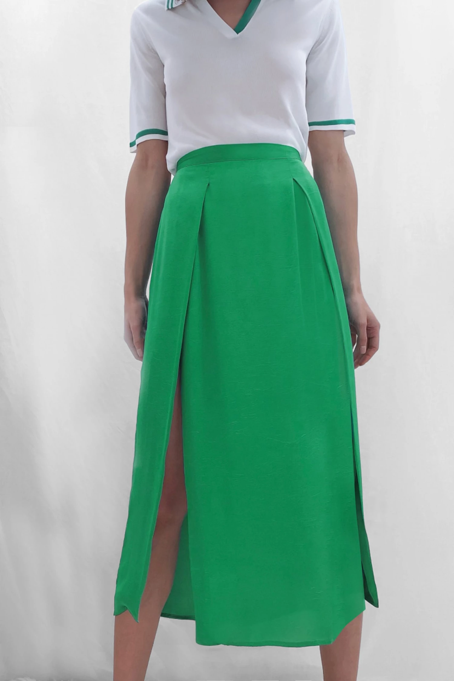 Kickstart your warm-weather portfolio with the Inu Satin Slip Skirt. Constructed from a shiny fabric, it’s designed with a high rise and side splits.