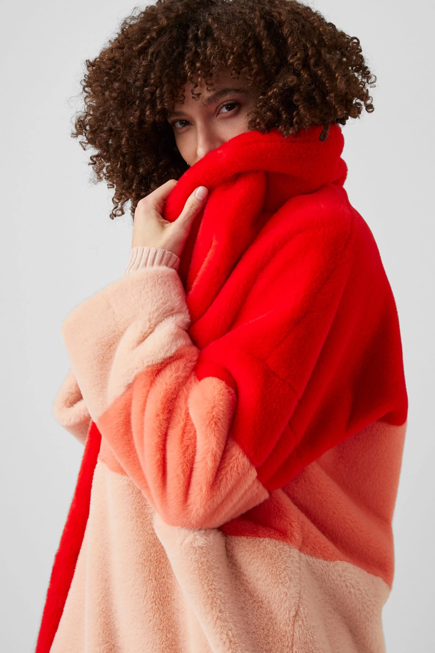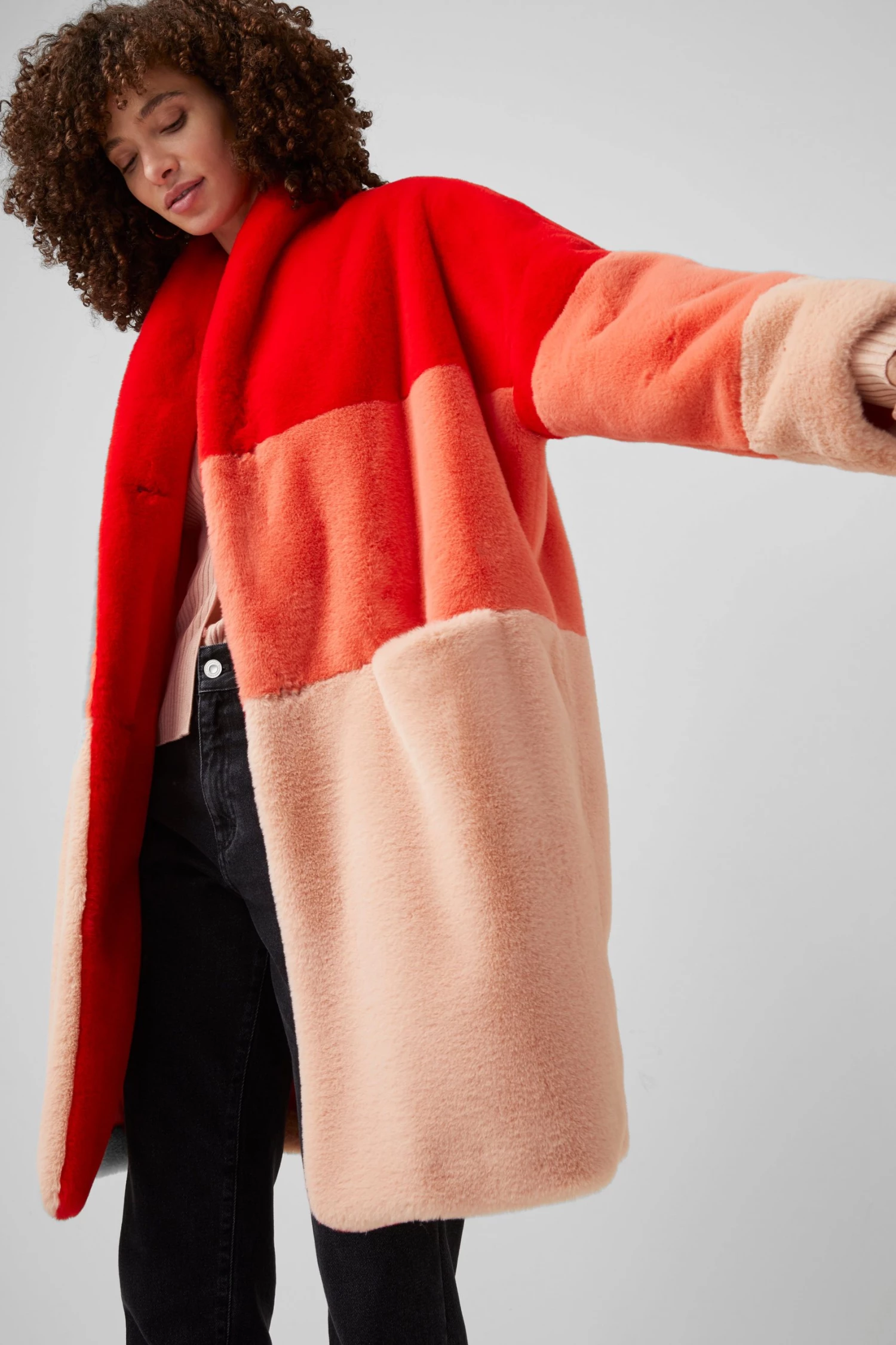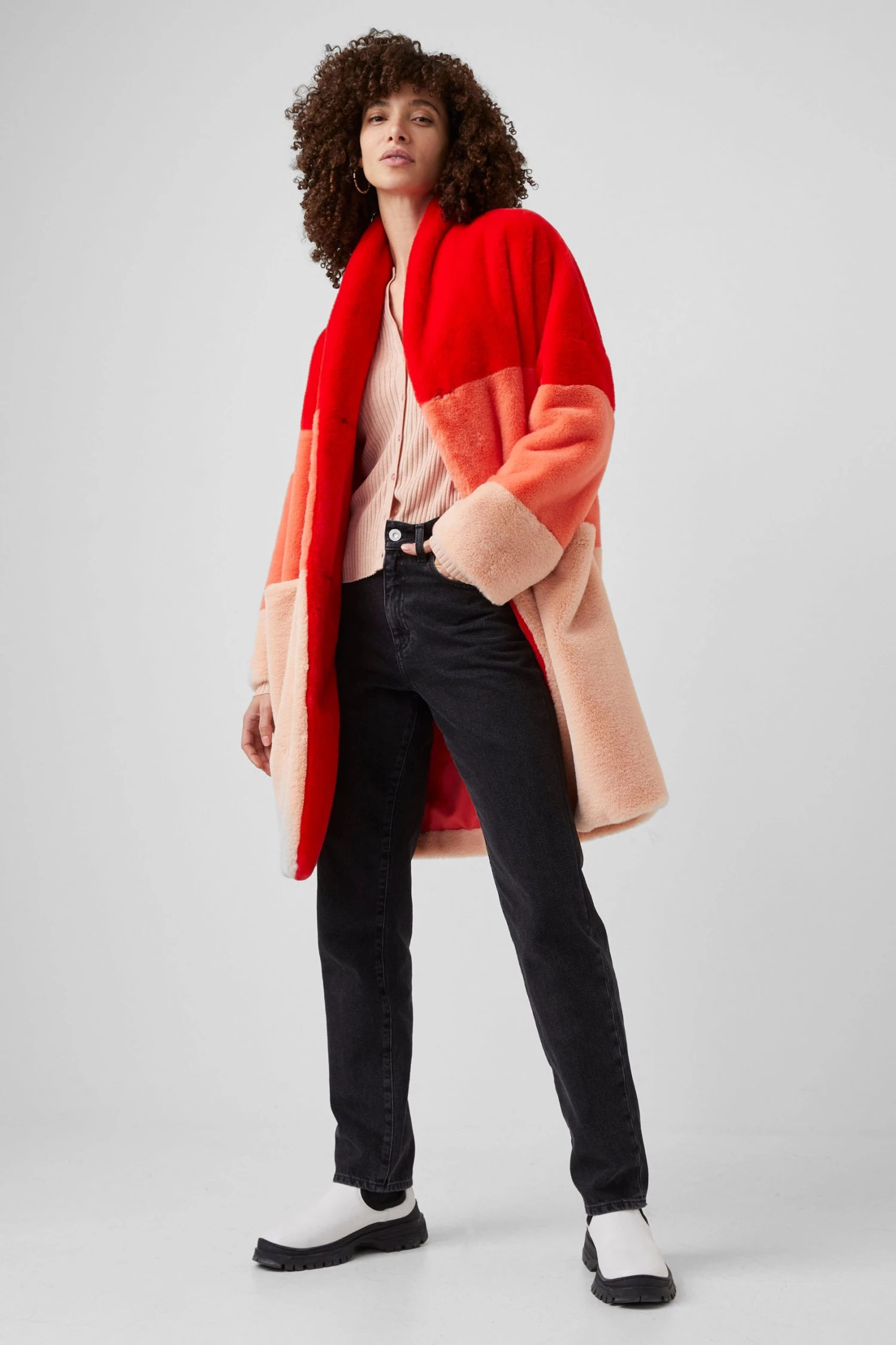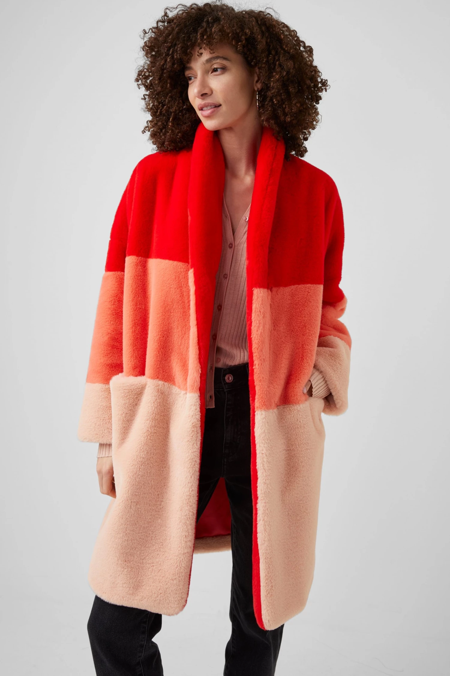 Coat with character – that’s our Izo Faux Fur Coat. Spotlighting a colour-block design atop its faux fur silhouette, it brings happiness to wintry mood boards.