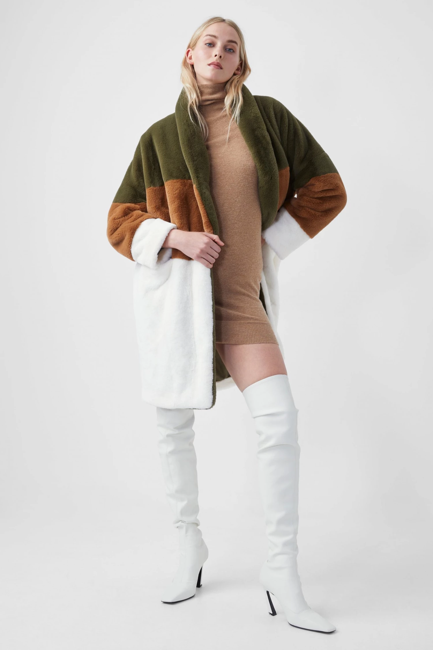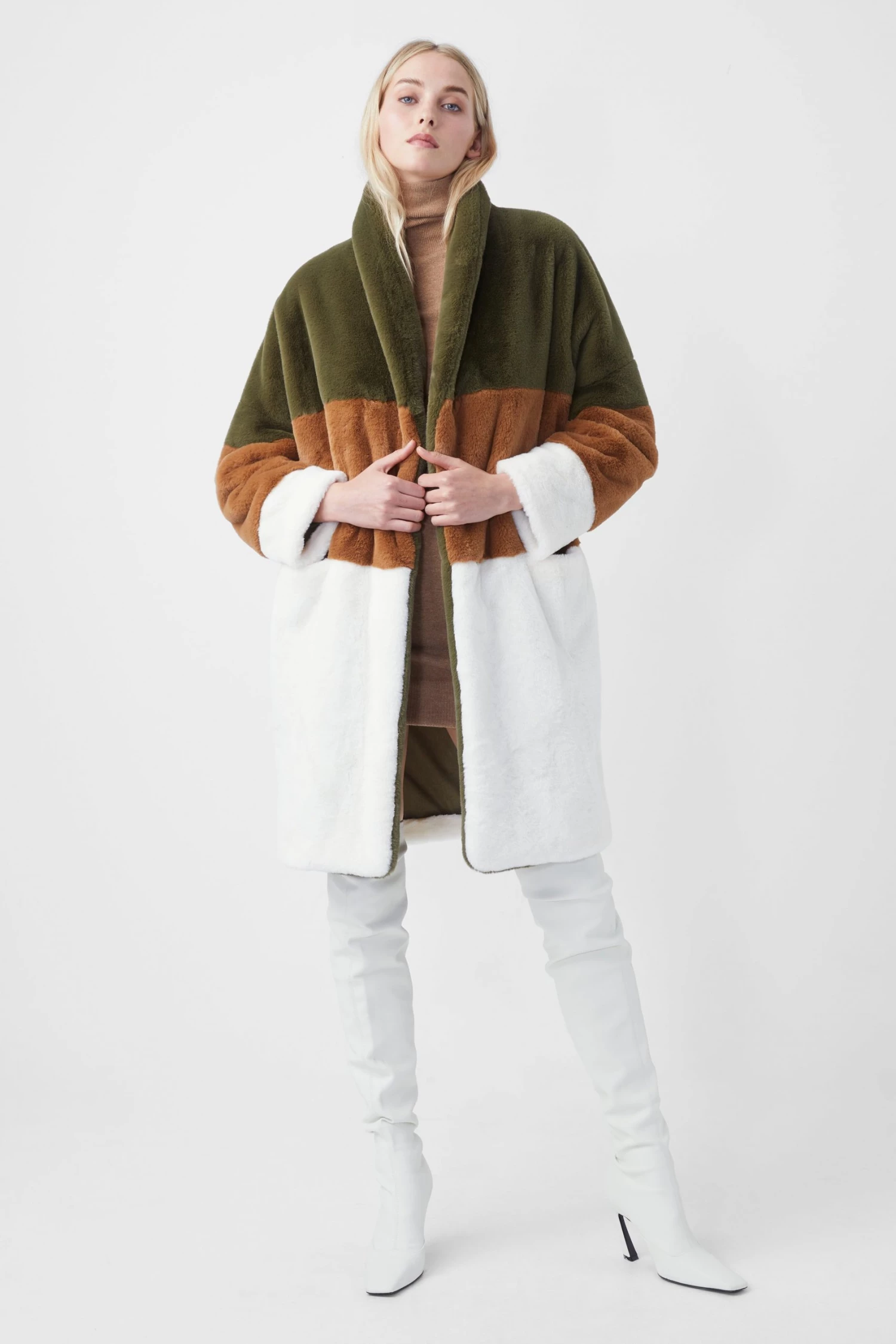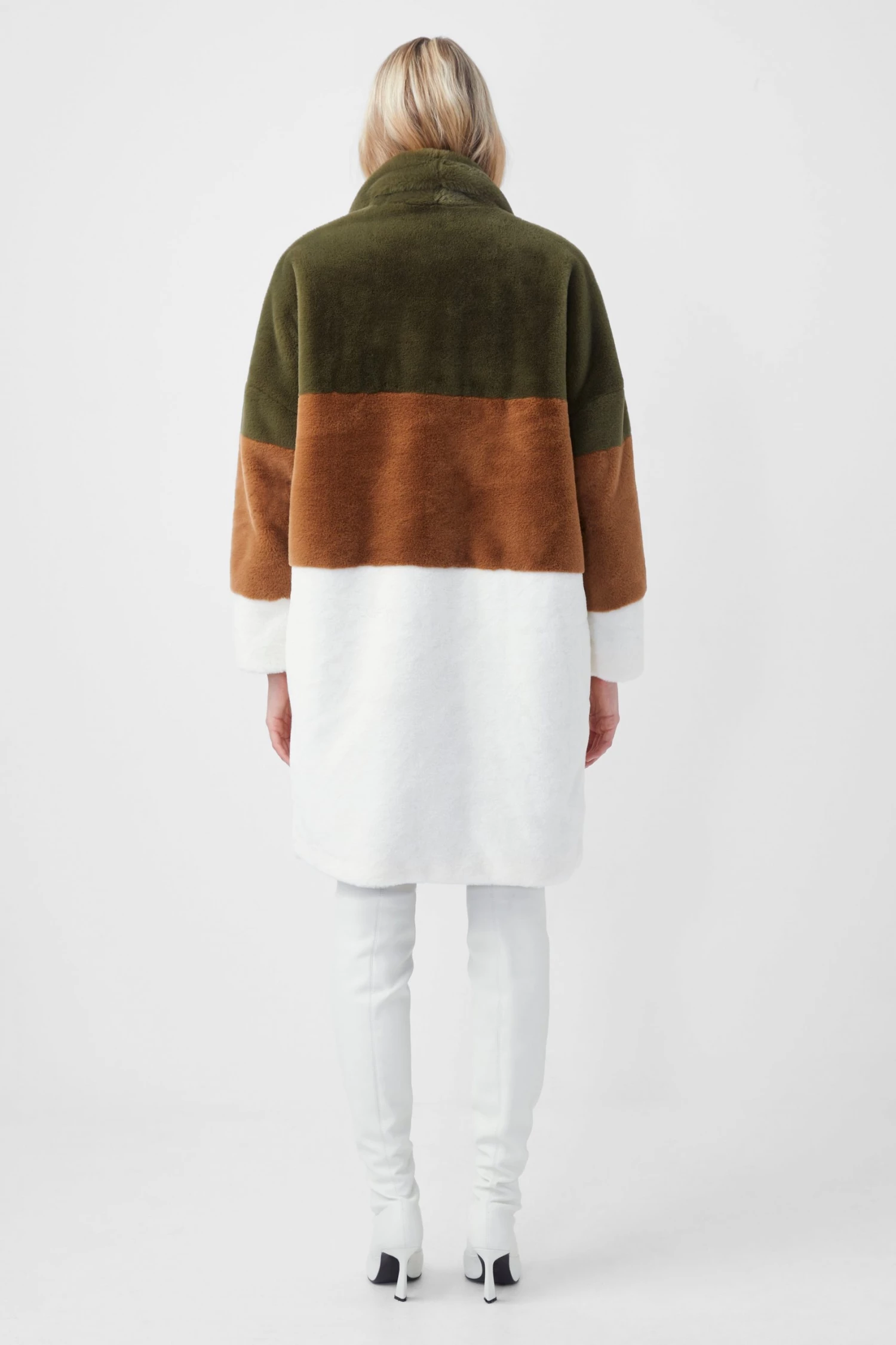 Coat with character – that’s our Izo Faux Fur Coat. Spotlighting a colour-block design atop its faux fur silhouette, it brings happiness to wintry mood boards.