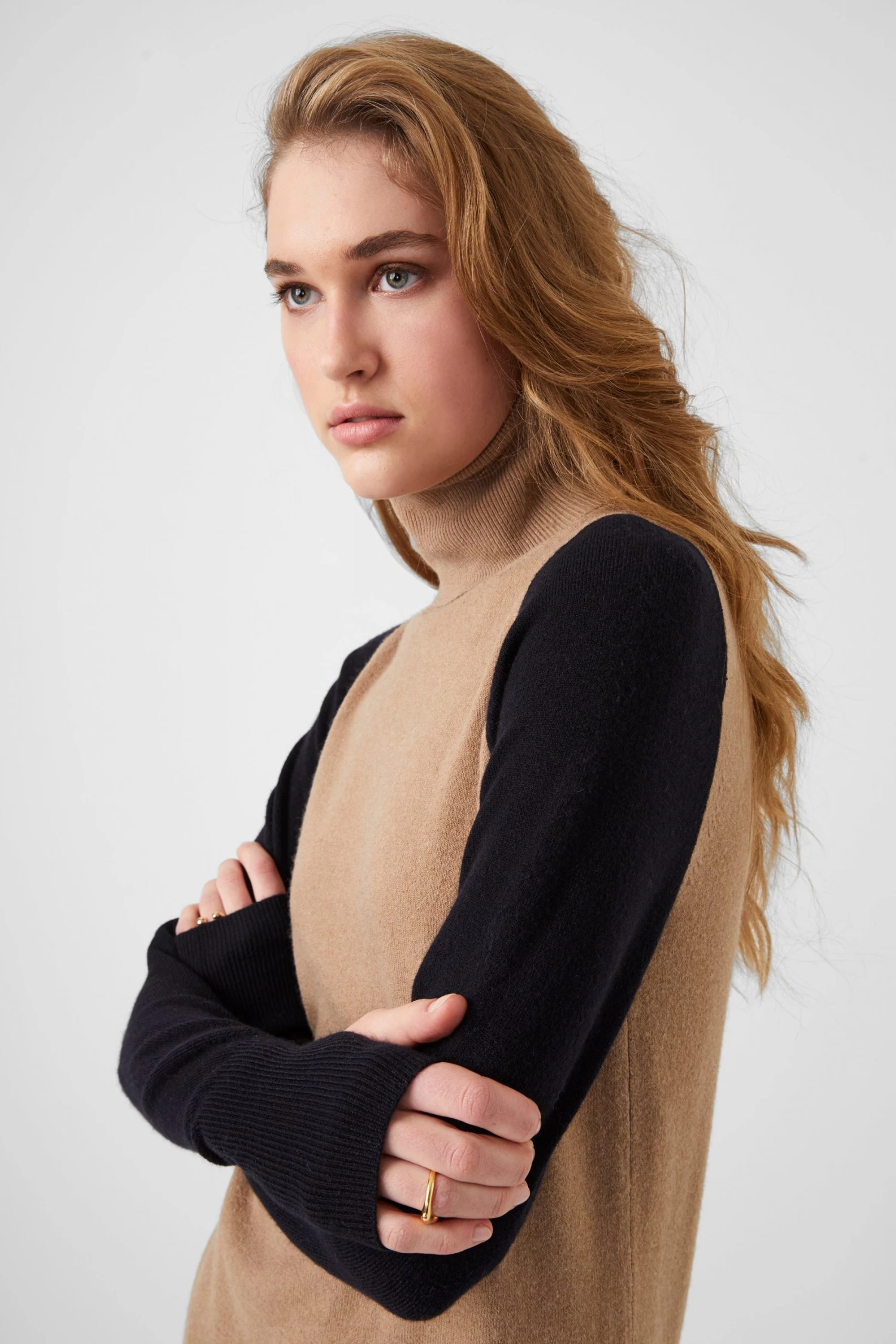 The cold won’t be able to get to you in the Millia Colour Block Vhari Jumper Dress. Not only comfortable, it’s finished with contrasting sleeves.