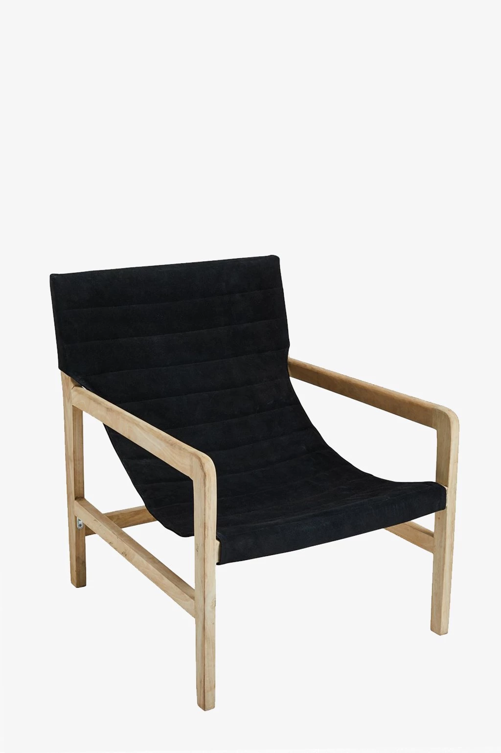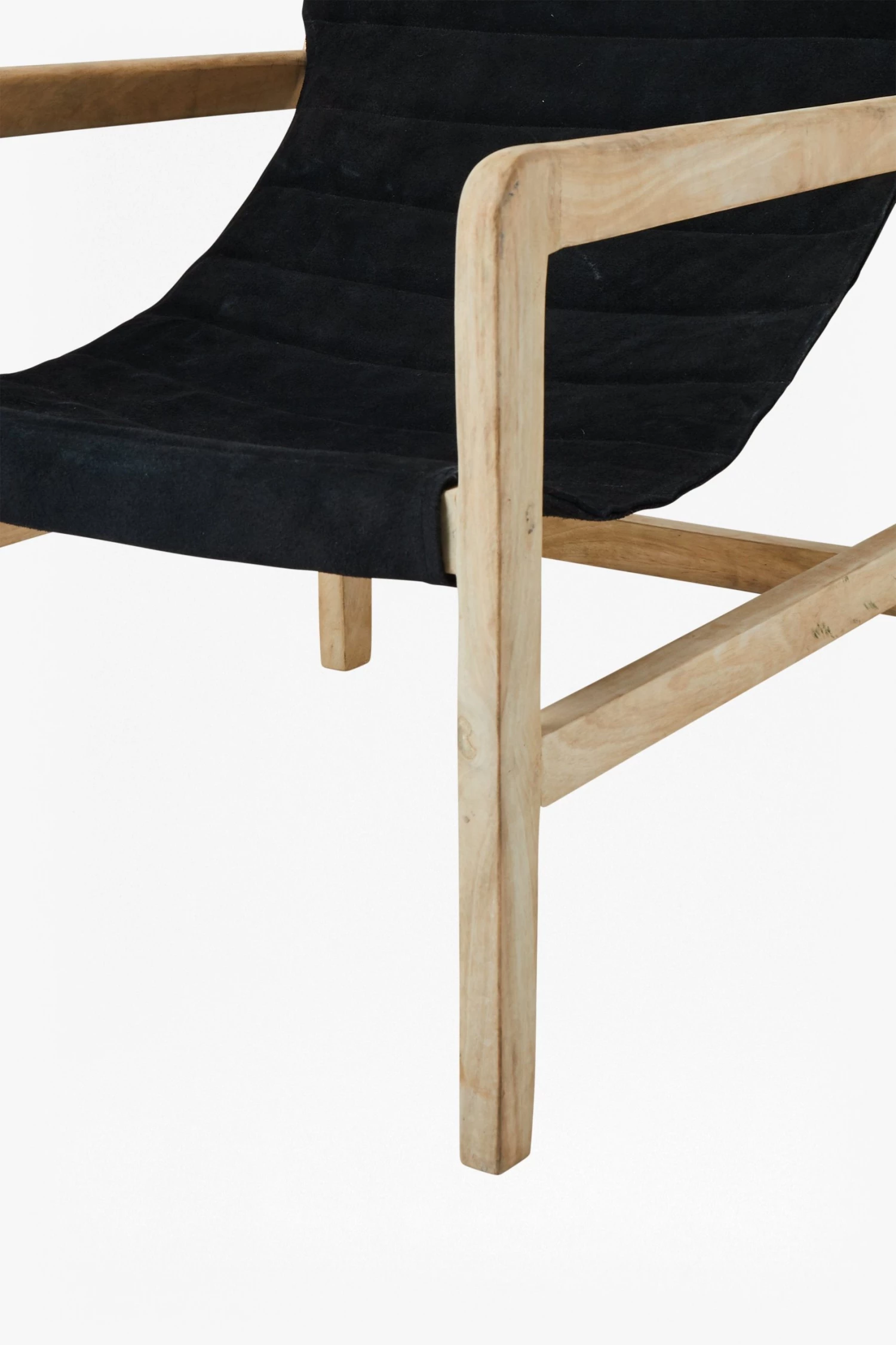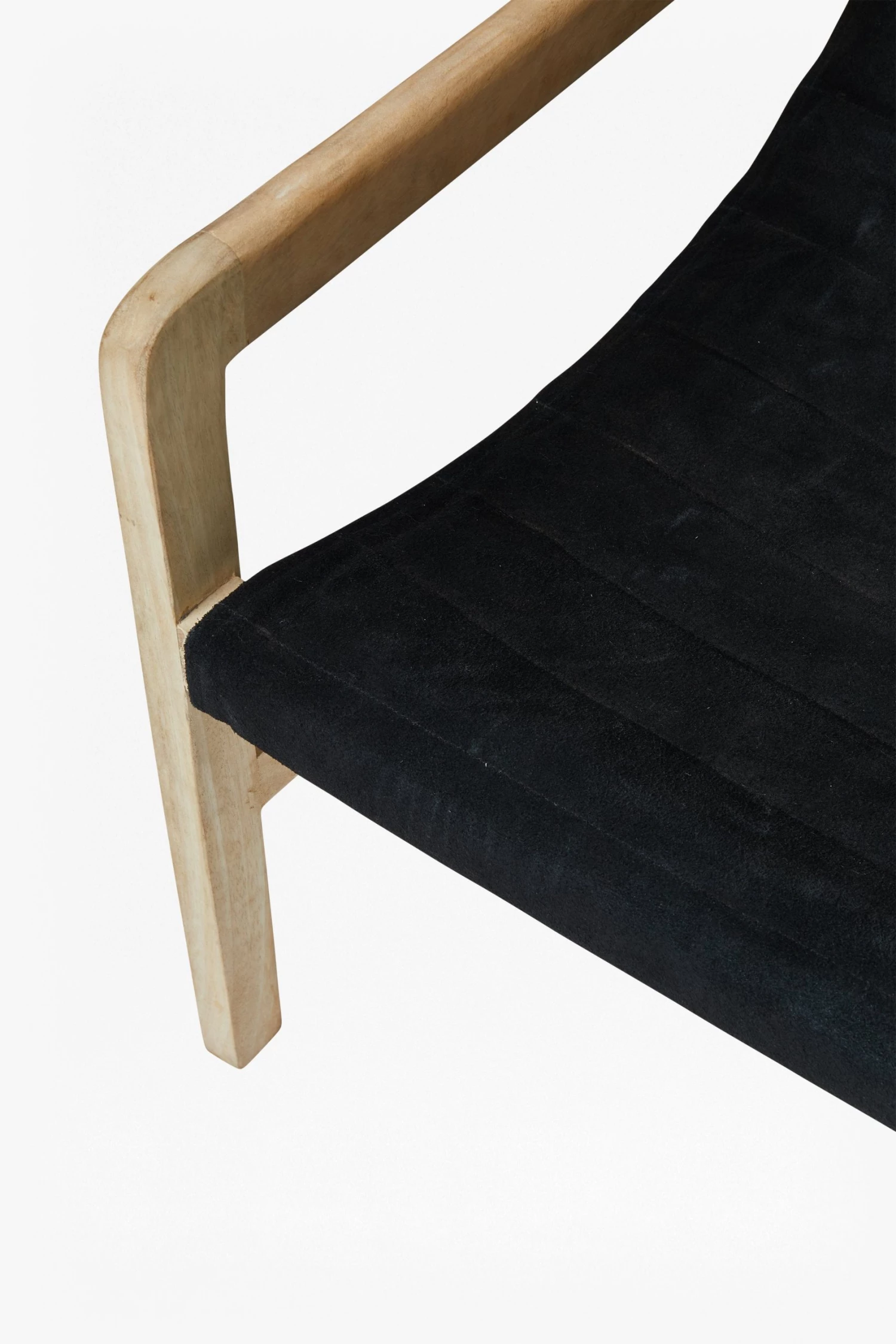 Sit back and relax in the Nightfall Suede Chair. Created with jet black suede and blonde sustainable mango wood, the chair is the perfect piece to add to minimalist and industrial spaces for a new modern touch. The angular design embraces contrast, purposefully juxtaposing light and dark shades, and smooth wood with textured fabric, for a chair that provides ultimate comfort, without compromising on style.