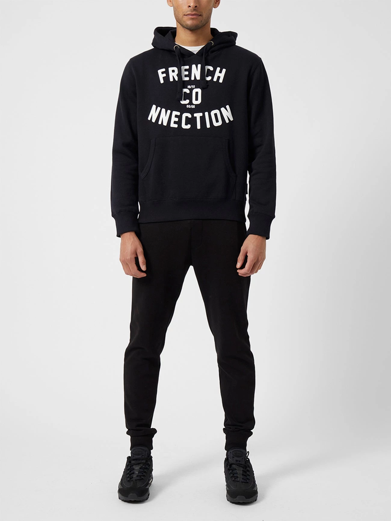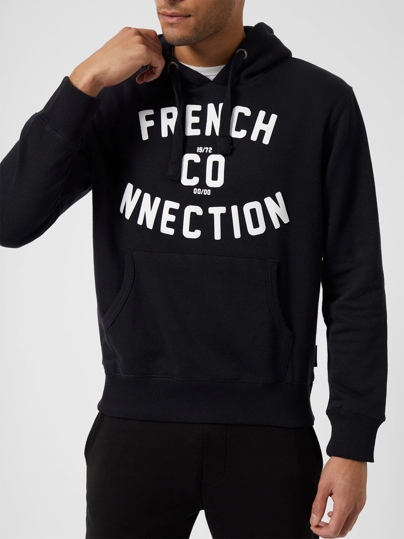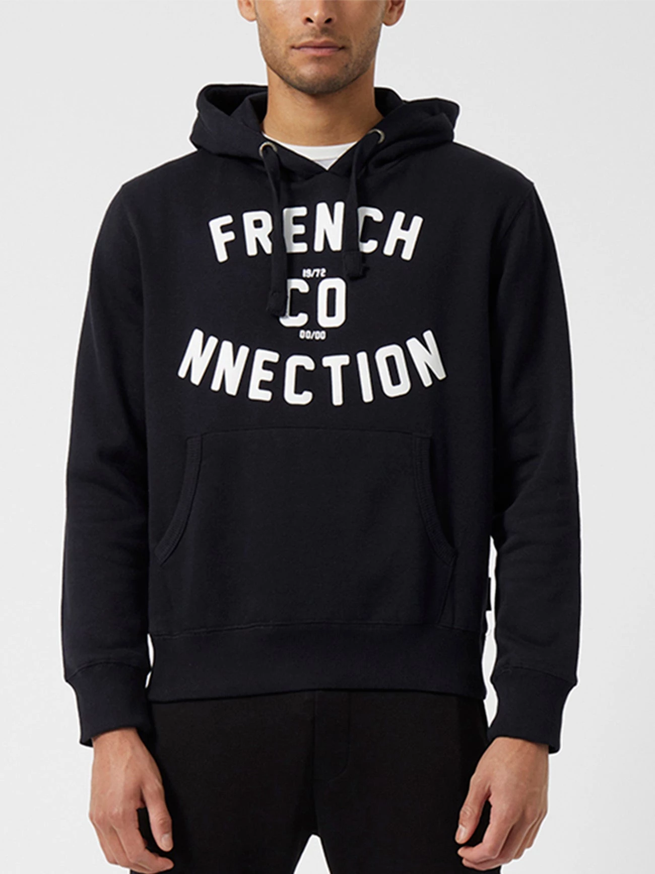 The Overhead Varsity Logo Drawstring Hoodie celebrates the brand’s heritage whilst catering to your chill-out needs. A hooded drawstring neck and front kangaroo pocket make for a practical pairing, whilst the French Connection logo adds a retro varsity element to this mid-weight loungewear piece.