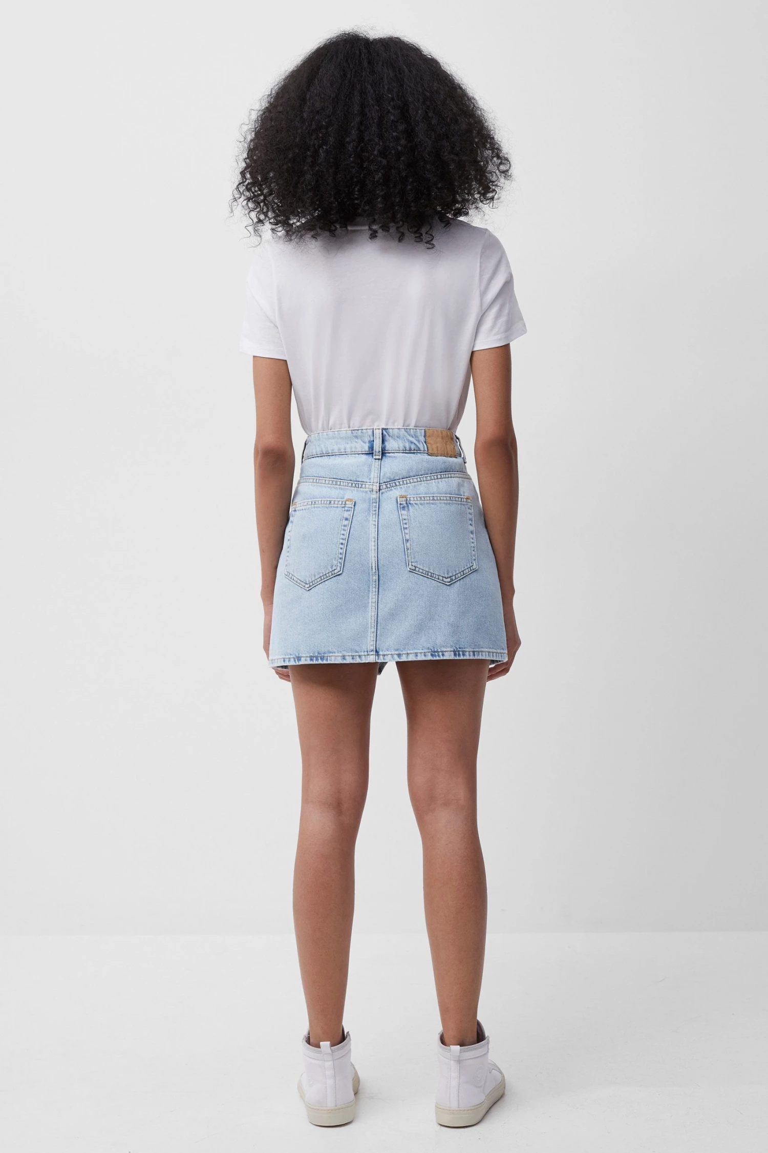 The Poppie Denim Skirt is created with a blend of cotton and organic cotton, which has been certified by the Global Organic Textile Standard, removing the use of chemicals from the cotton production process.