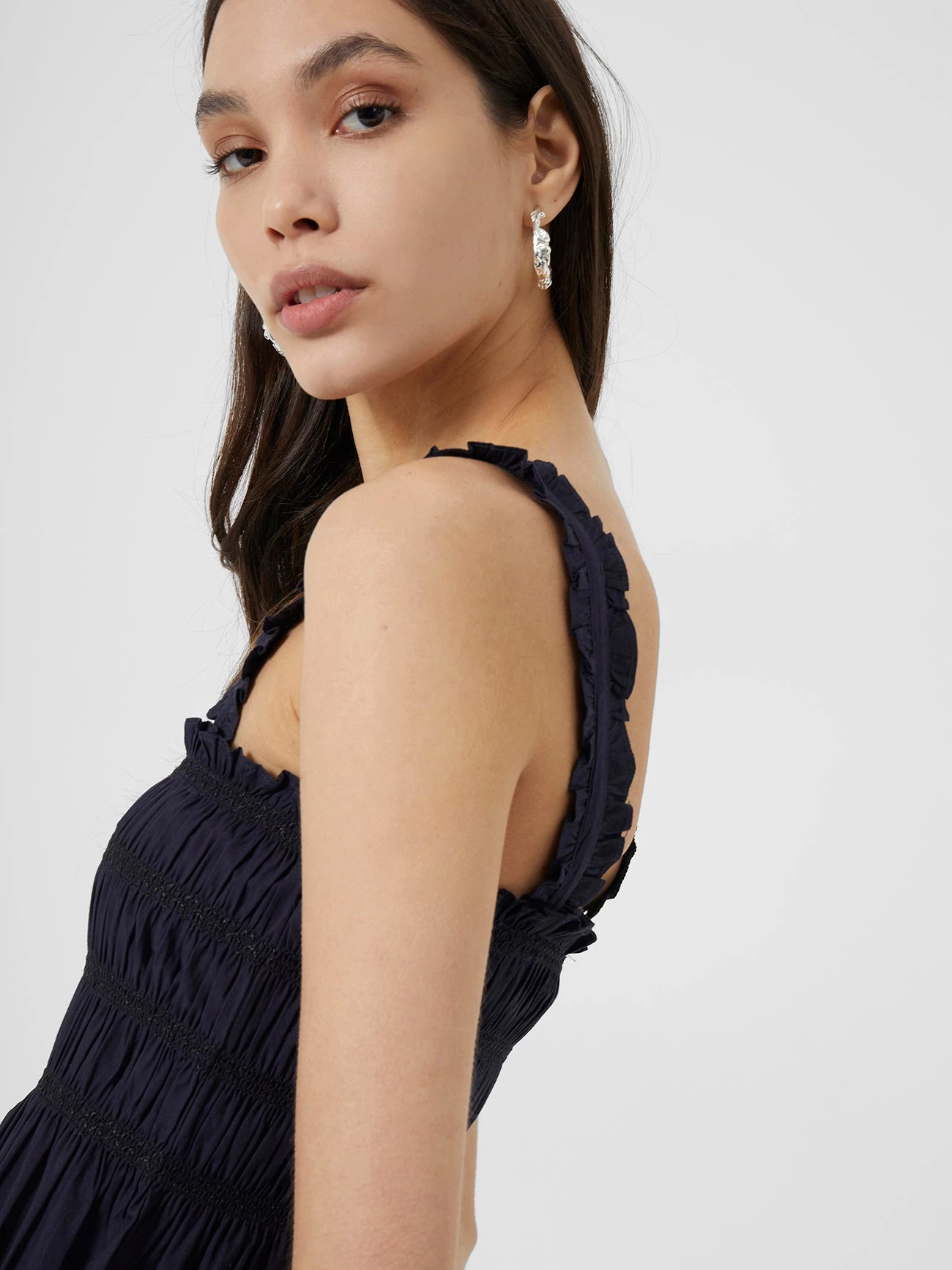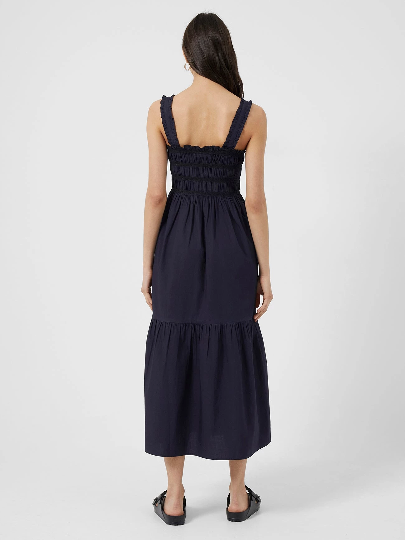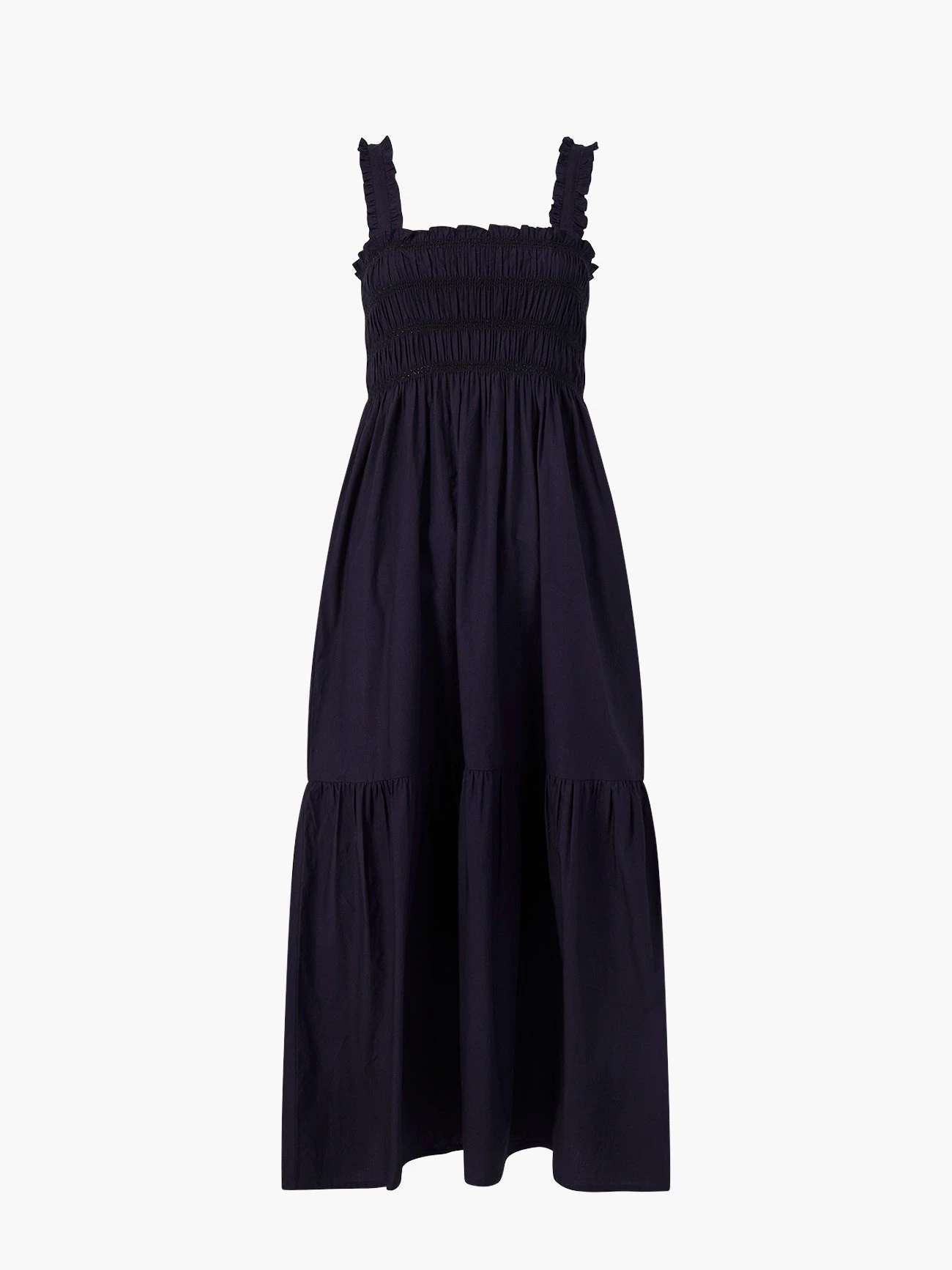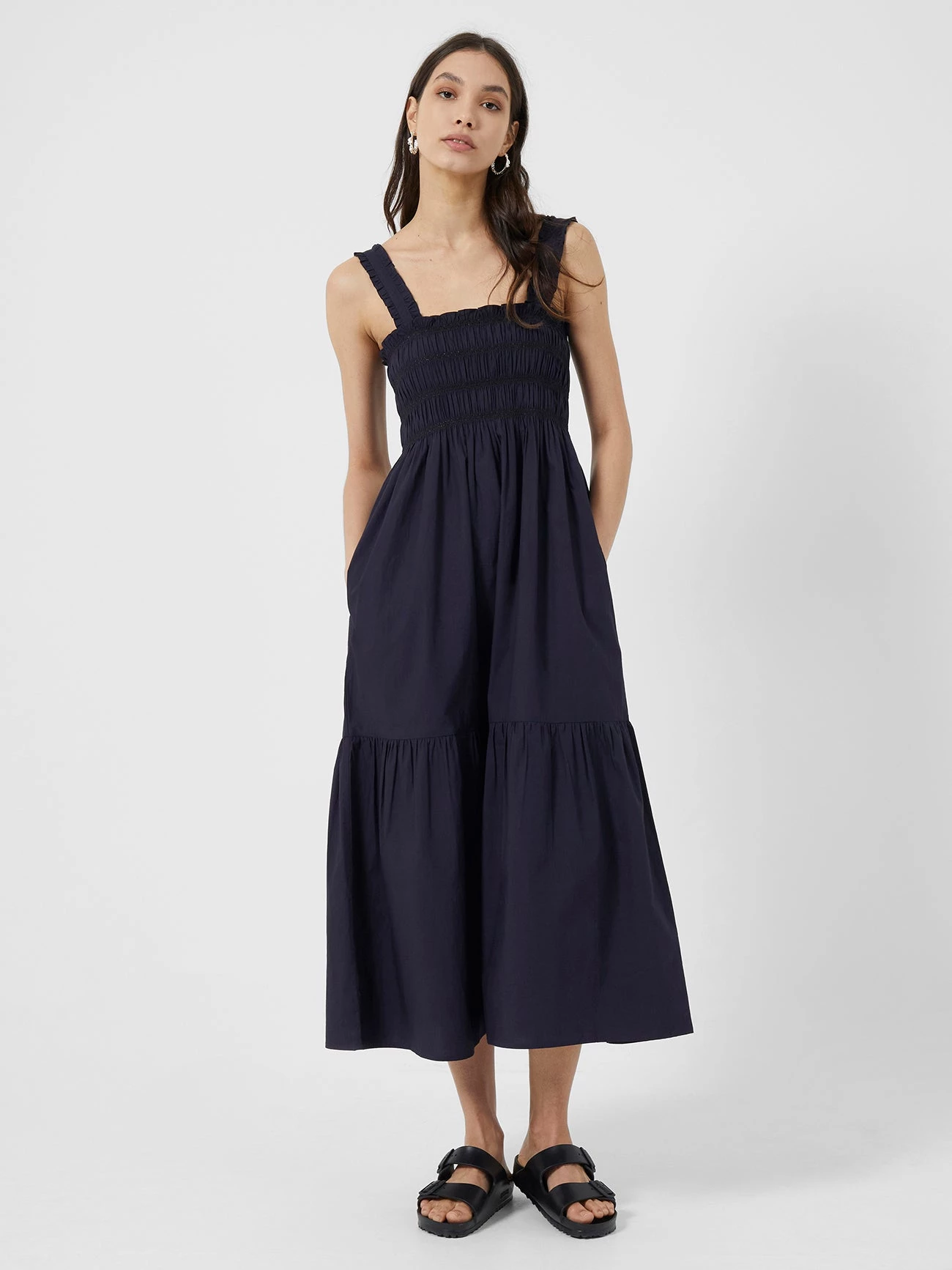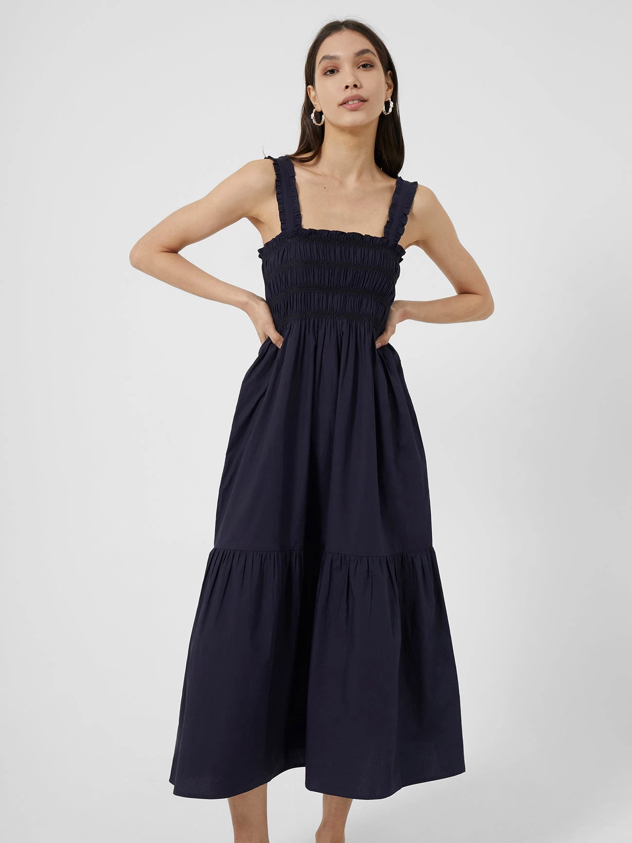 Soak up the summer sun in the Rhodes Solid Midi Sun Dress. In 100% cotton, this lightweight style features a flattering smock bodice with square neckline, complemented by frilled trim straps, a tiered skirt and 2 pockets.