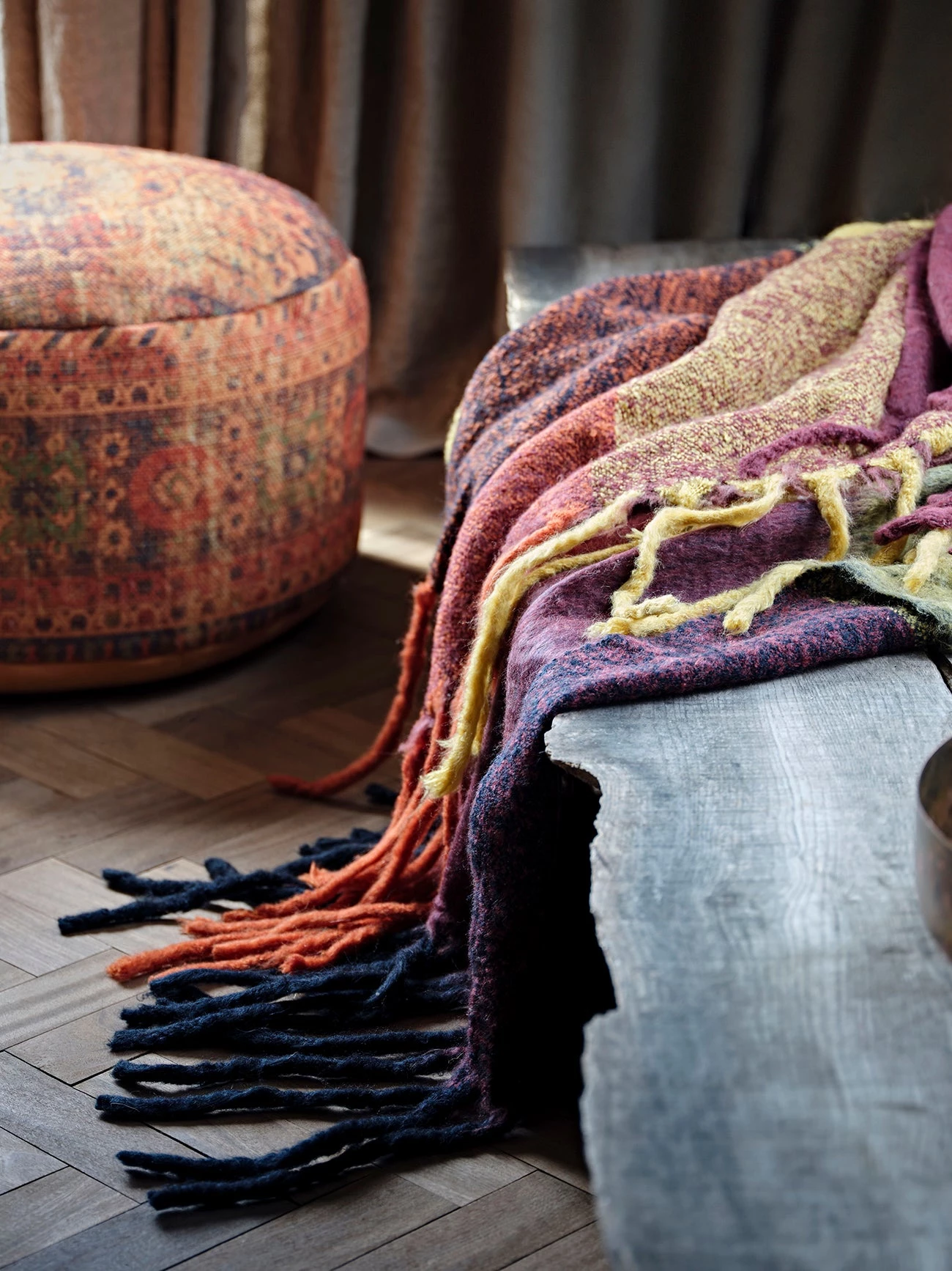 Create a warm and inviting space with the Spiced Ginger Pouffe. Autumnal hues of burnt orange and spiced ginger combine beautifully with a purposefully faded vintage inspired pattern.