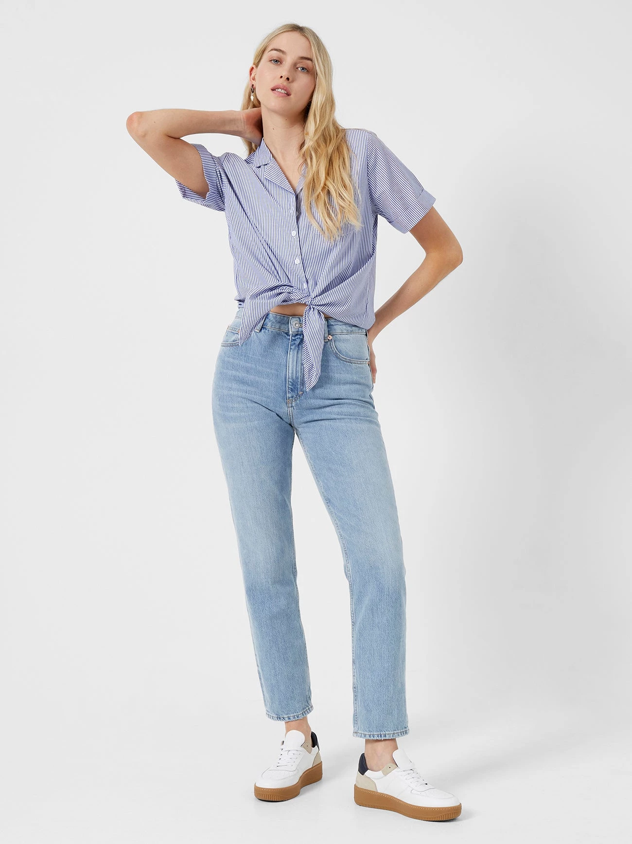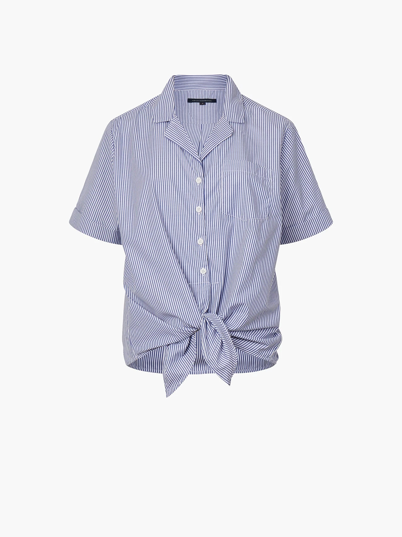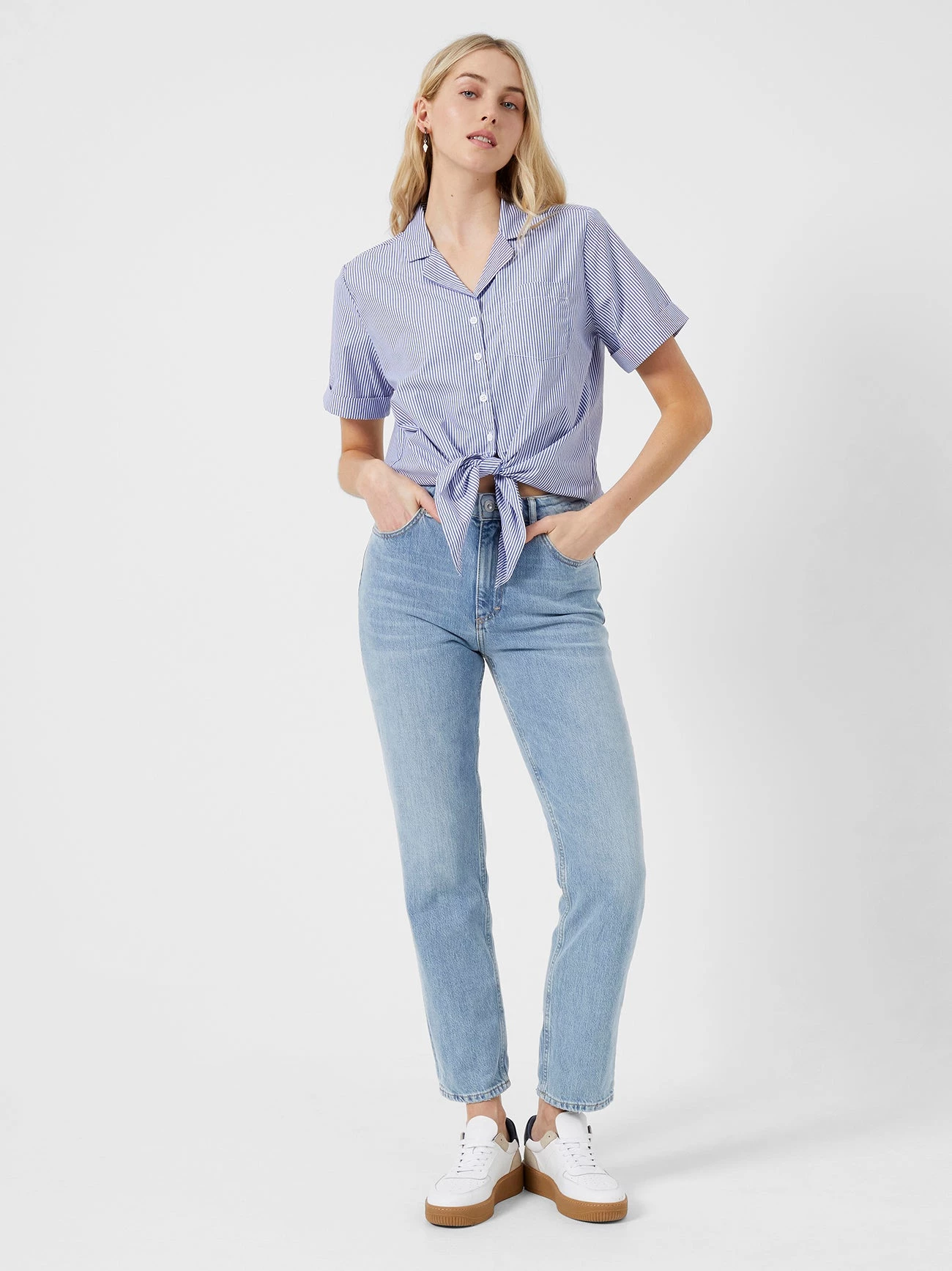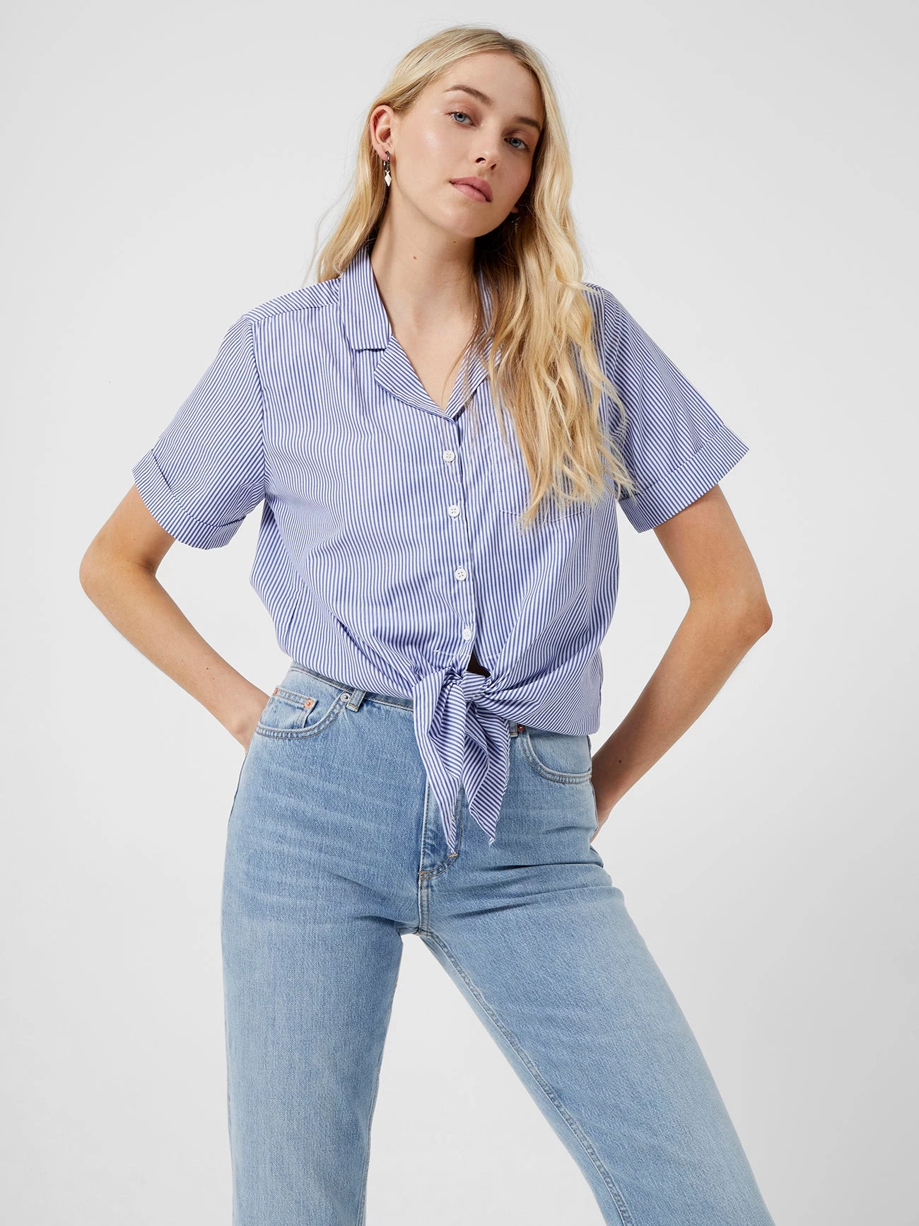 Tie the knot with our Tatus Stripe Tie Front Shirt. Featuring a relaxed fit, open collar and button front, it’s designed with a cropped length.