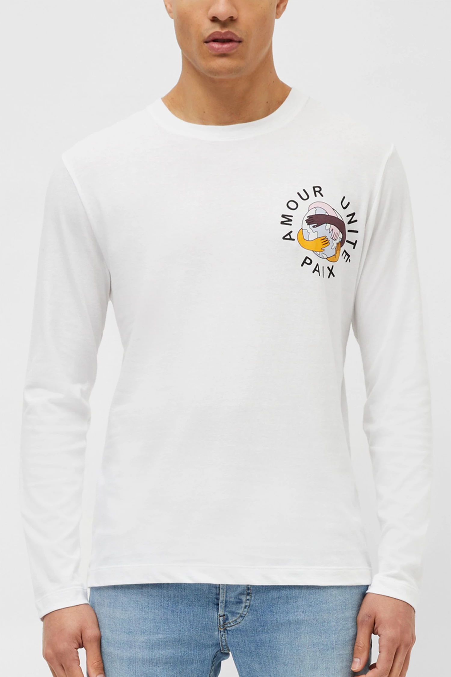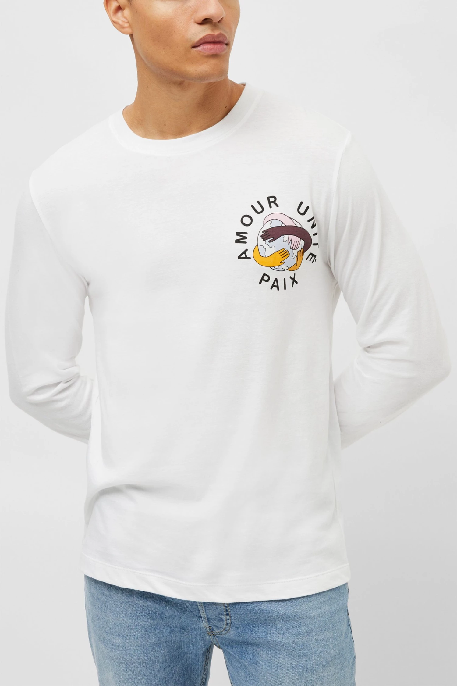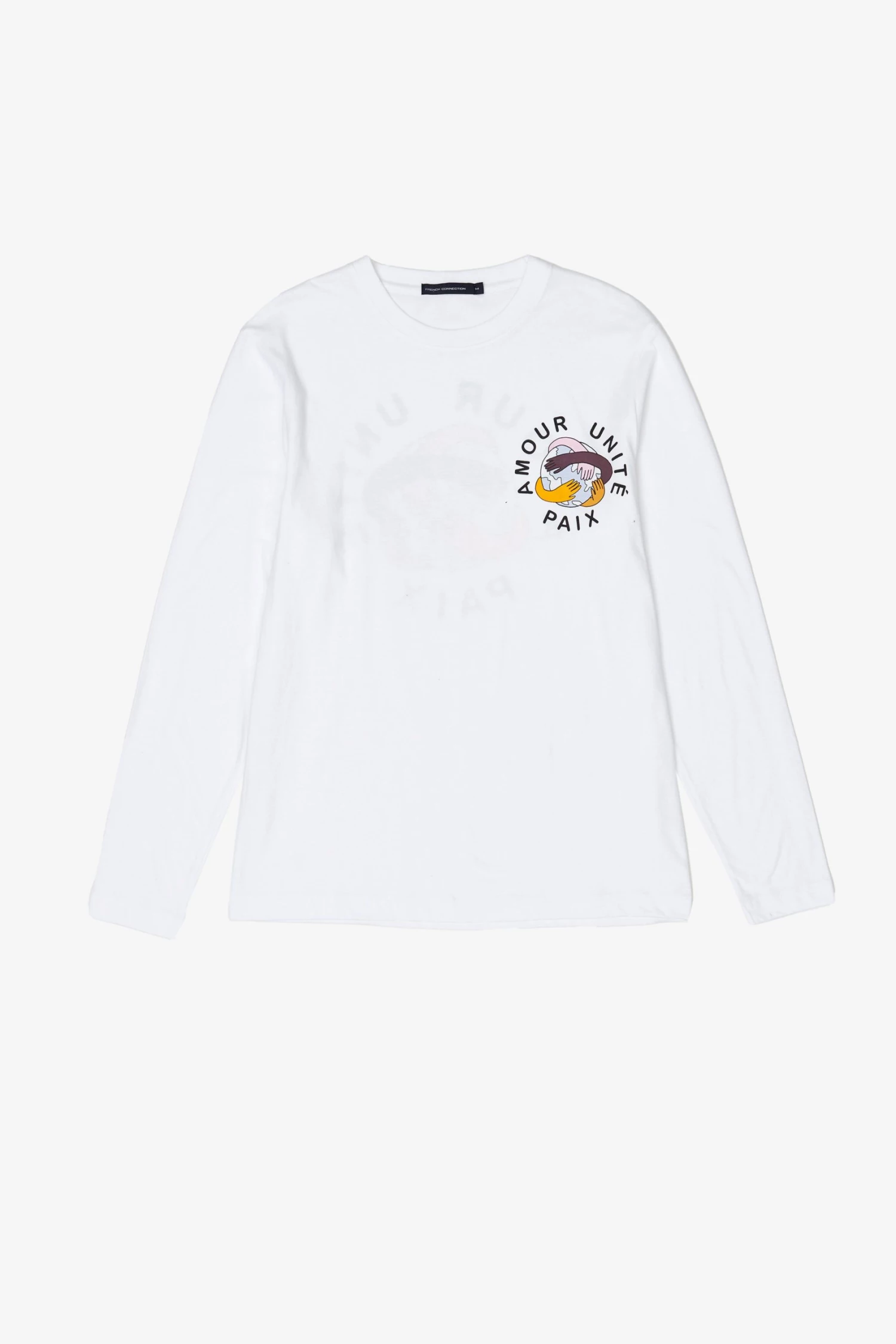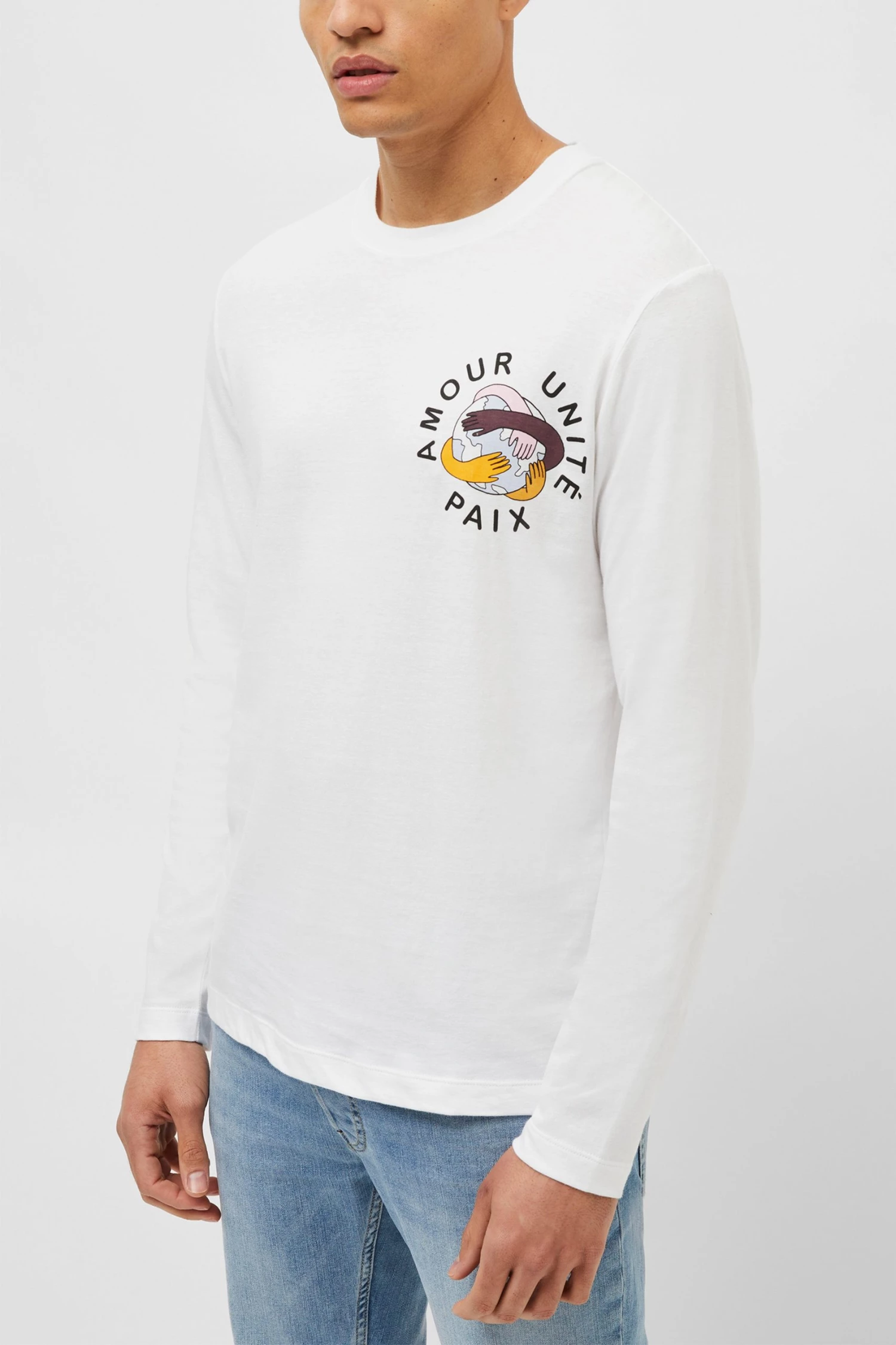 One for your graphic tee collection, the Unite T-Shirt has long sleeves, round neckline and a graphic print signifying unity all around the world.