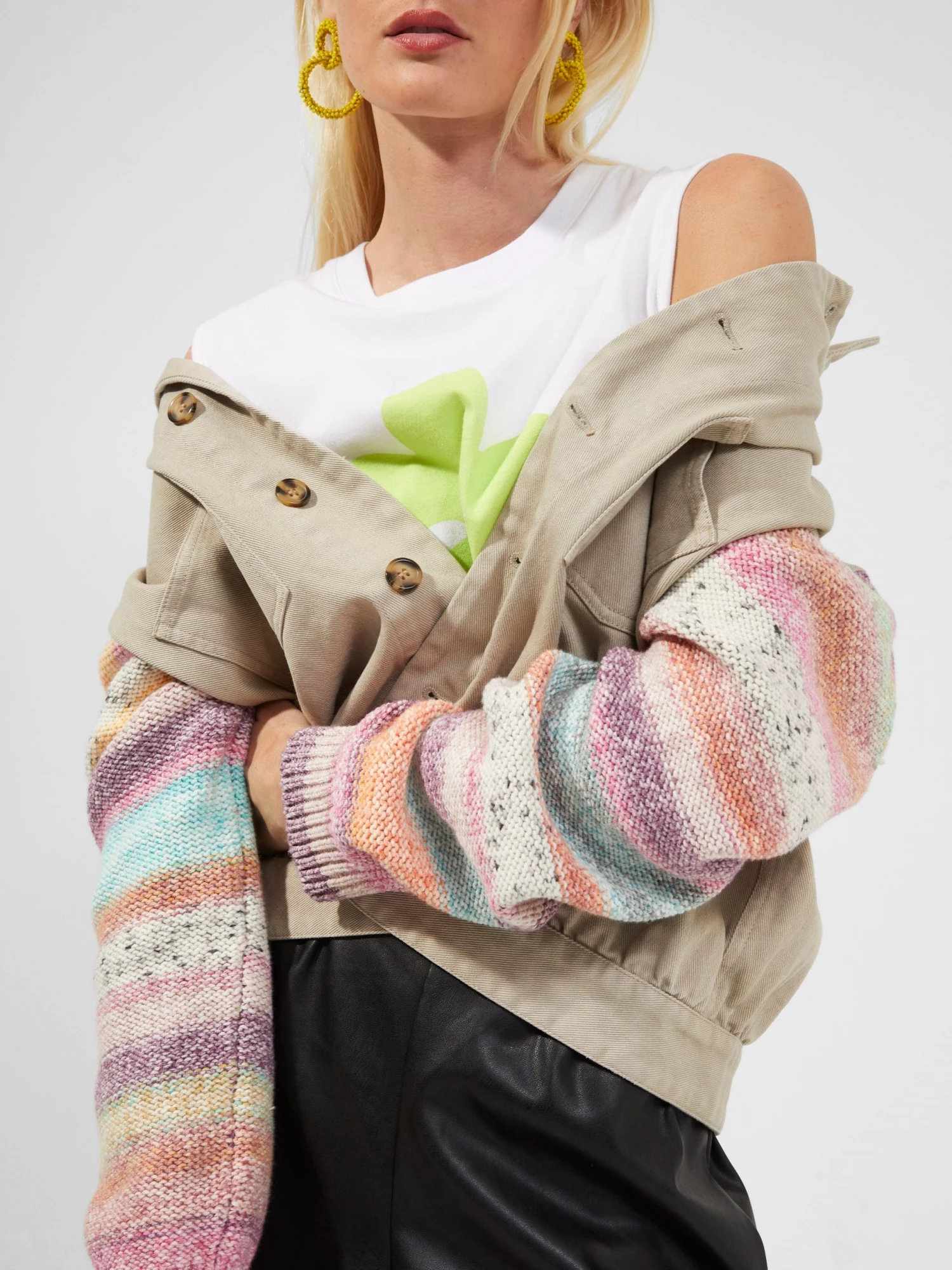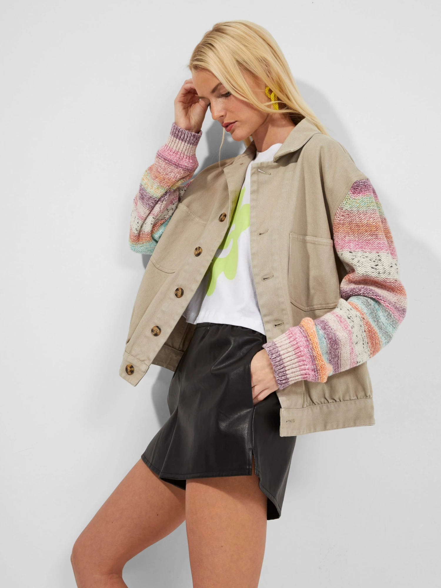 Get ready for those in-between days with the Yinta Hybrid Jacket. Its colourful knit sleeves are counterbalanced with a cotton canvas body for keeping you comfortable on the go.