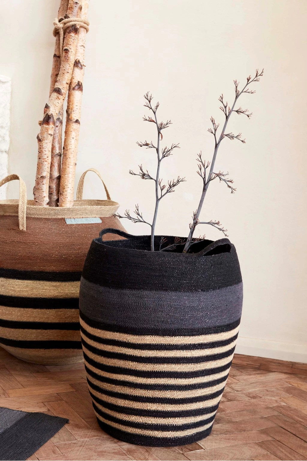 The type of storage solution your home needs, the Seagrass Striped Laundry Basket is defined by its organic round shape and muted tones. Crafted purely from natural materials to bring a bohemian touch to your bedroom, it has rear handles for easy carrying.