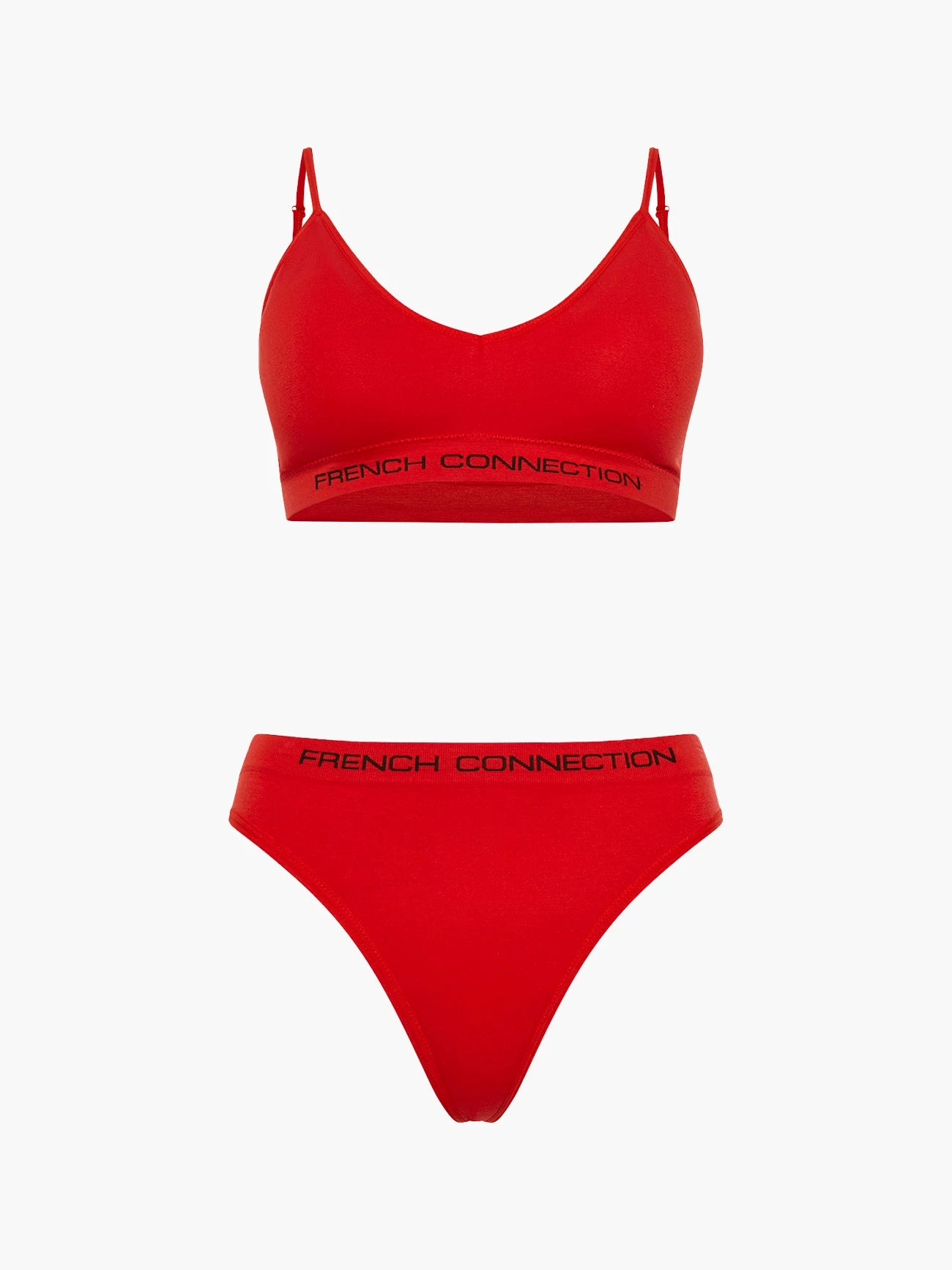 Be comfy but alluring in our Seamless Low Crop Top and Thong Set. It has adjustable shoulder straps, soft construction and a contrasting French Connection logo.