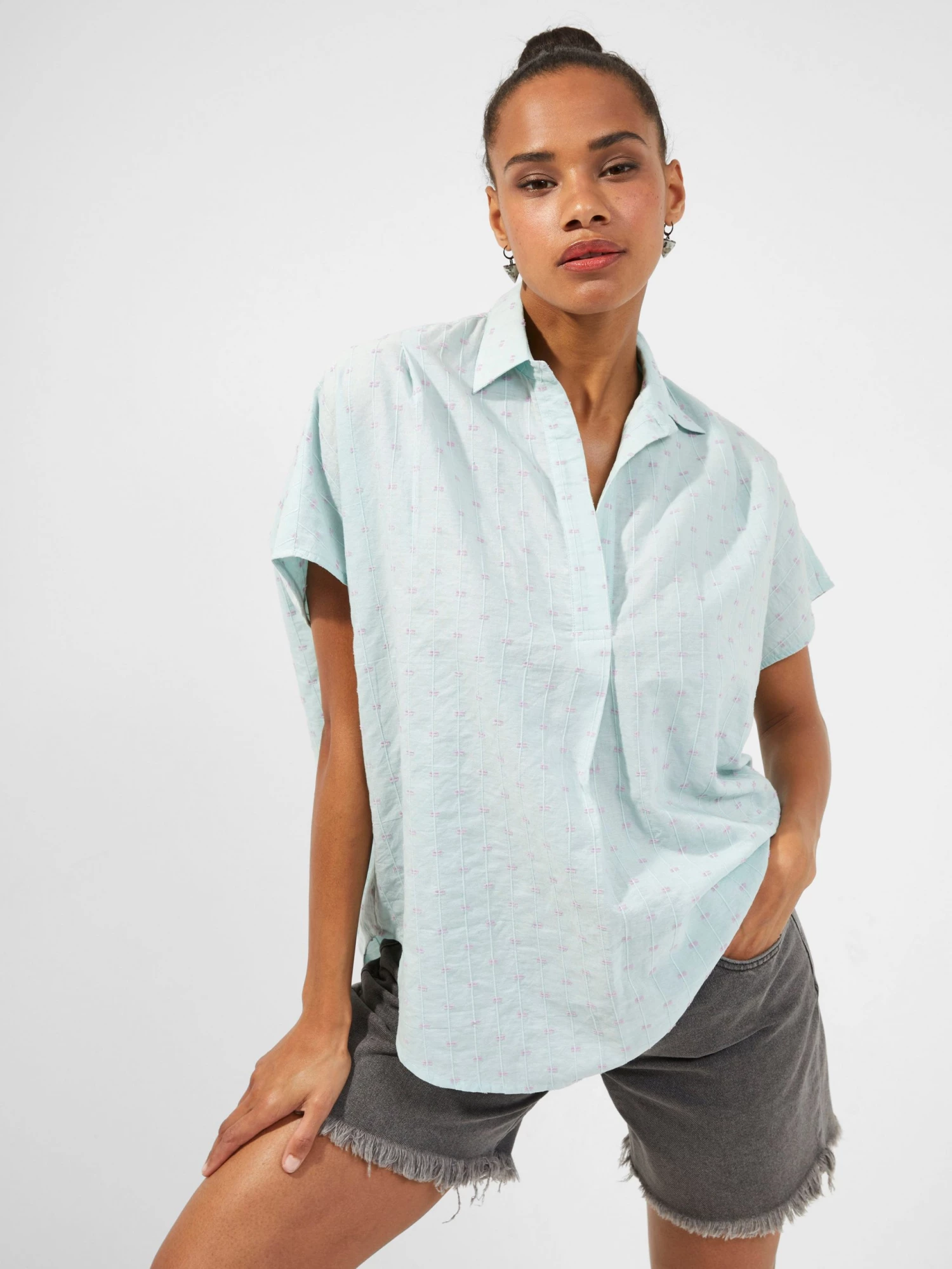 There’s some newness on the block, and it’s the Bea Dobbie Rhodes Shirt. With an embroidered texture, it has an open placket and relaxed fit.