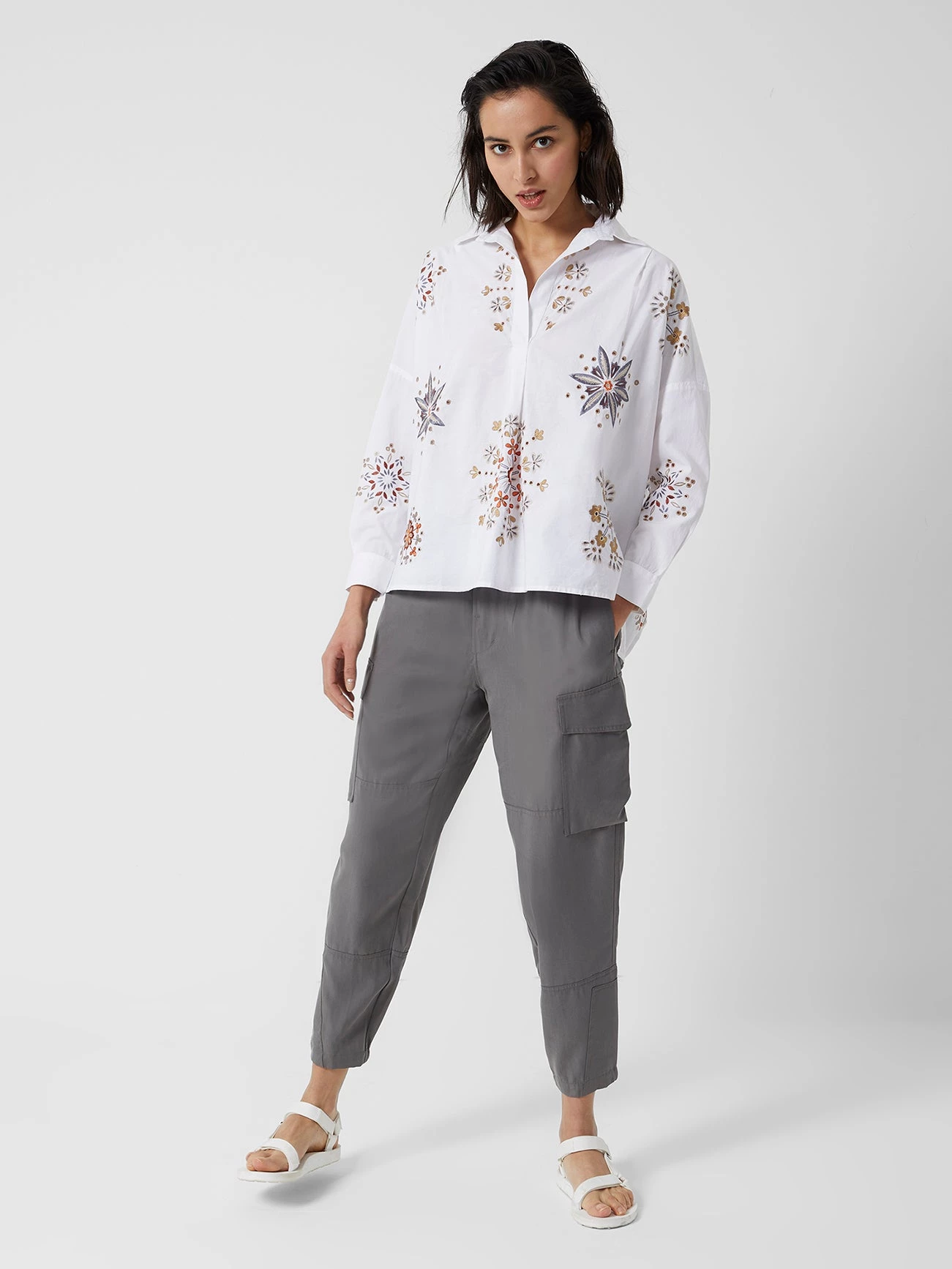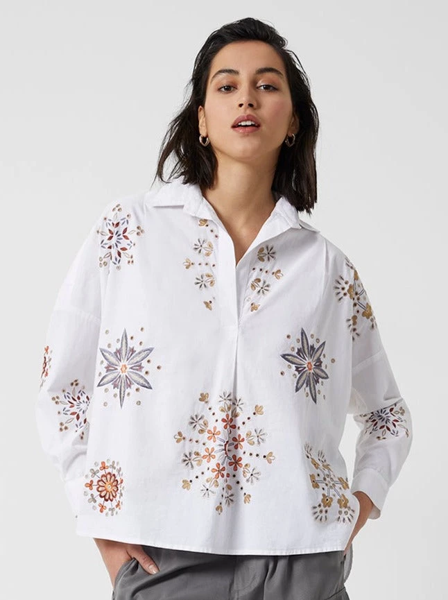 For bohemian charm in just the right doses, reach for the Ezan Embroidered Organic Rhodes Shirt. Crisp cotton profile marries folk-inspired flowers for instant charm.