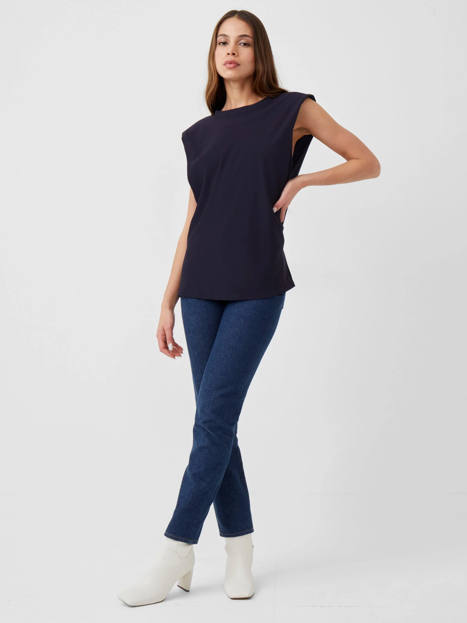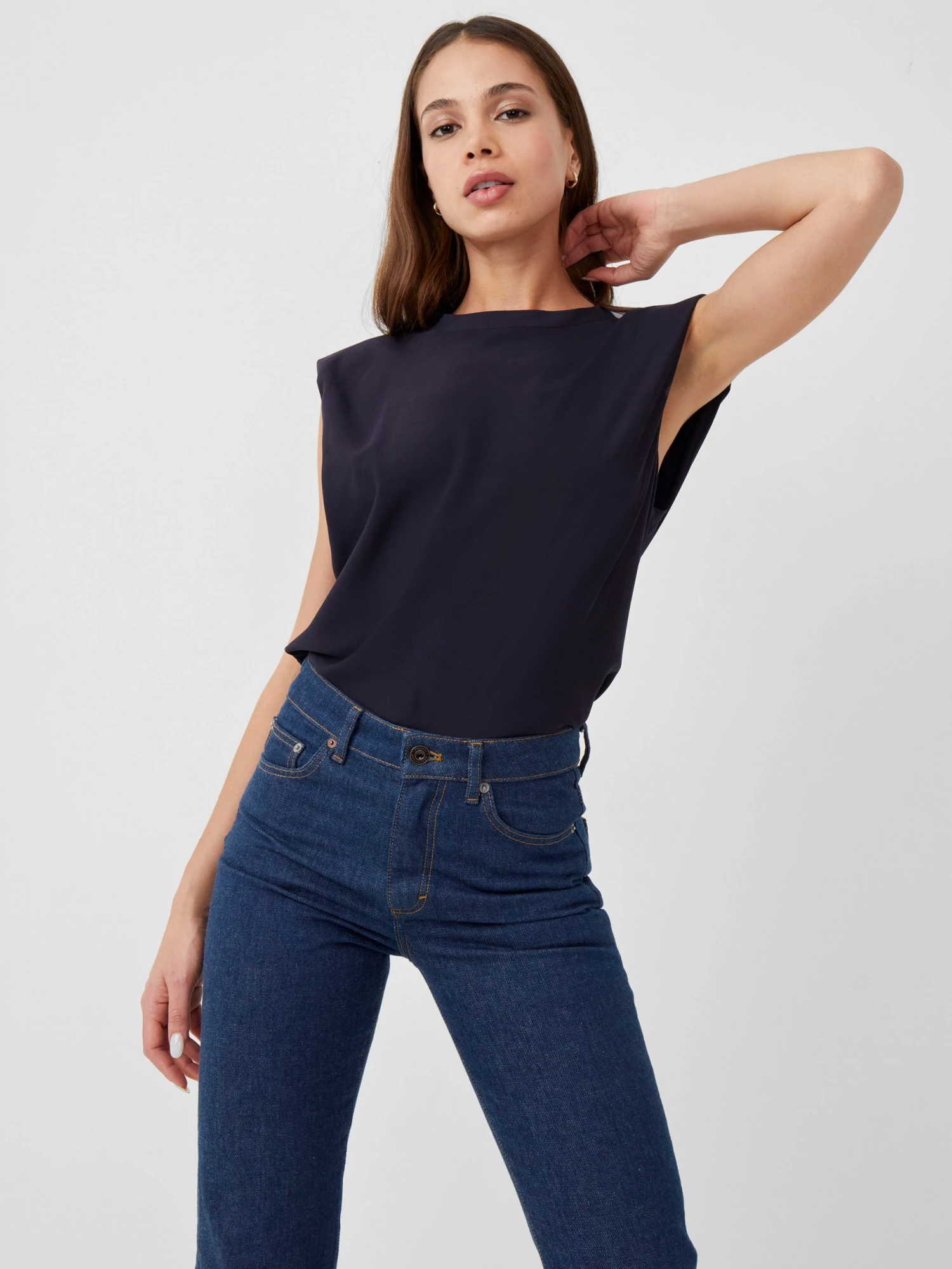 The Shoulder Pad Crepe Tank Top is set to become a foundational staple within your modern edit. Characterised by padded shoulders and relaxed cut.