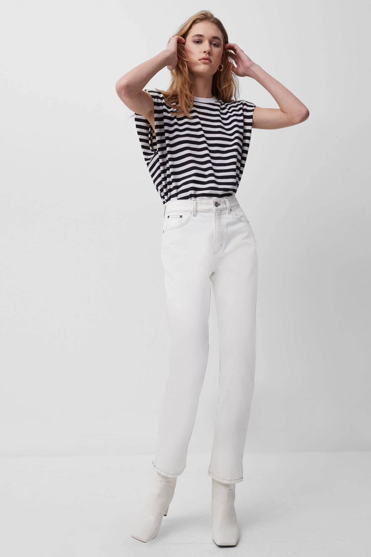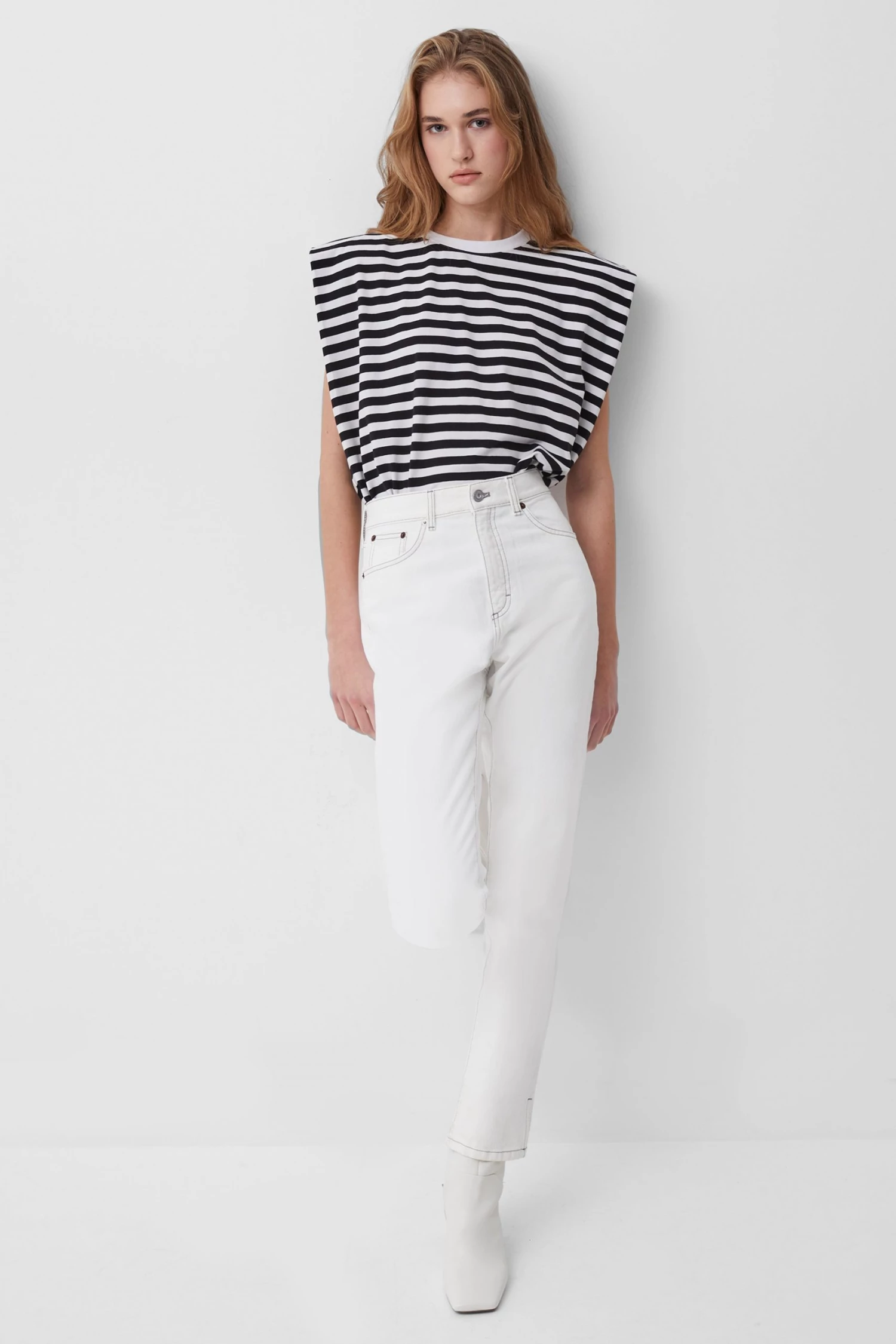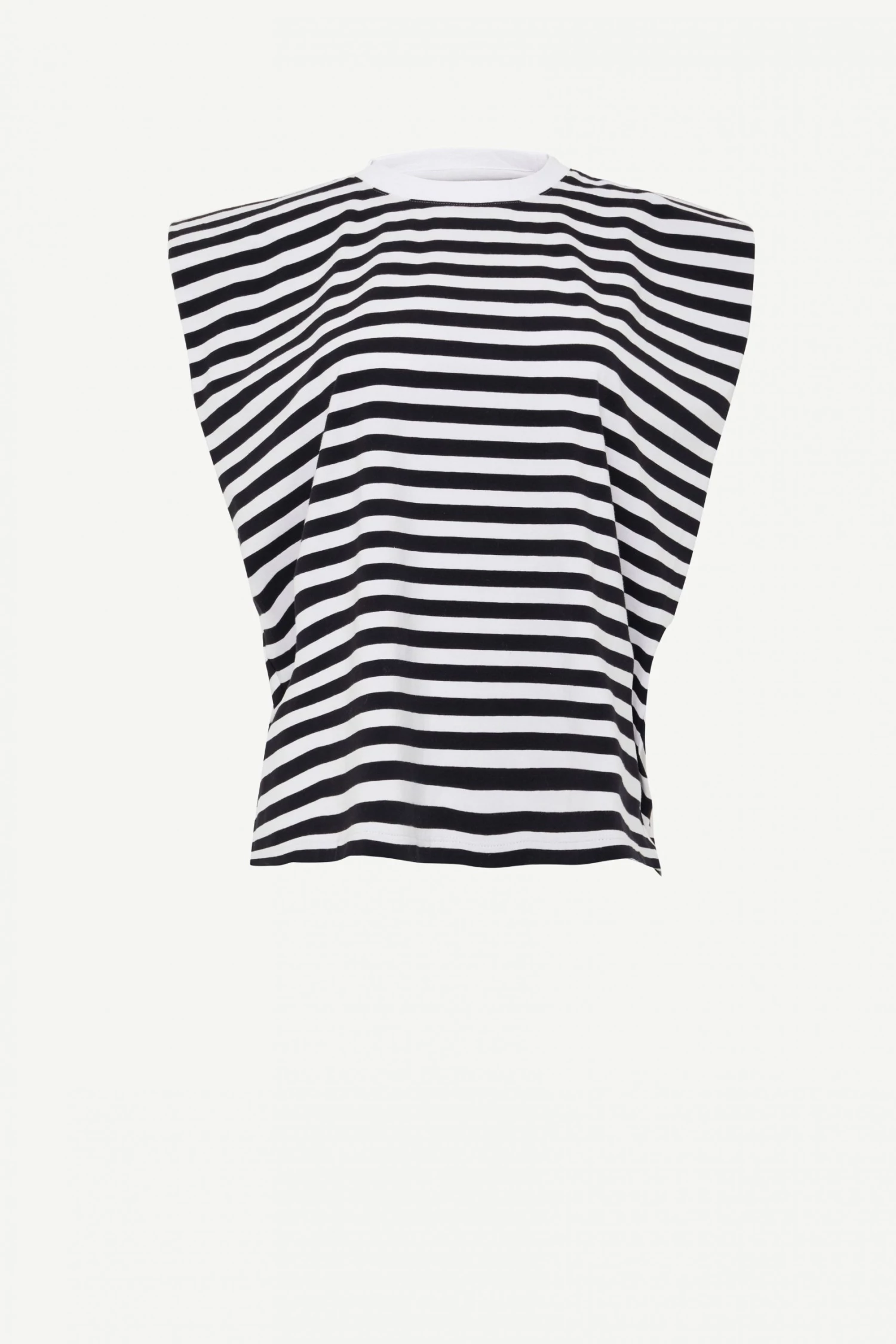 Classic nautical style meets a vintage aesthetic in the Shoulder Pad Stripe Tank Top. Created with a simple round neckline and scene-stealing shoulder pads.