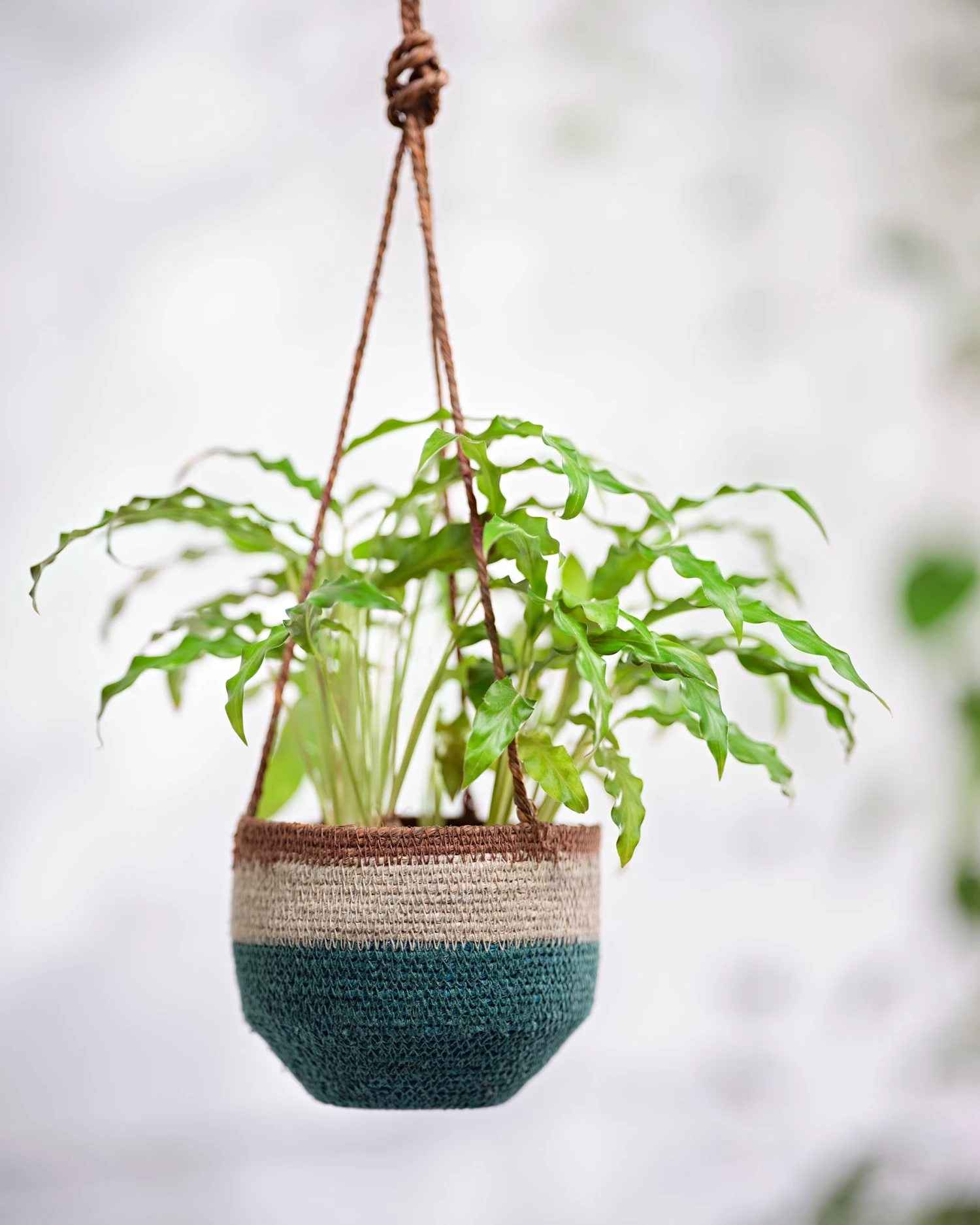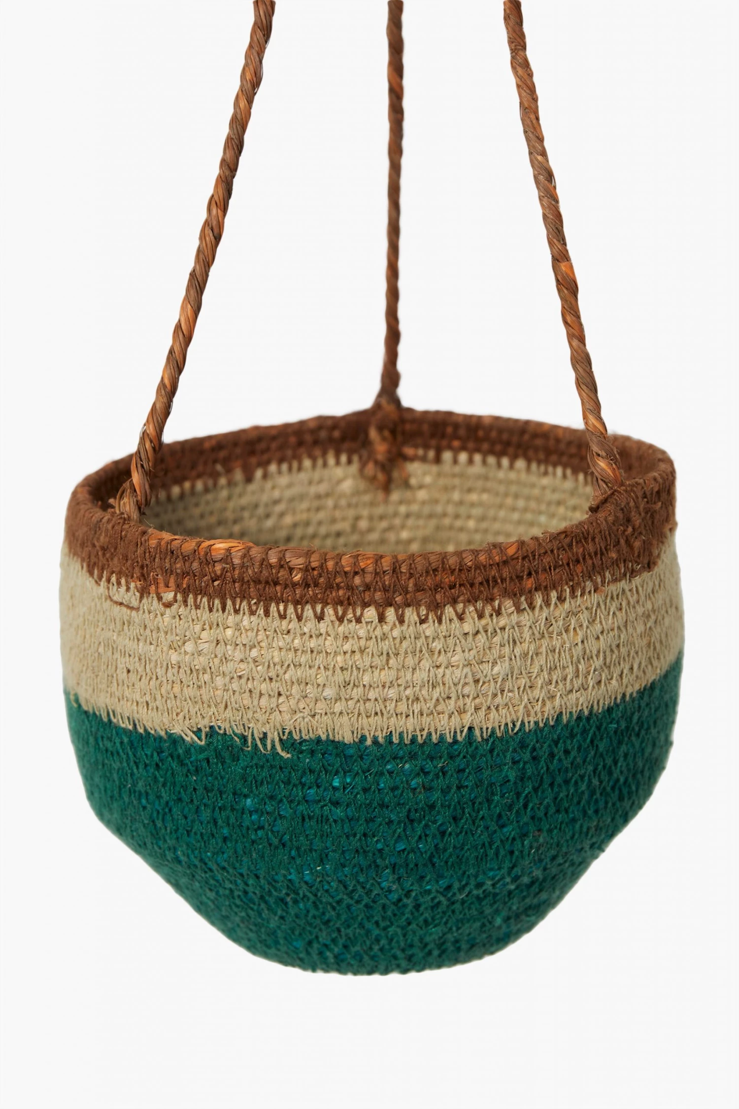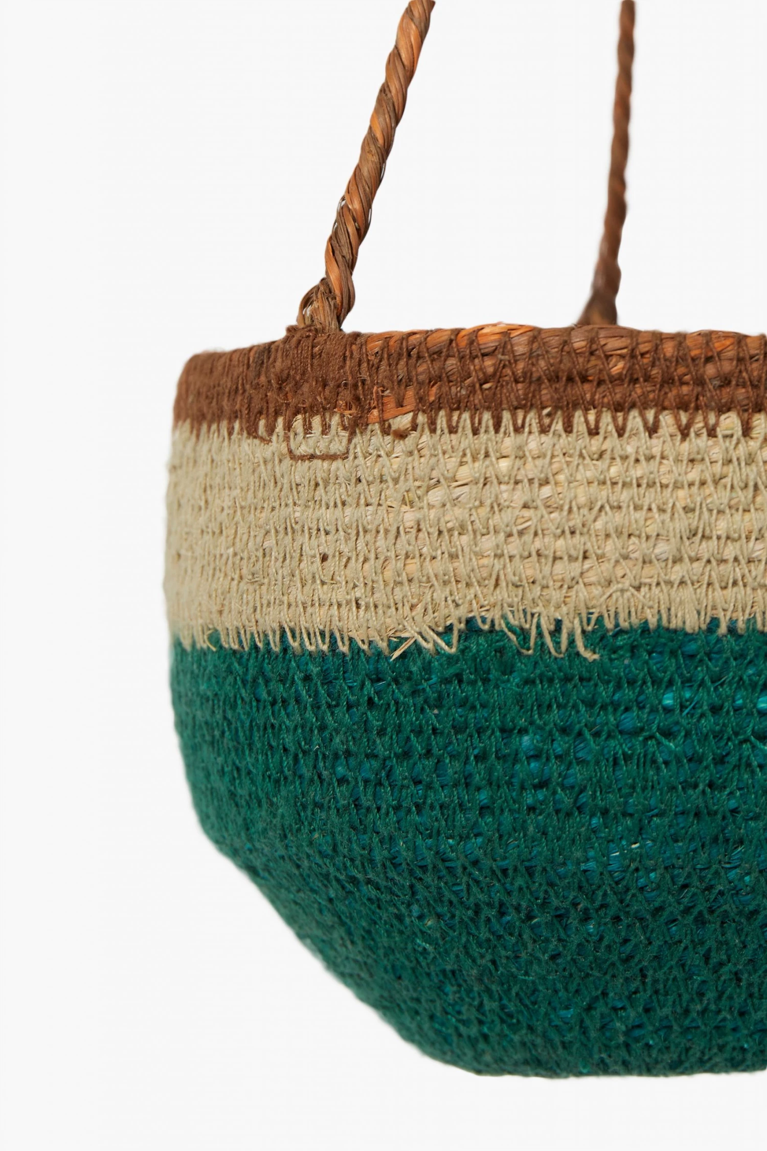Dainty yet durable, the Small Green Hanging Basket is an ideal storage solution for your growing plants. This petite planter is formed of intricately woven seagrass in subtle stripes of brown, nude and green.