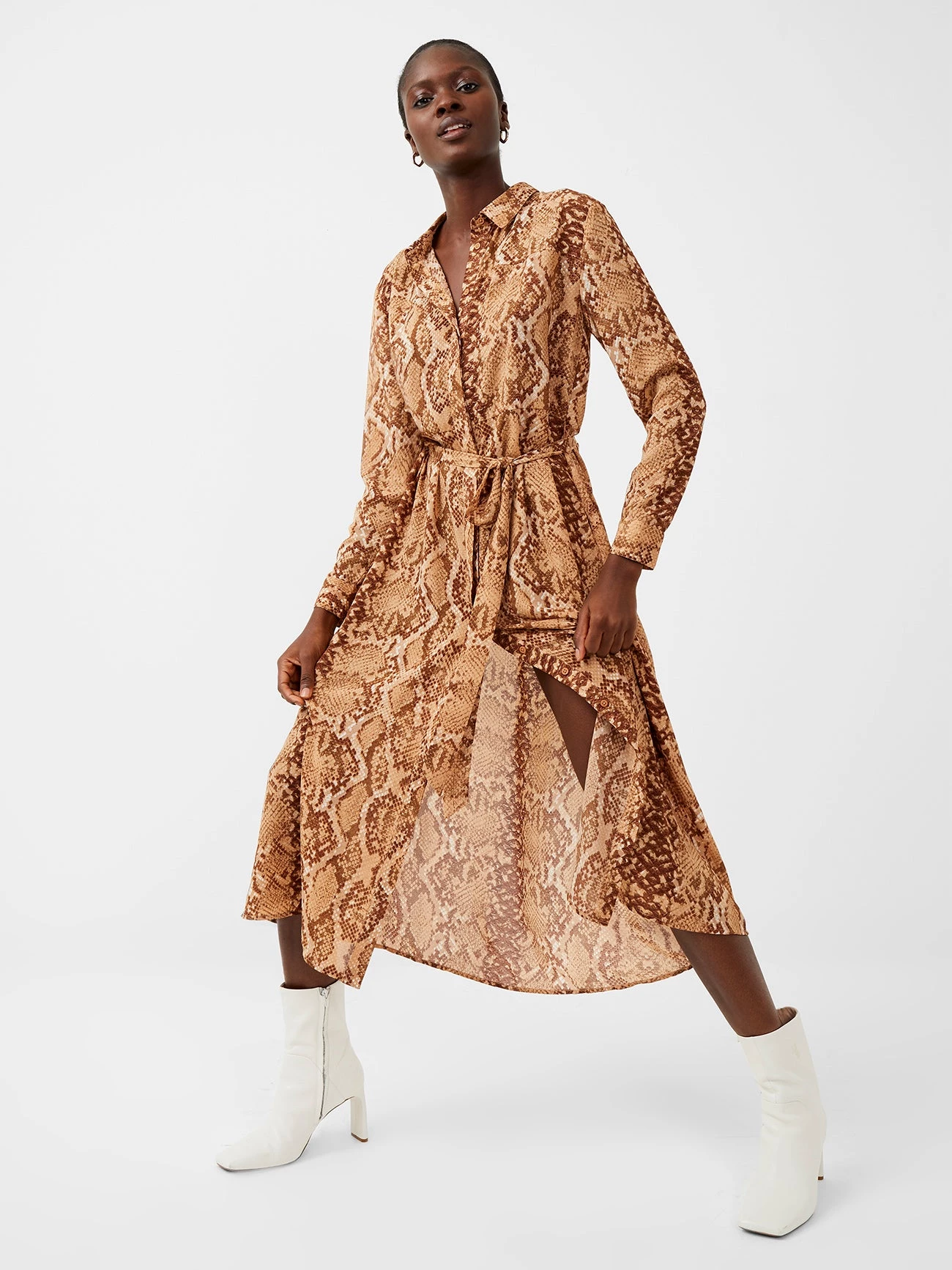 Go from work to drinks in the Eso Snake Midi Shirt Dress. The free-flowing style has a front split and classic shirt features for a dose of sophistication.