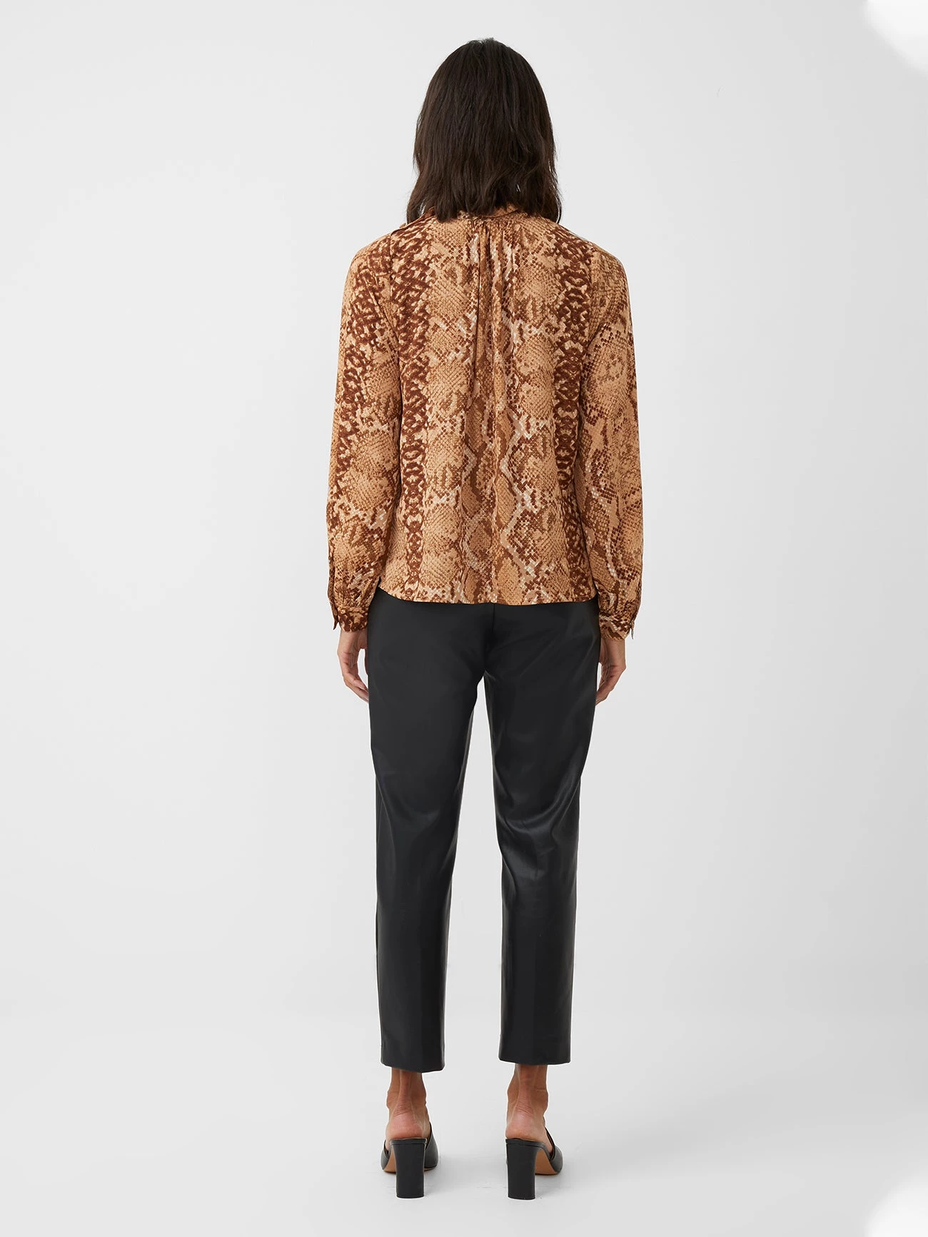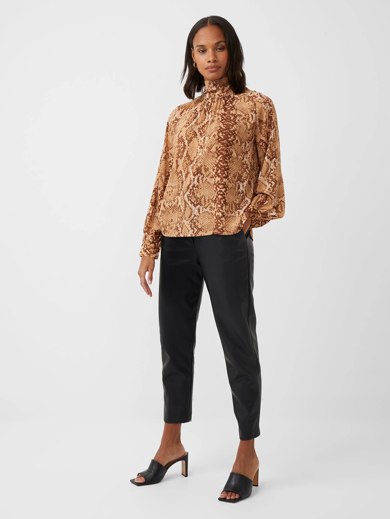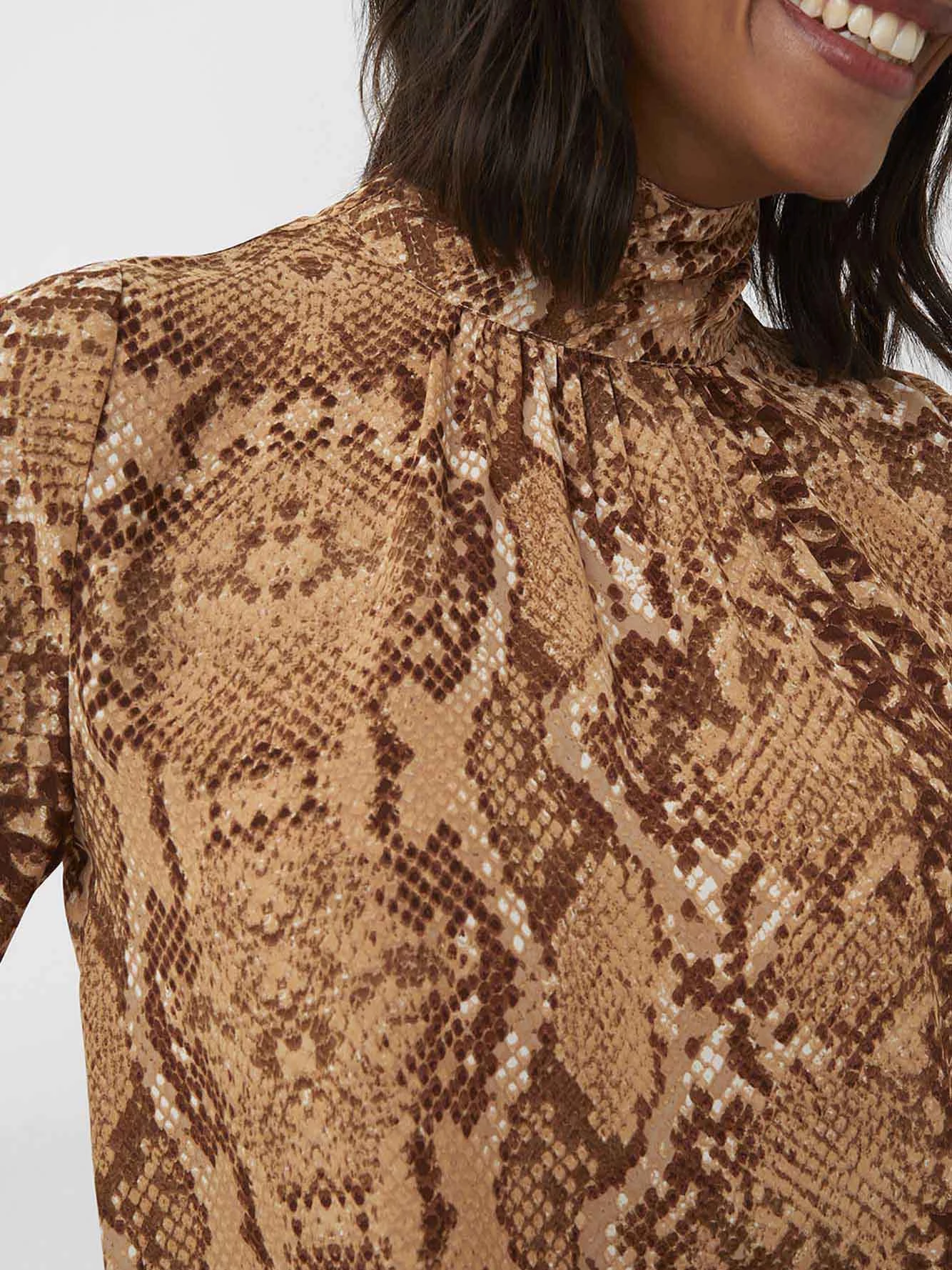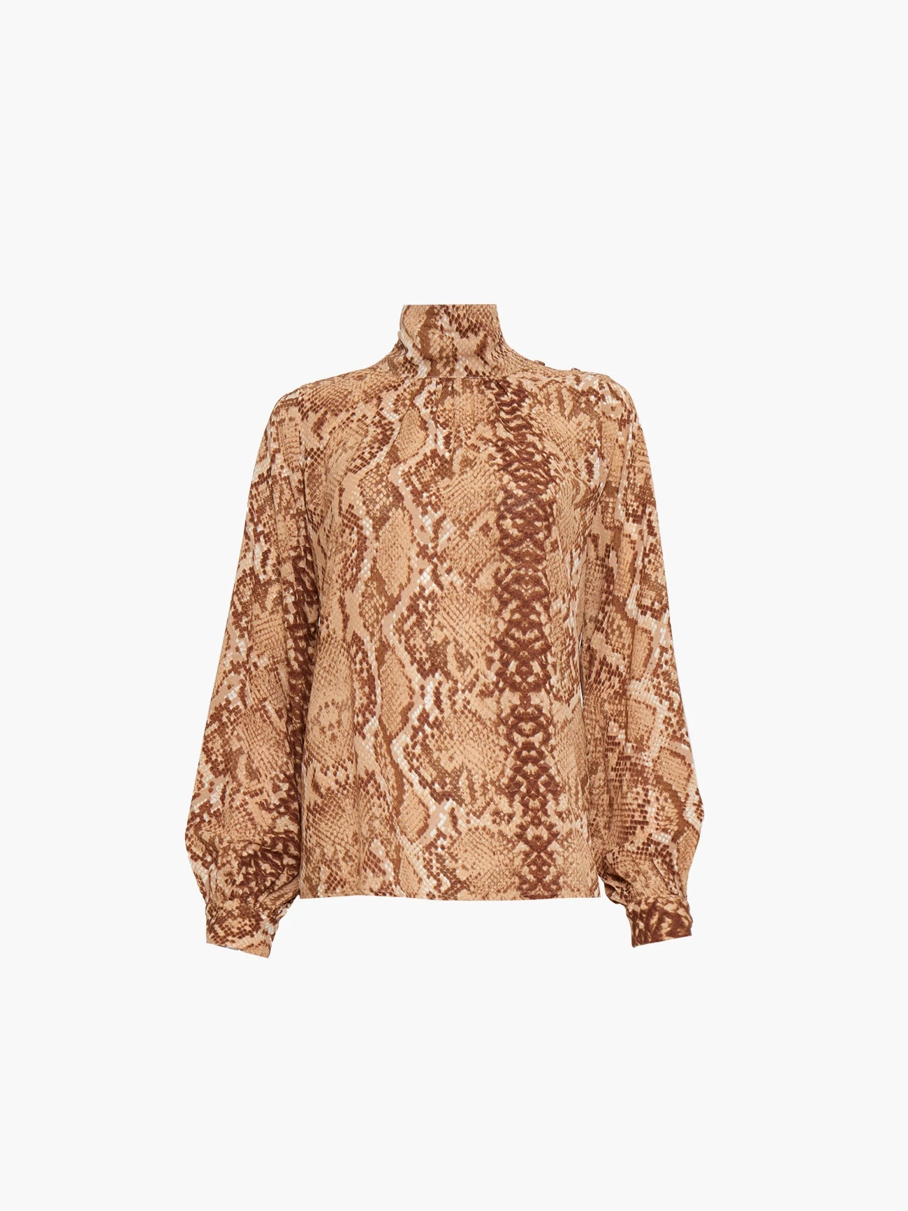 Give into the timeless snake pattern with our Eso Snake Mock Neck Top. Draping across the body, it has a high neckline and free-flowing design.