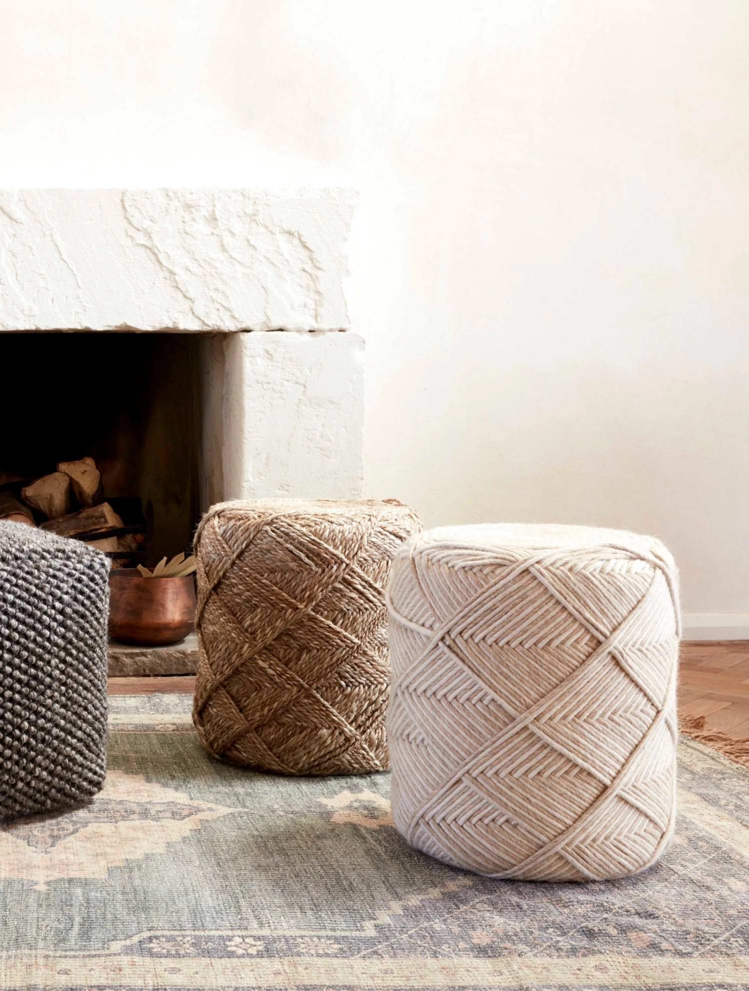 The Soft Woven Stool is a compact home accessory that can be used in a variety of ways. The striking design is woven from wool-blend strings to a naturally shaggy silhouette, perfect for complementing bohemian spaces and equally neutral-hued interiors.