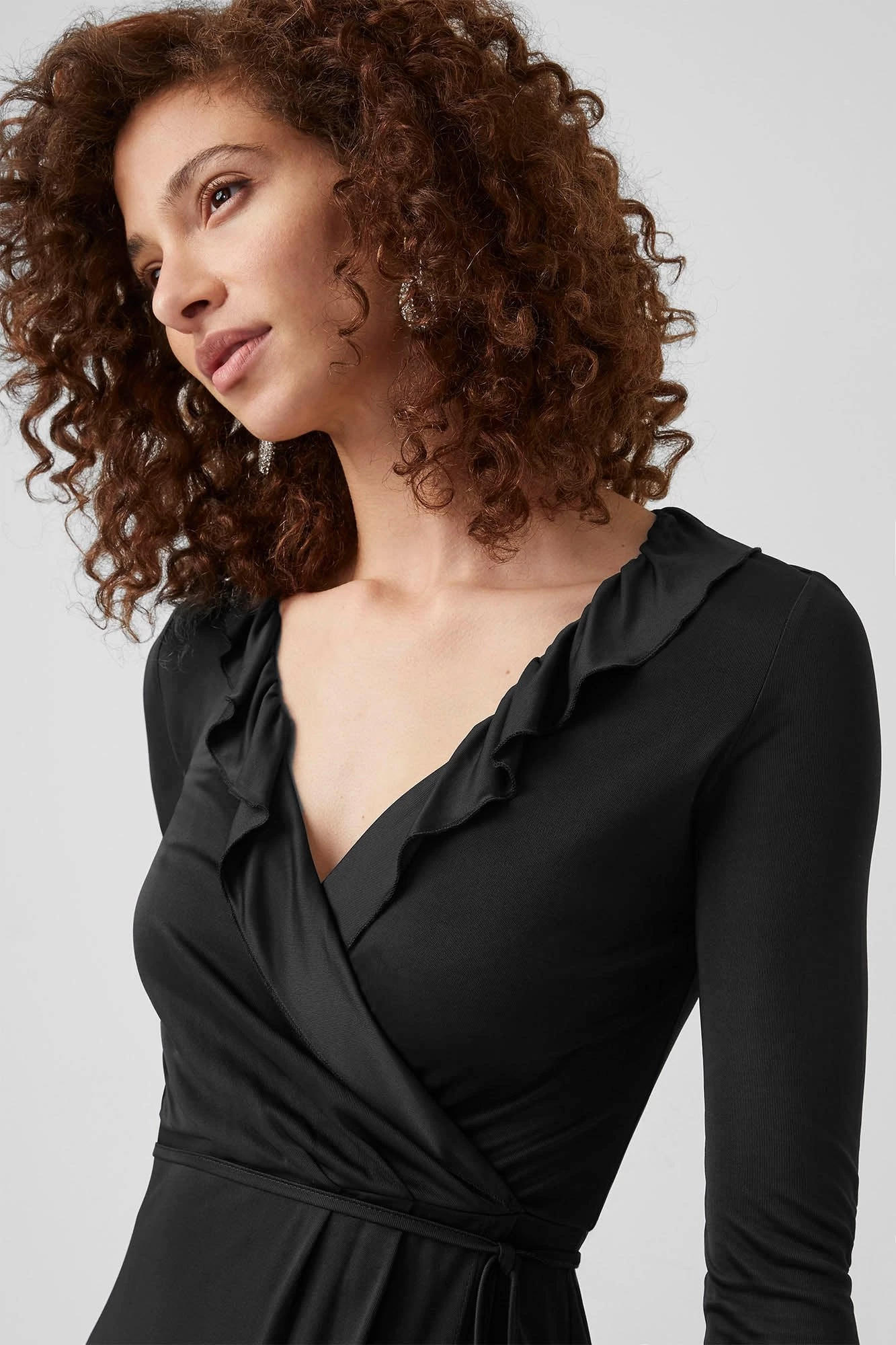 Let frills take over your wardrobe with the Sonike Bamboo Jersey Wrap Dress. Featuring a wrap silhouette with drawstring fastening, frilled trims and V-neckline.