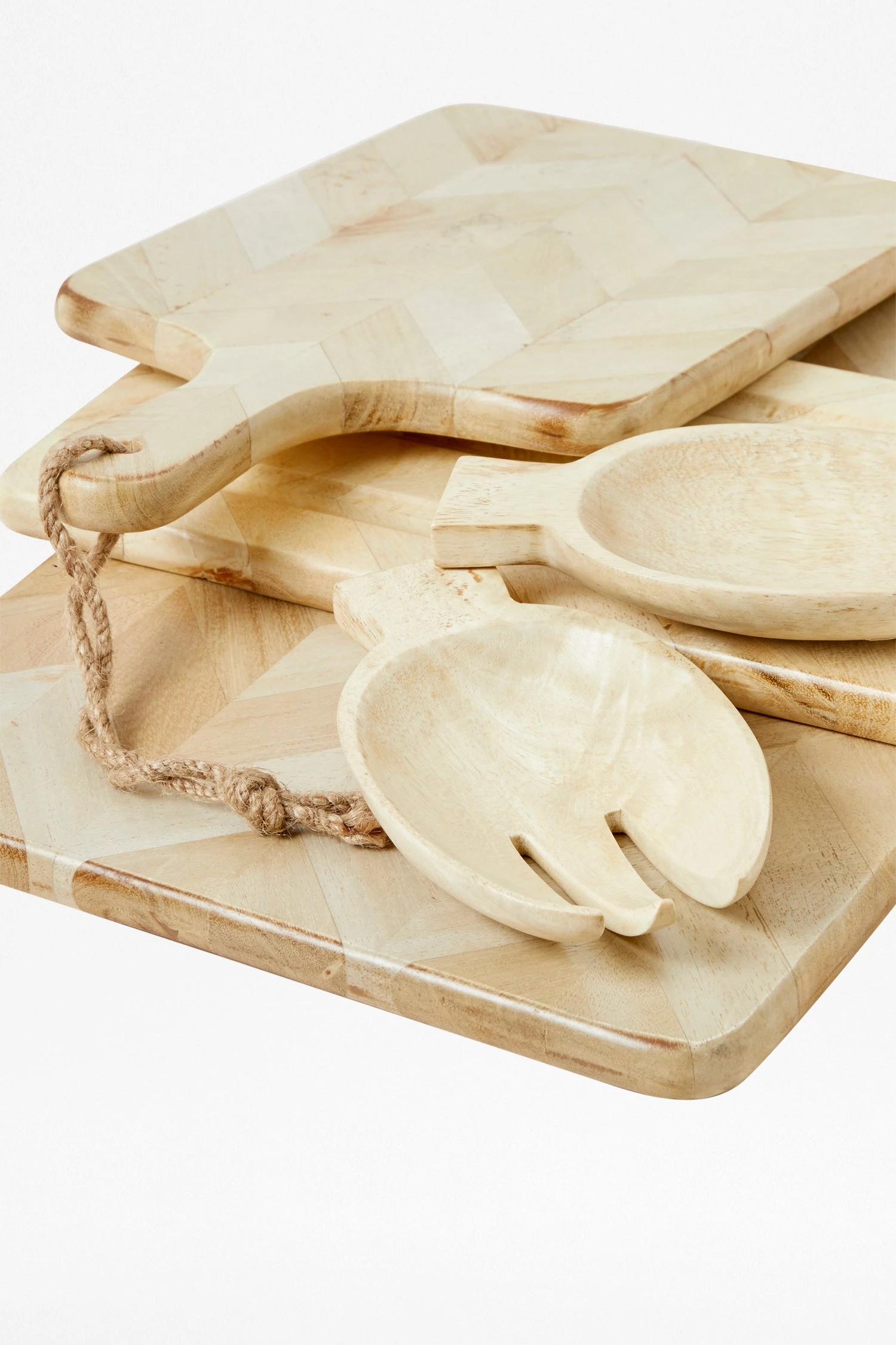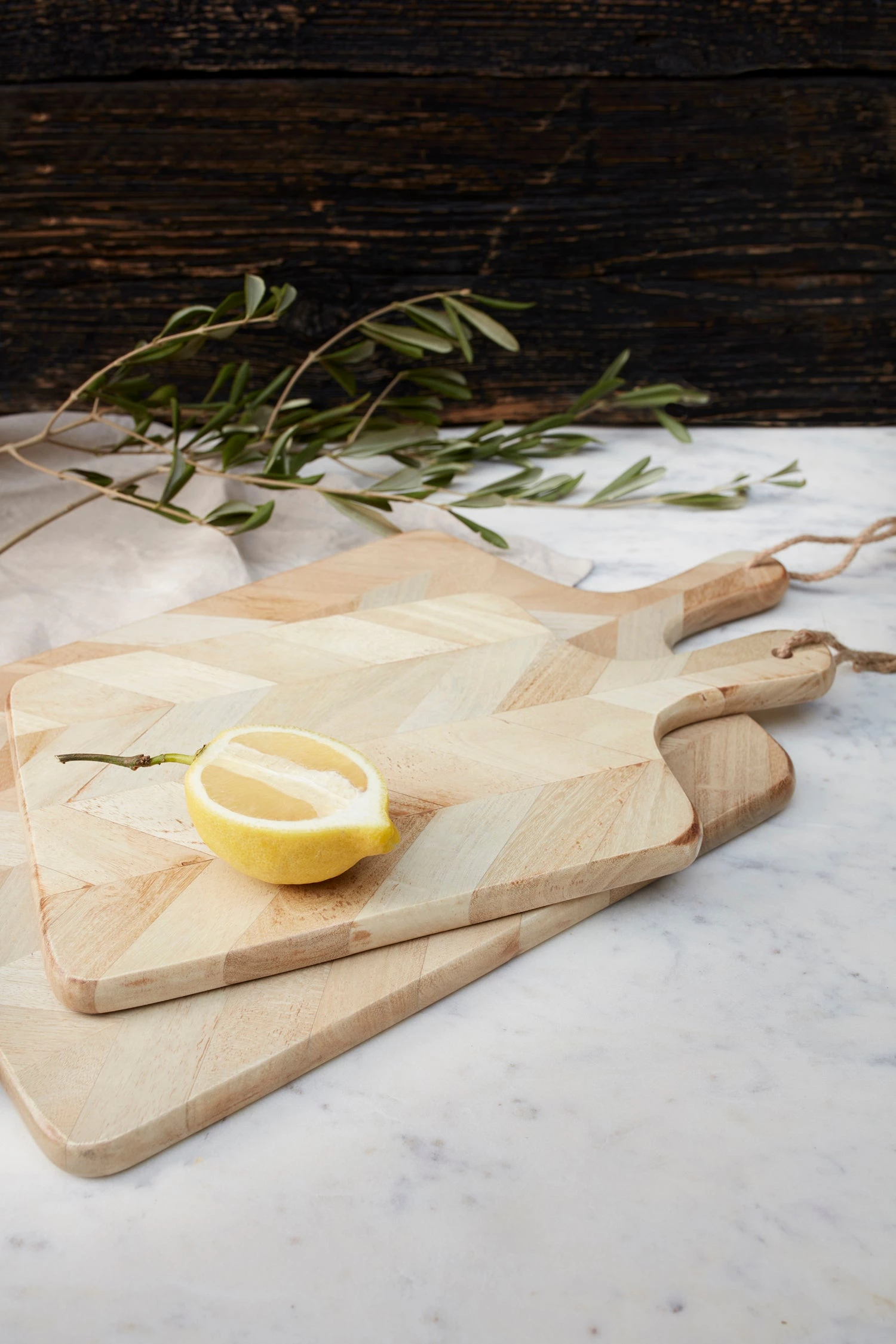 Full of rustic charm and distinctive modern design the Sunbleach wooden board is accented with a string jute loop for hanging and a stylish parquet finish for a unique point of difference. Natural in palette, tactile in design, it evokes a soft and relaxed feel for any kitchen.